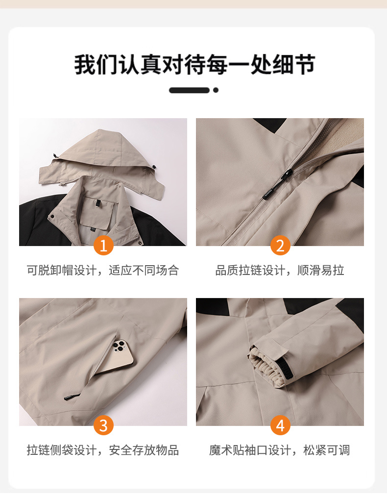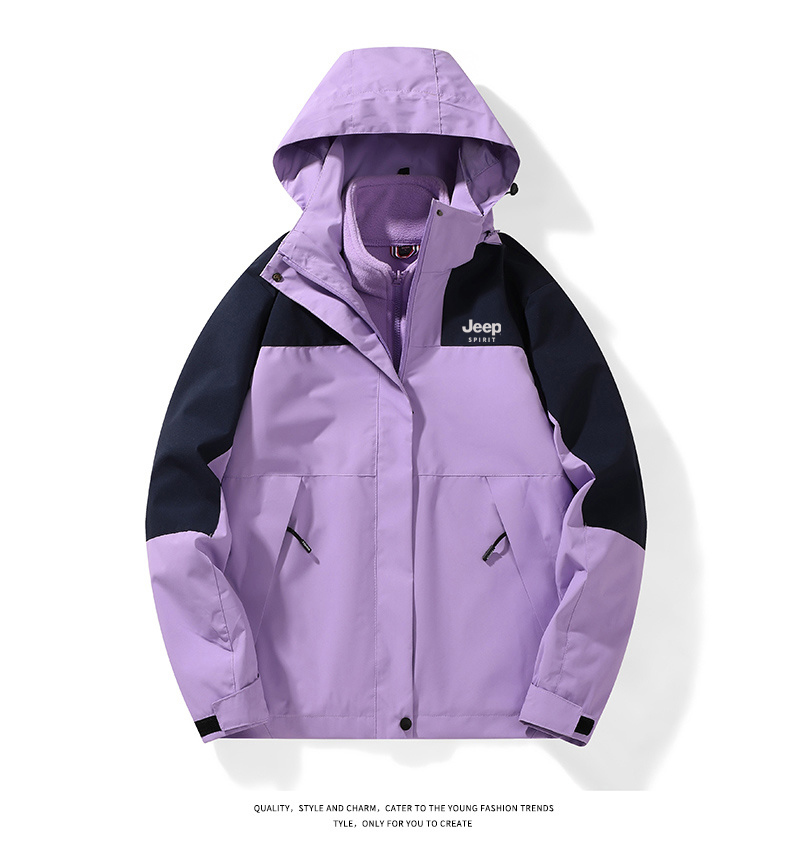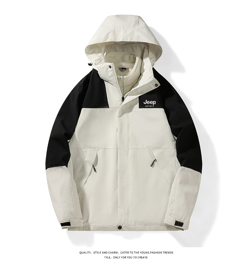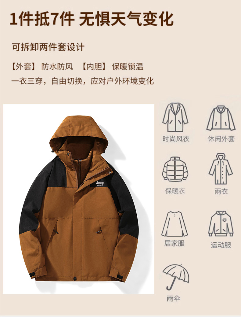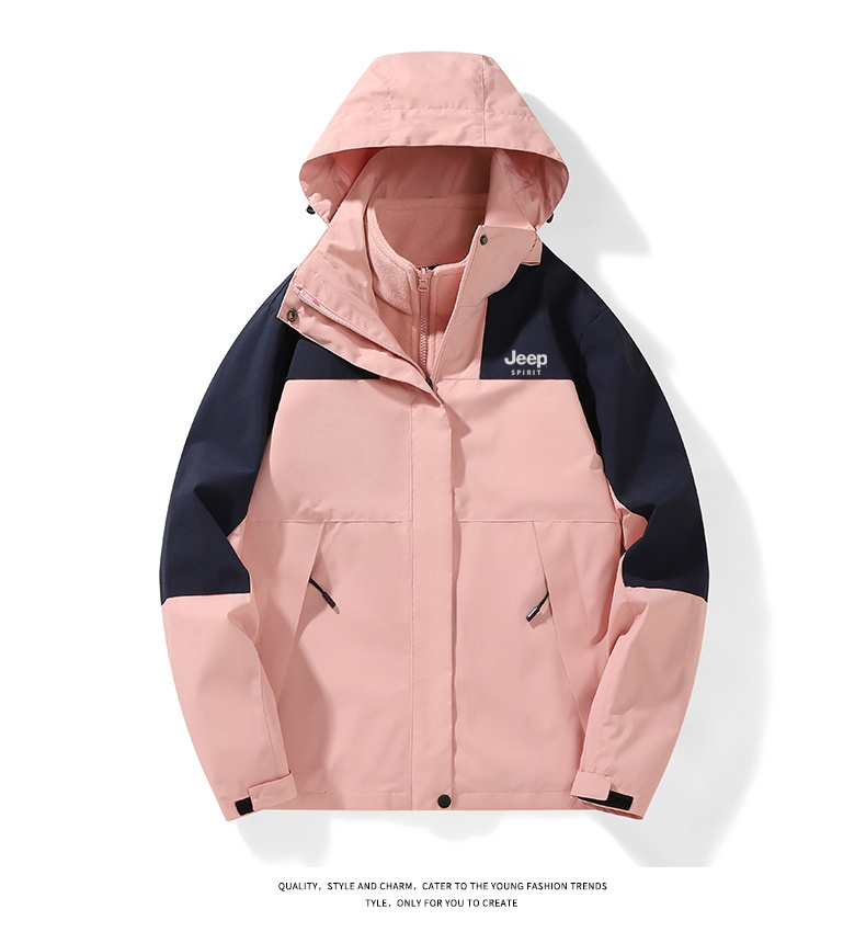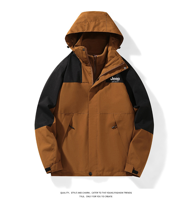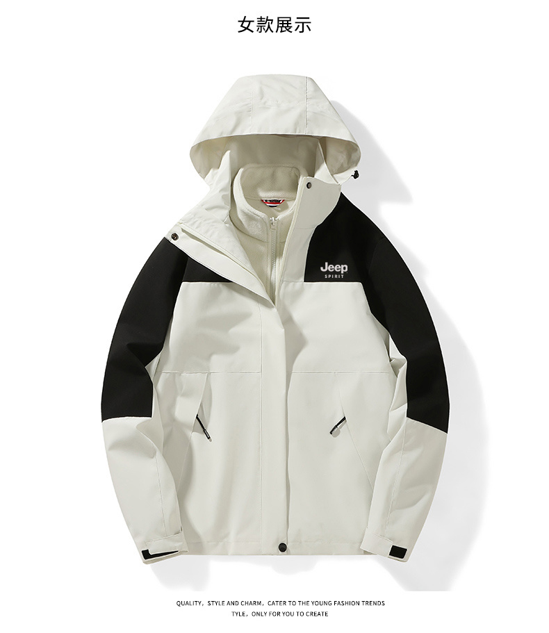 JEEP SPIRIT【三合一情侣冲锋外套】加厚可拆卸内胆外套 户外防风防水登山服 时尚百搭保暖夹克