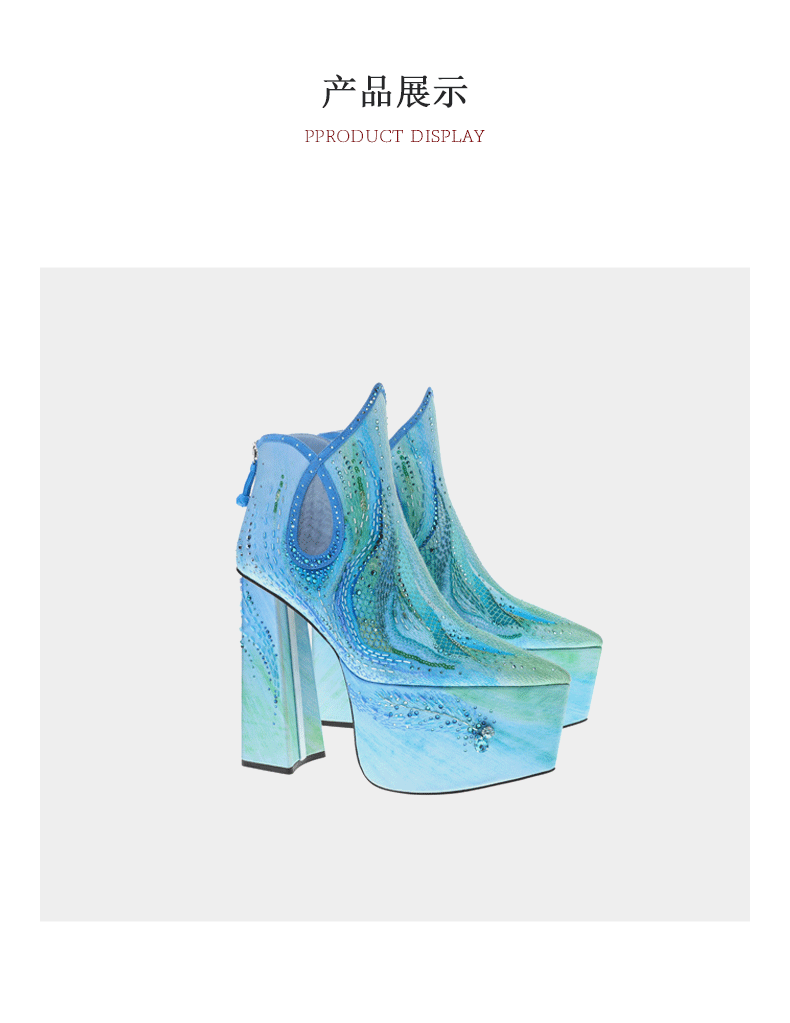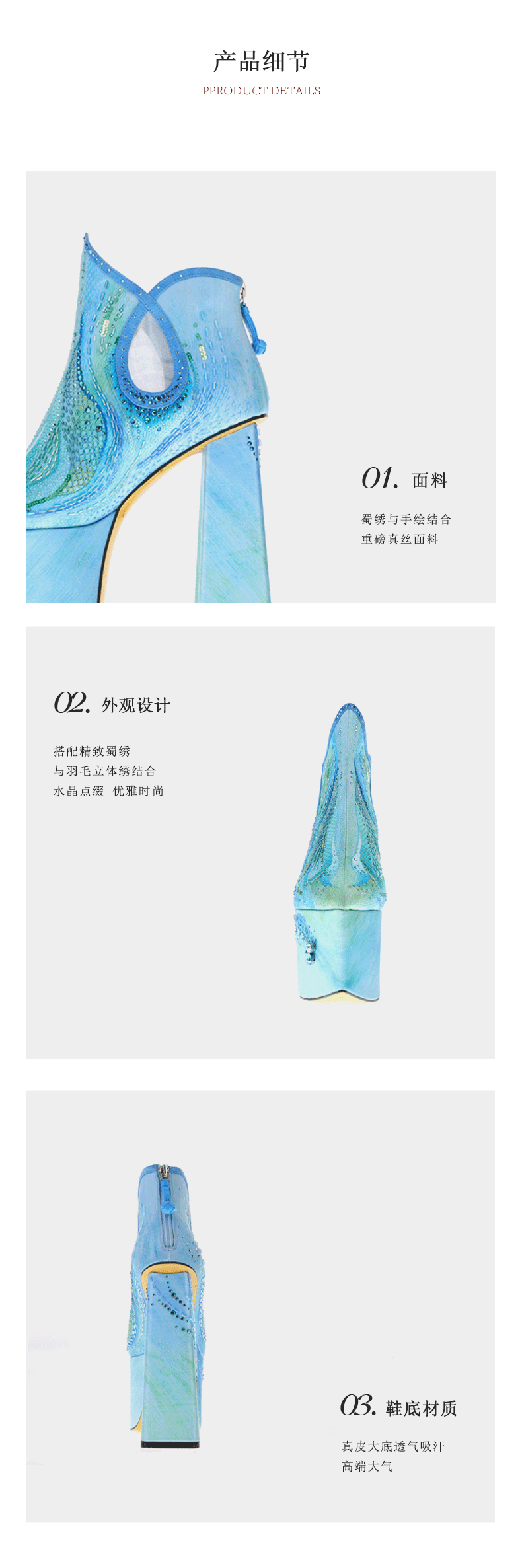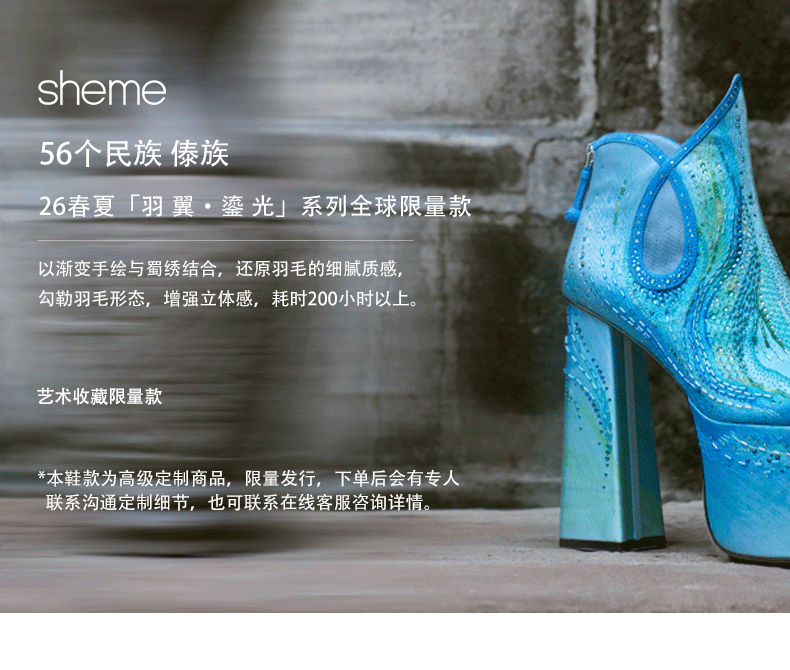 sheme全球限量版原创设计羽翼鎏光系列刺绣优雅时尚超高跟女士短靴可定制