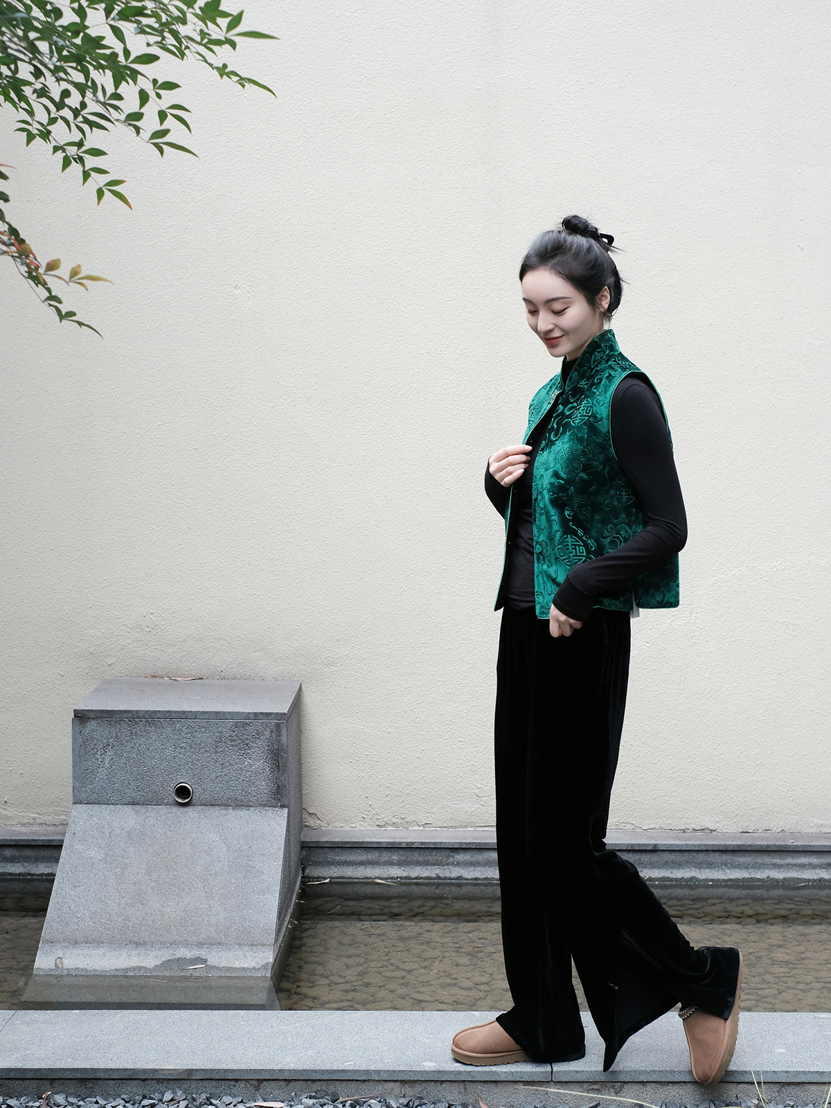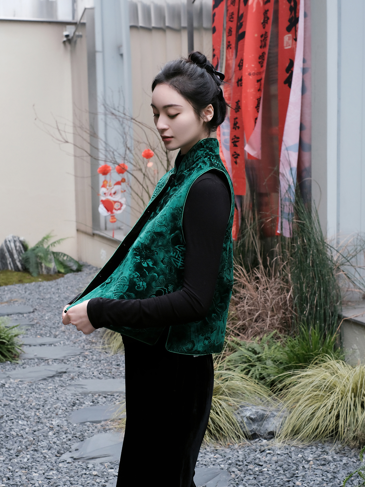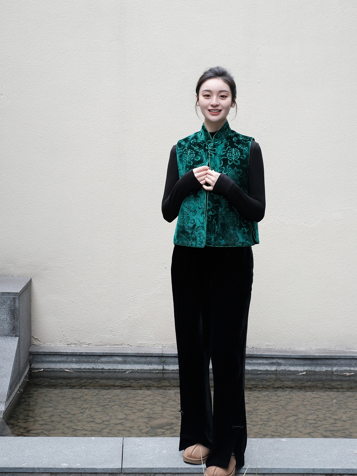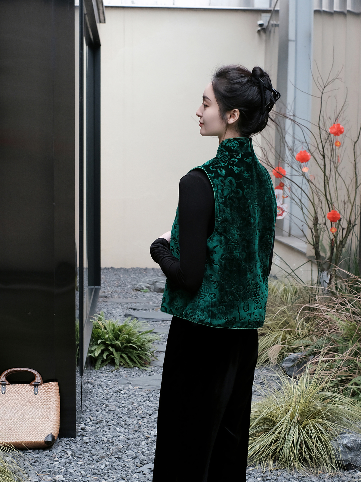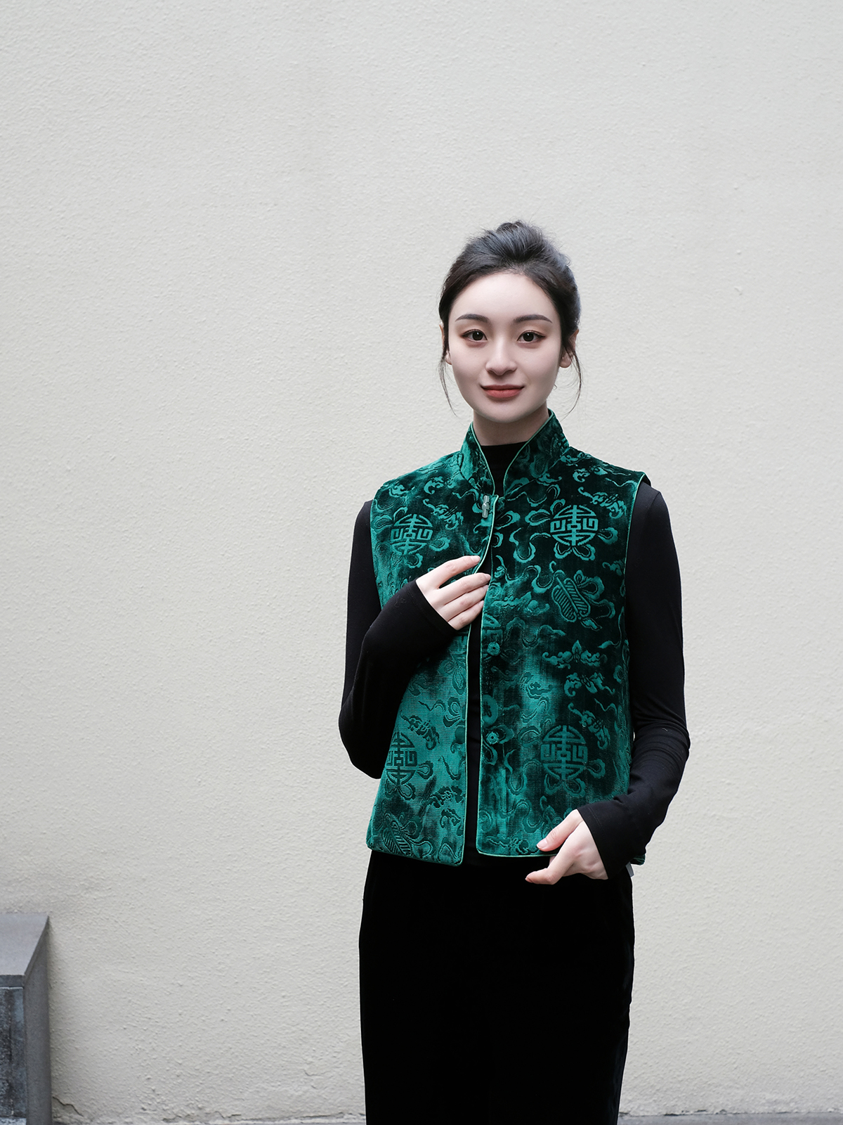 盛唐牡丹 |绿色漳绒八宝葫芦纹马甲