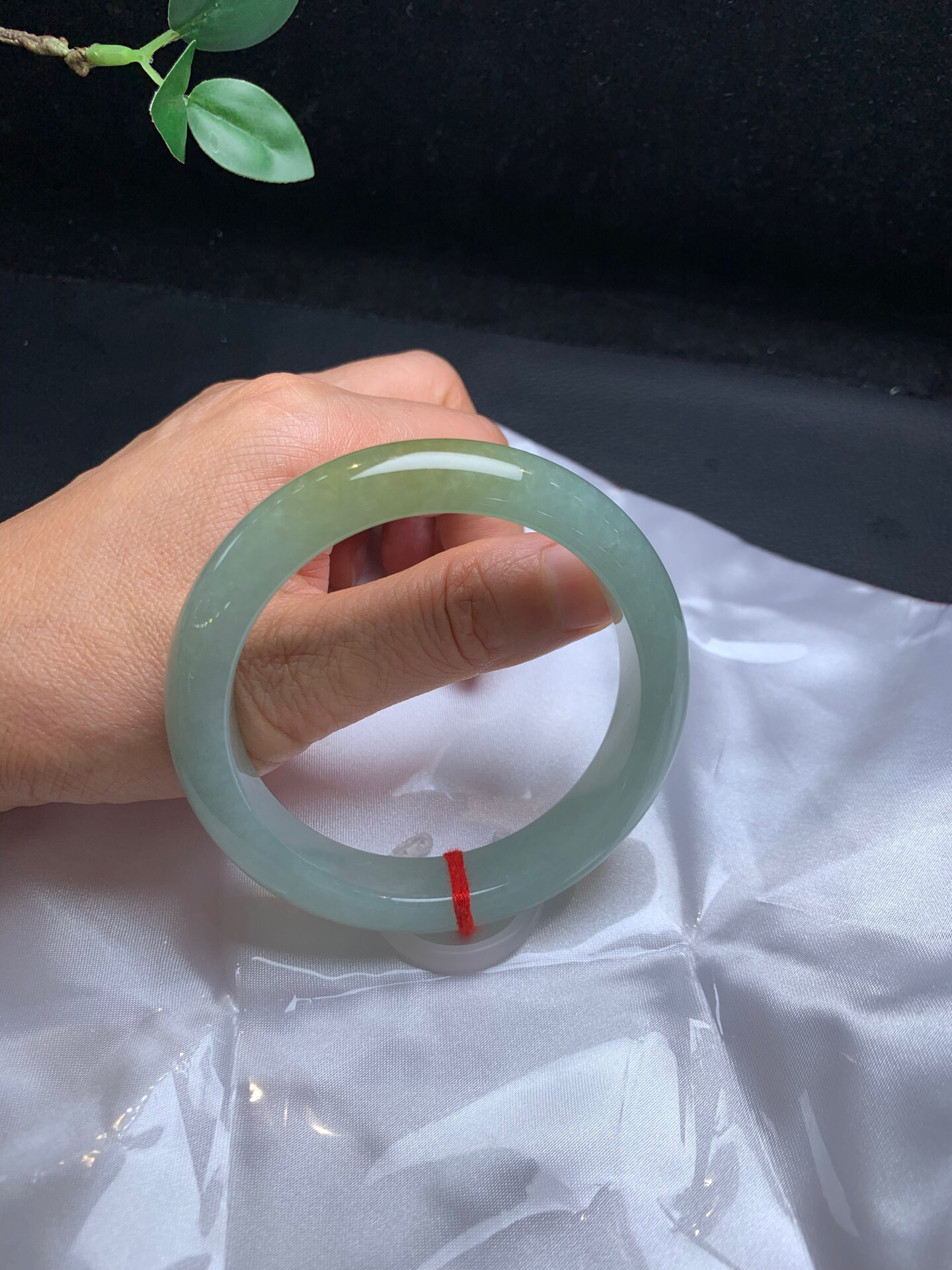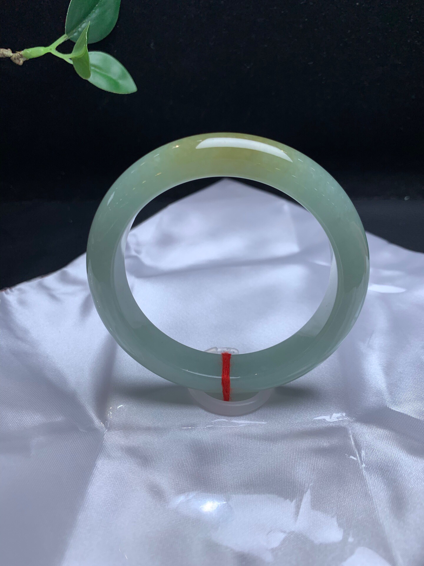 620501,59黄翡手镯,12.6-8.7mm,整圈带蓝底色,一截飘黄翡。清新干净,完美的。超值价💰28600 #优石客珠宝#香玉荟萃