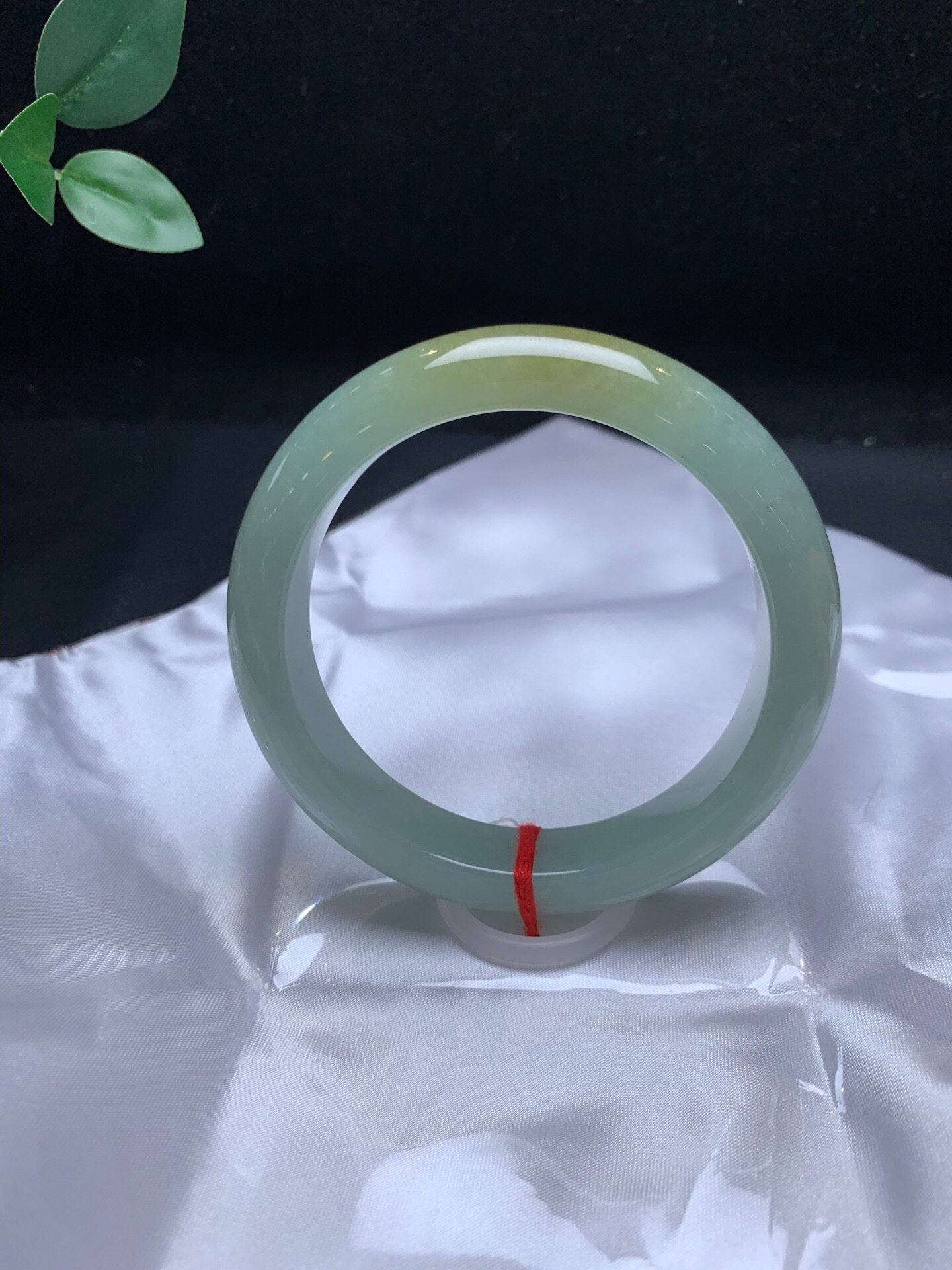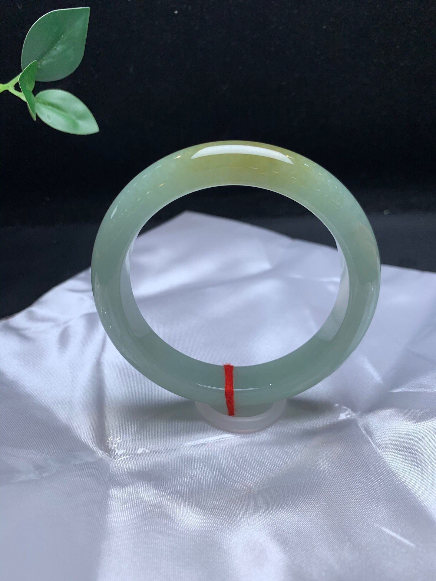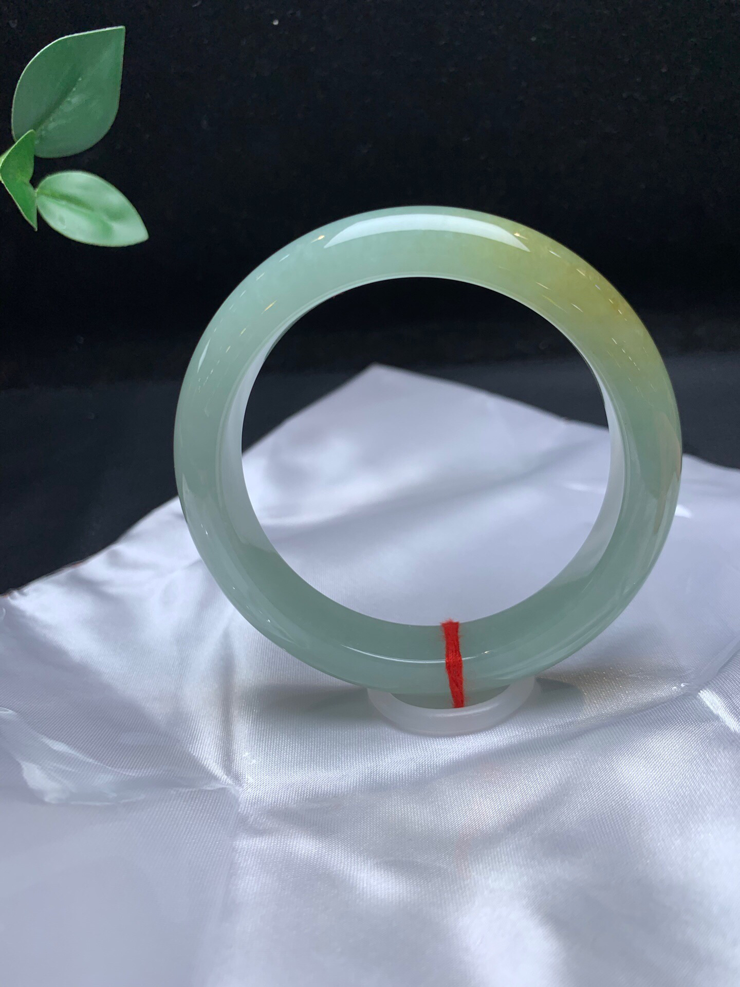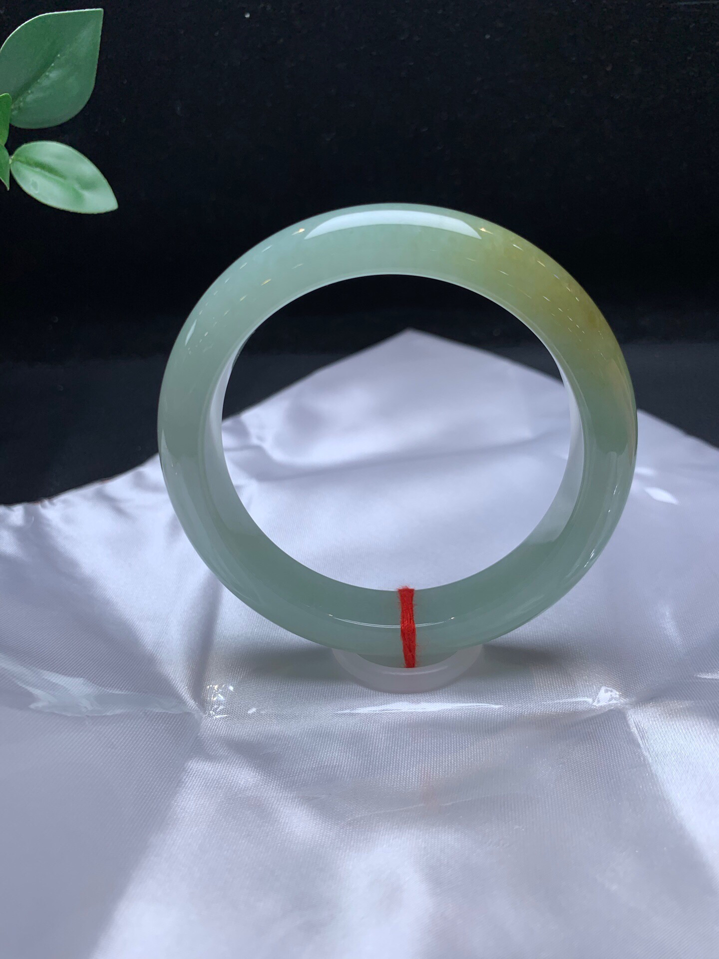 620501,59黄翡手镯,整圈带蓝底色,一截飘黄翡。清新干净