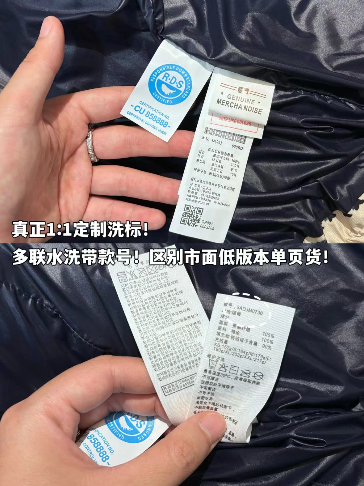 -辅料:原版拆解开发,一比一定制的小标,领标,水洗,吊牌,五金等等。门襟上下双开合拉链,所有拉链,卡扣等全部定制开模带LOGO。口袋带有暗扣防丢失,口袋里面有保绒袋布,保暖舒适防静电。