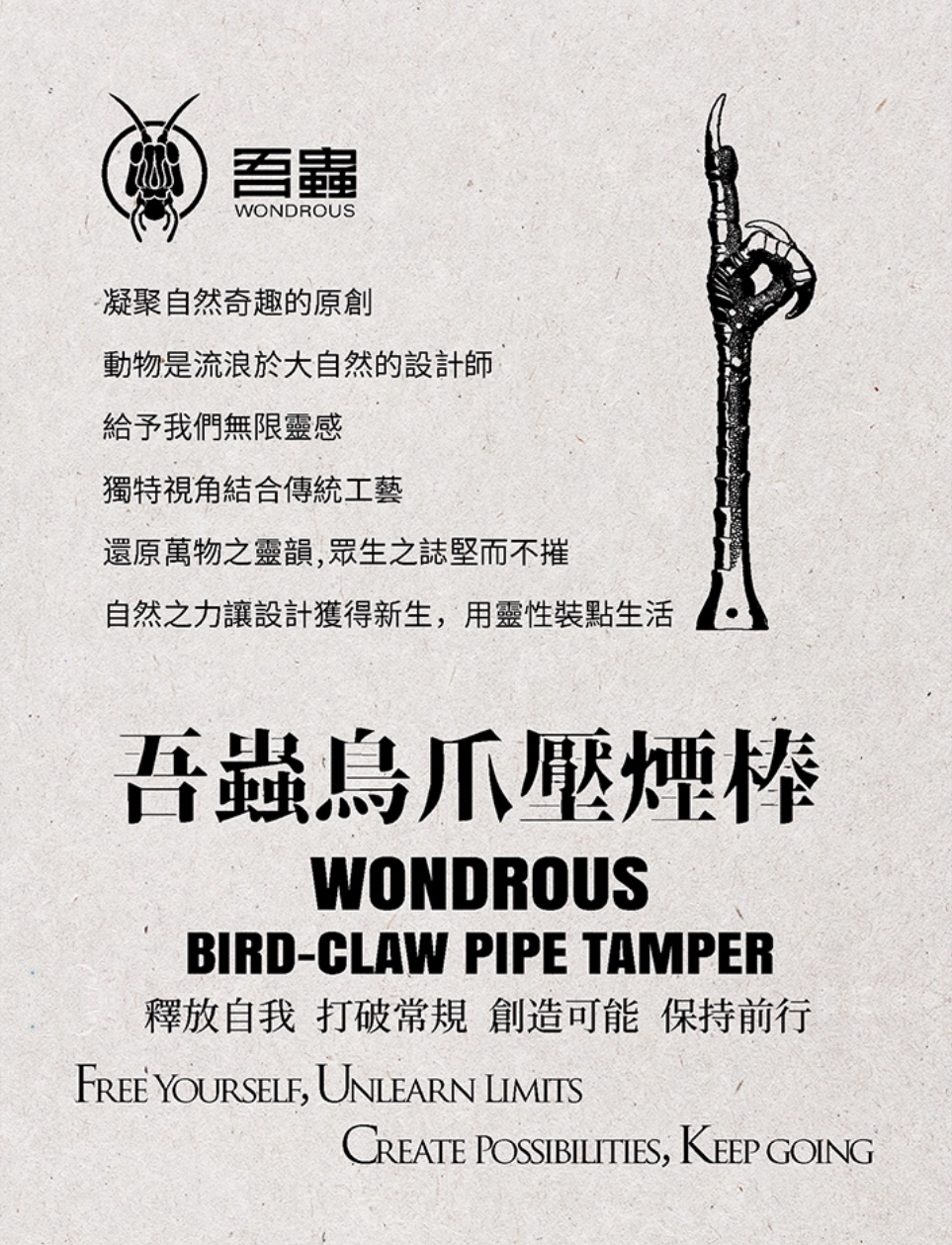 吾蟲-鸟爪压烟棒 黄铜烟斗压棒 金属配件 把玩个性礼品礼物【官方授权 48小时发货】