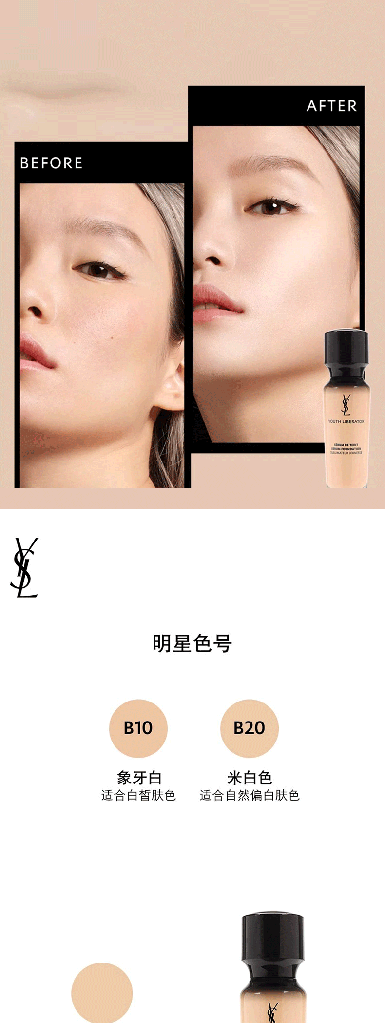 【女神狂欢嗨购】【保税仓直发·全球购】YSL 圣罗兰 妍活青春逆龄粉底液30ml SPF20 PA #B10#B20