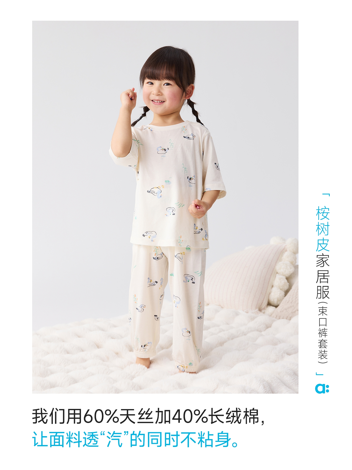 【桉树皮】allblu幼岚家居服儿童束口裤套装25春夏新男童女童睡衣