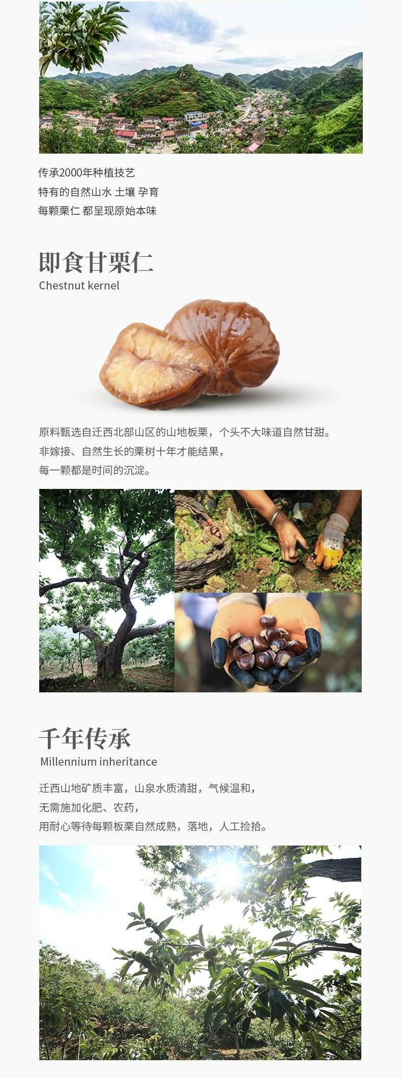 【注意事项】漏气勿食,袋子不能加热;部分板栗仁会出现颜色不一,深浅不一的情形,这是由于高温下产生的“美拉德”褐变反应,属正常现象。