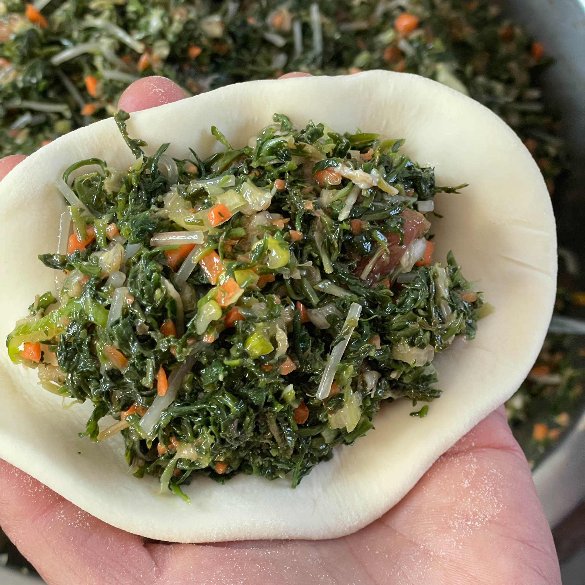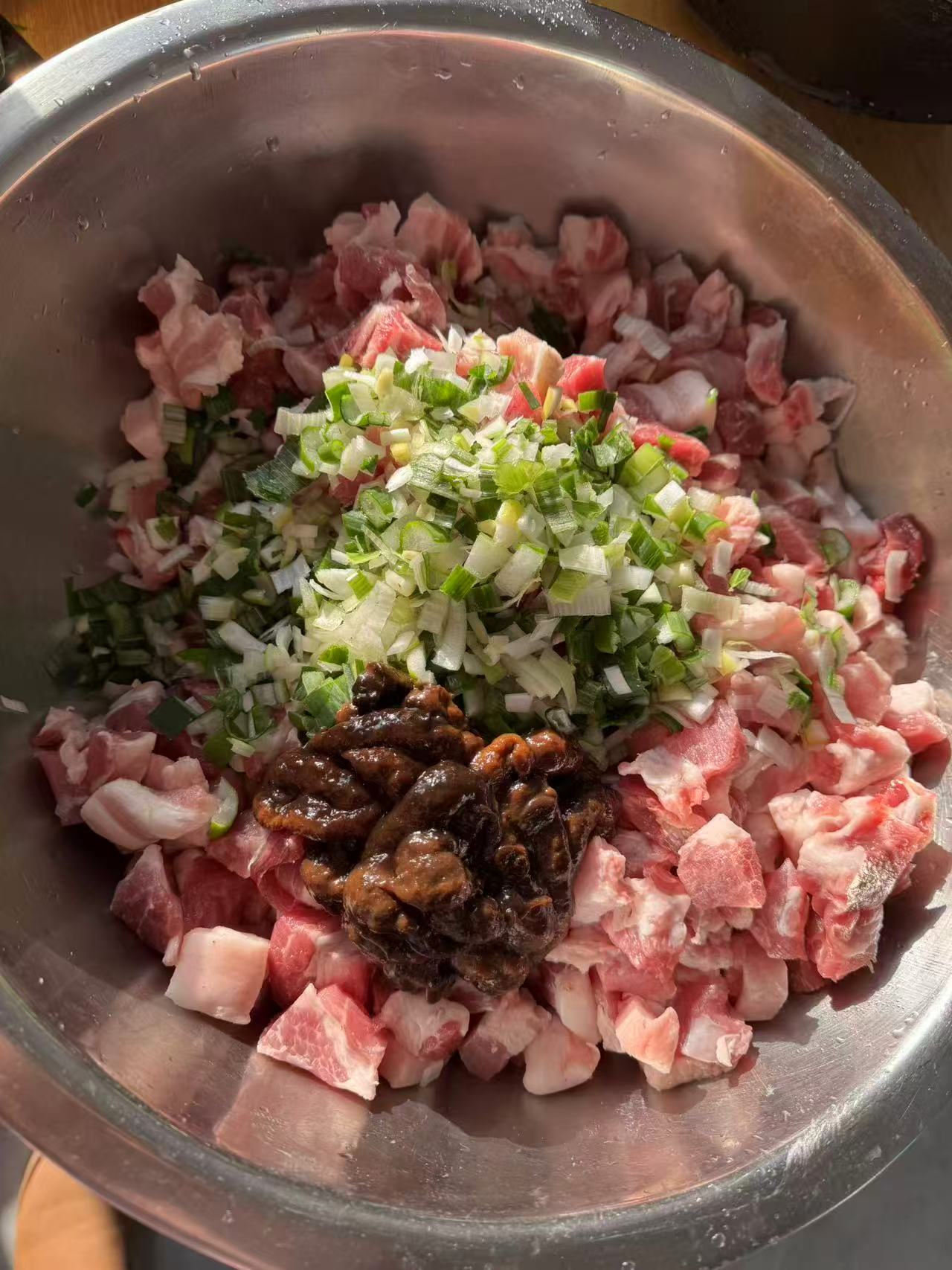 【配料】荠菜、黑猪花肉、粉条、胡萝卜、葱、花生油、猪油、盐、海肠粉