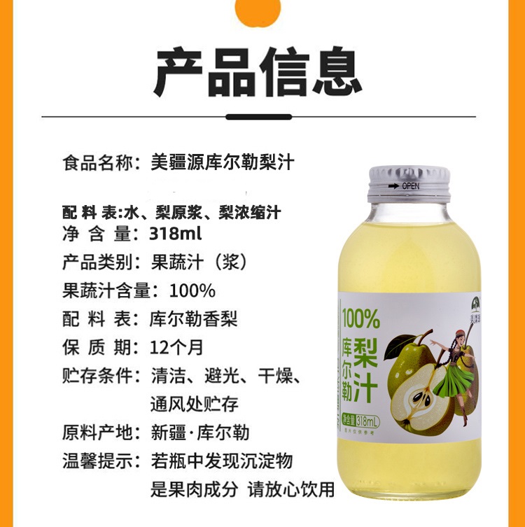 【全国包邮】新疆库尔勒梨汁(318ml*5瓶)