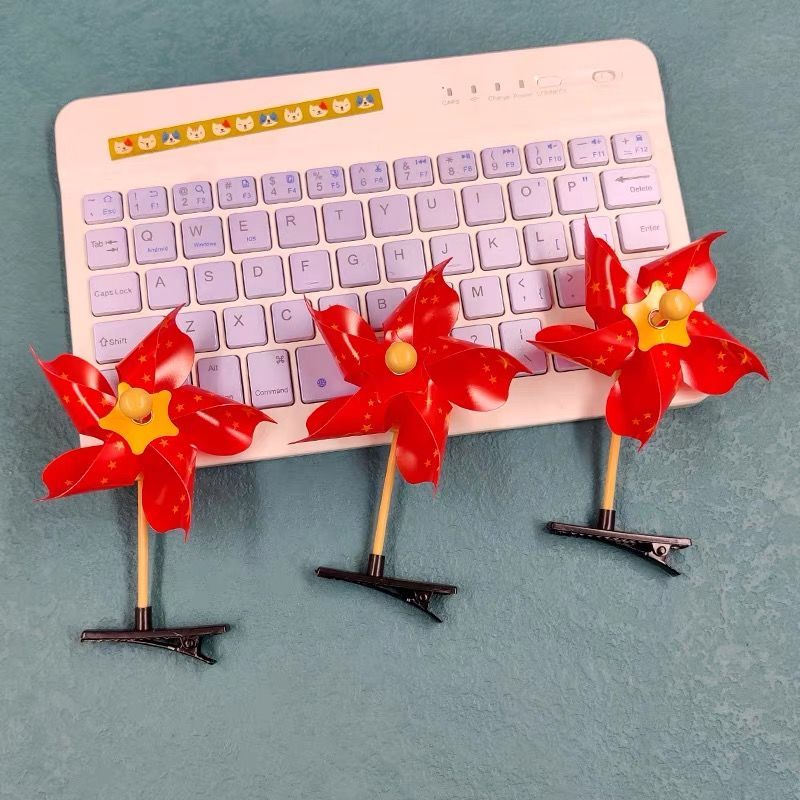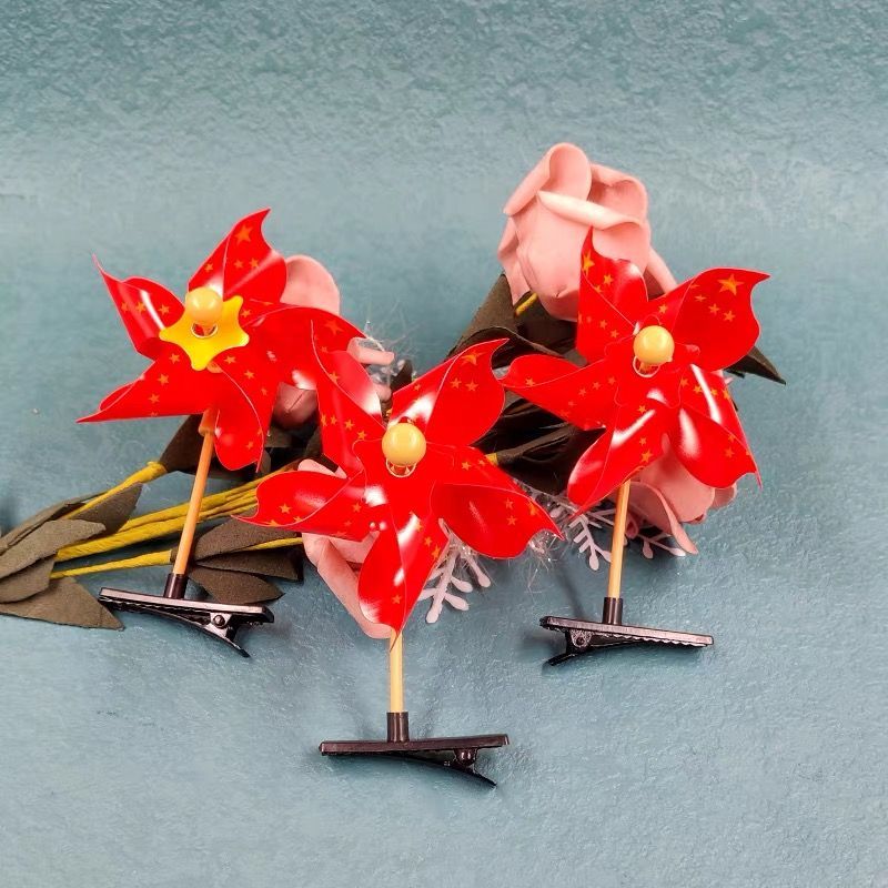 【10只装】国庆节小礼品爱心发夹风车小发夹手持八号红旗助威道具五角星发箍