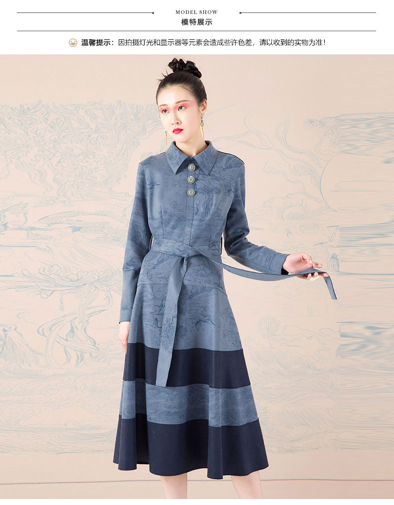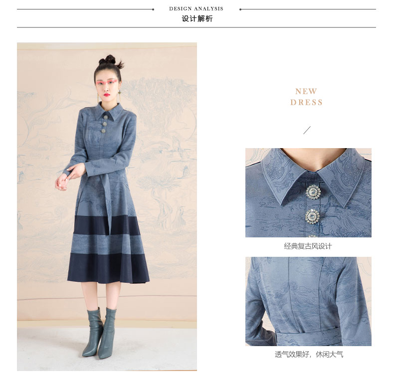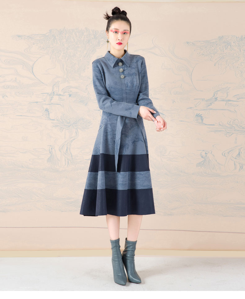 【伯妮斯茵】知性优雅大A摆收腰鸦青色连衣裙-【浪漫觉醒《离骚》】1S5281