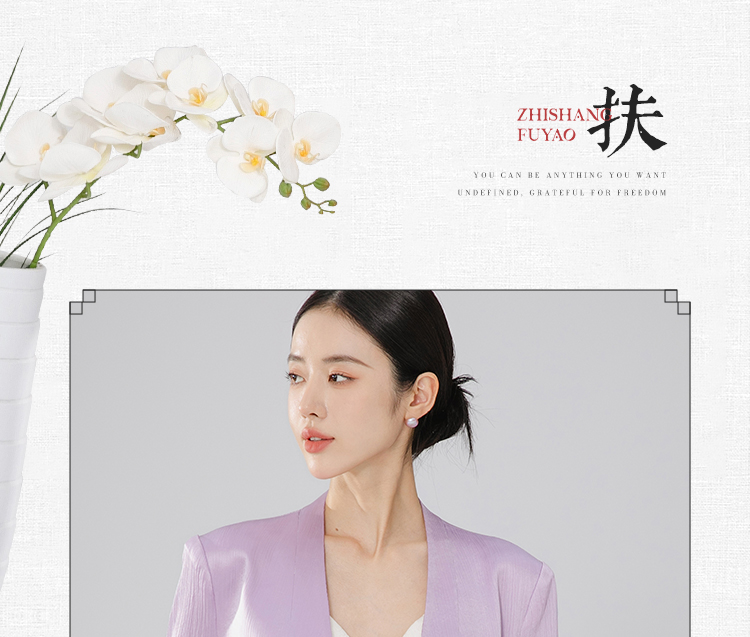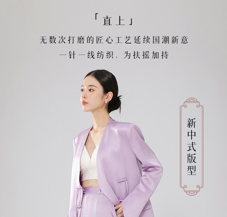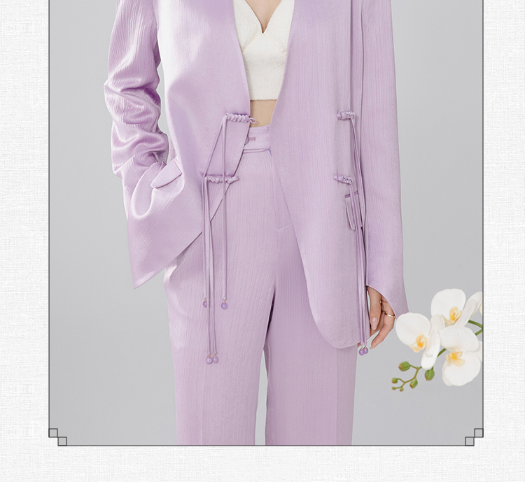 FUYAO扶摇 设计师款中国风优雅气质奶油紫西装盘扣新中式通勤西装