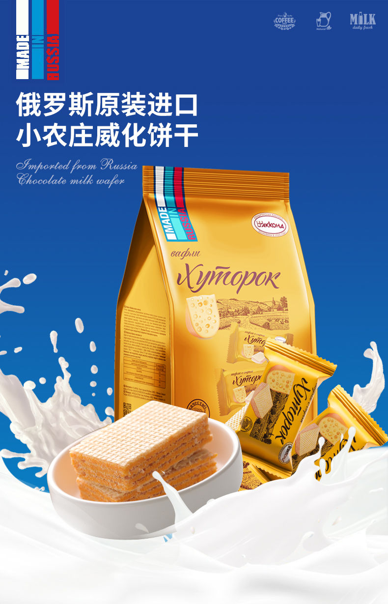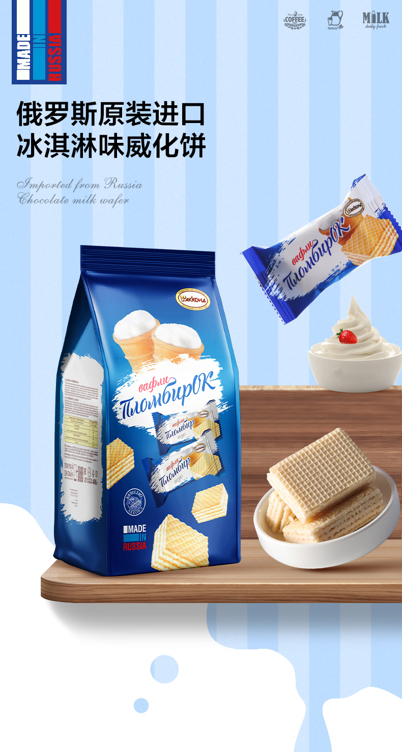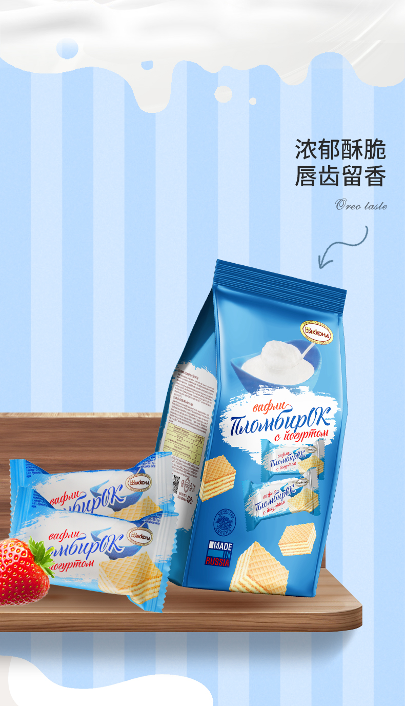 | 【品名】俄罗斯阿孔特 威化饼干 任意口味组合 【规格】408g/包(约25块/包) 【口味】冰淇淋/菲利莫(奥利奥味)/酸奶/奶酪味 【产地】俄罗斯 【保质期】15个月 【生产日期】 冰淇淋、酸奶味、奶酪味:2023年6月及以后 菲利莫:2023年5月及以后 【发货包装】独立包装袋 【发货地】山东,黑龙江 【发货快递】韵达、中通 【不发货区域】新疆、西藏、内蒙、海南、港澳台 【发货时效】48-72小时,周末节假日顺延 |