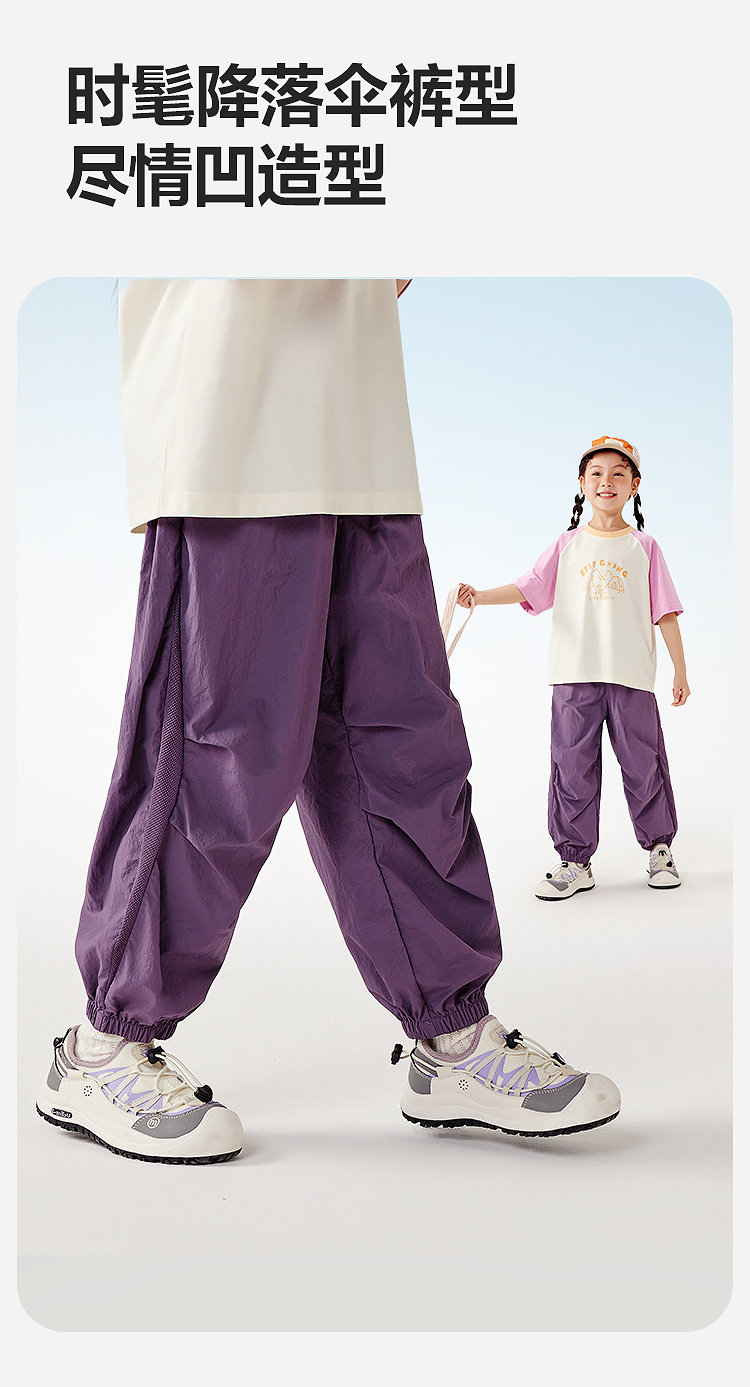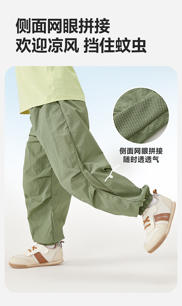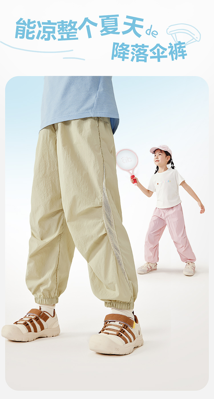 【凉感网眼】迷你巴拉男女童透气轻薄时尚伞兵裤长裤夏