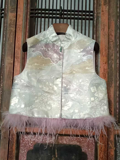 盛唐牡丹| 西阵织配鸵鸟毛对襟马甲