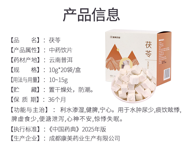 康美药业原御宝堂系列茯苓10g*20袋/盒 药食同源康美中药饮片 独立小包装