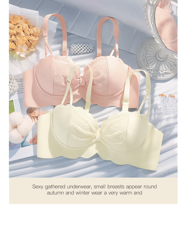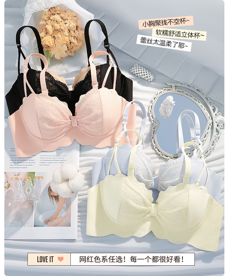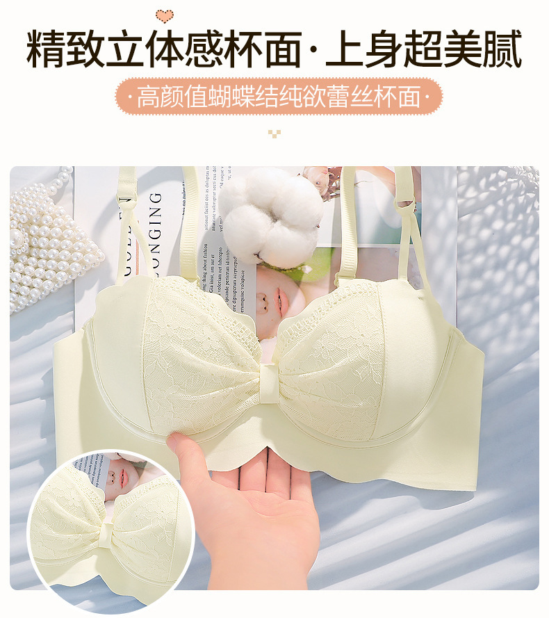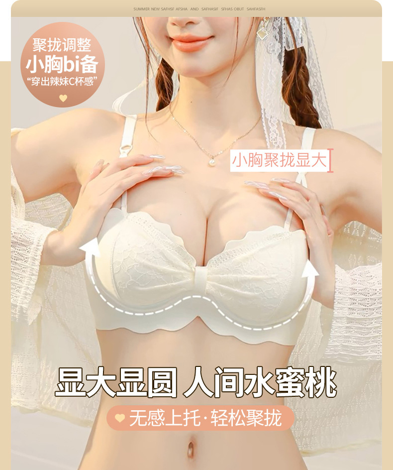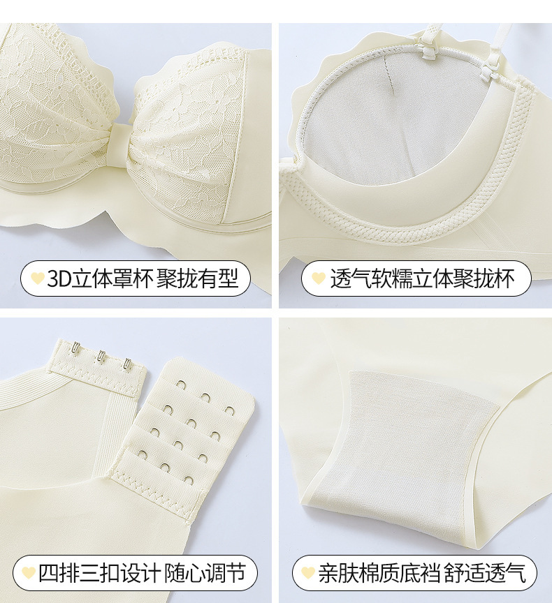 【显大显圆!温柔奶油蕾丝内衣】柔软无钢圈,软糯舒适立体杯,聚拢不空杯!女小胸聚拢显大上托无钢圈防下垂文胸罩内裤套装