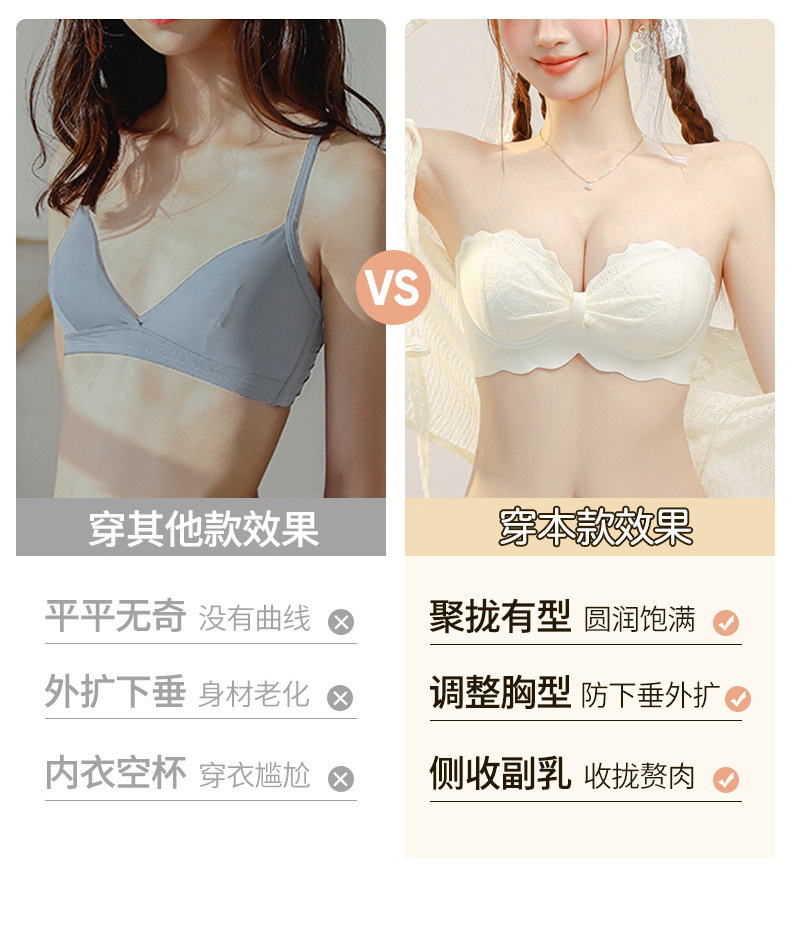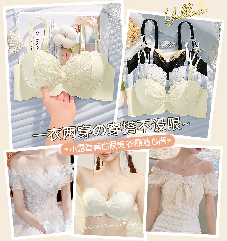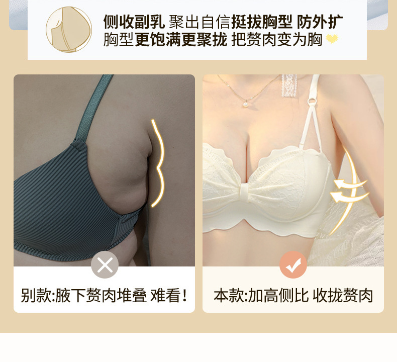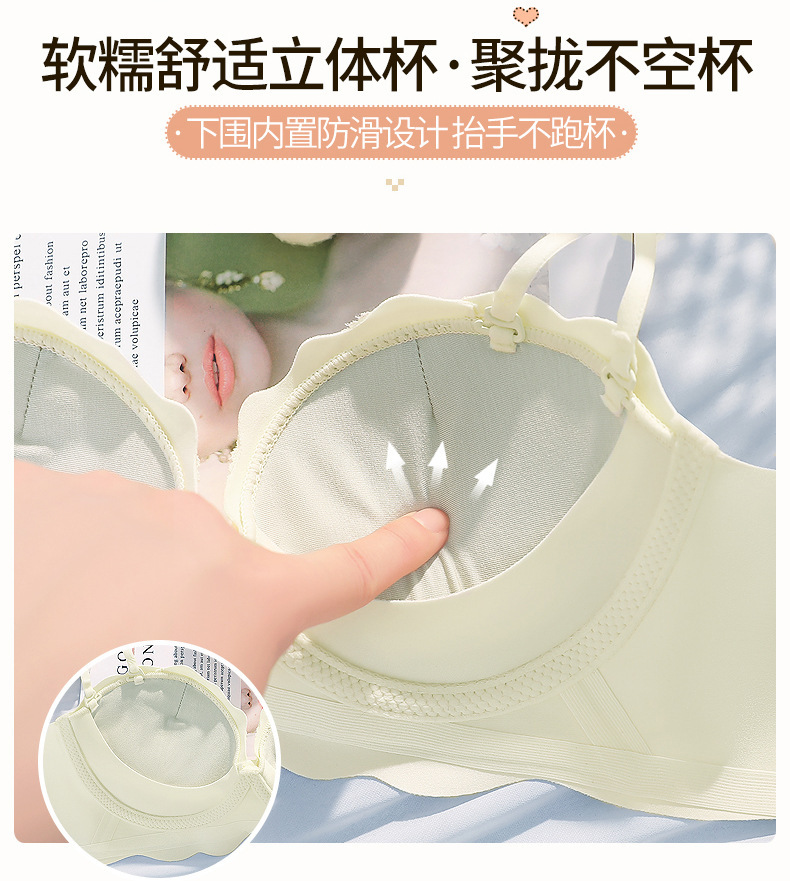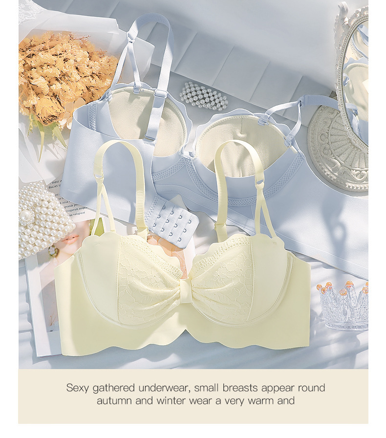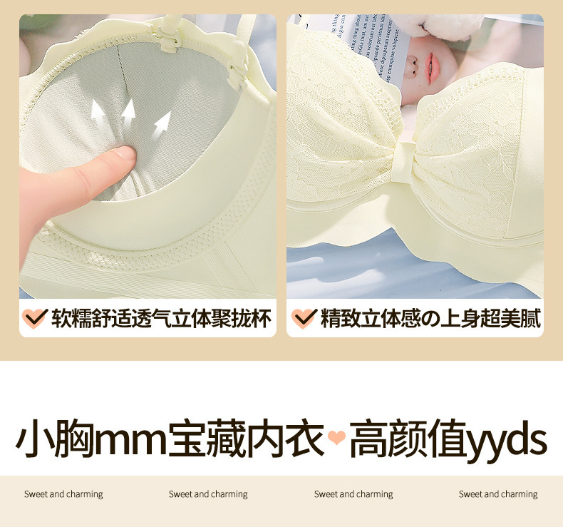 【显大显圆!温柔奶油蕾丝内衣】柔软无钢圈,软糯舒适立体杯,聚拢不空杯!女小胸聚拢显大上托无钢圈防下垂文胸罩内裤套装