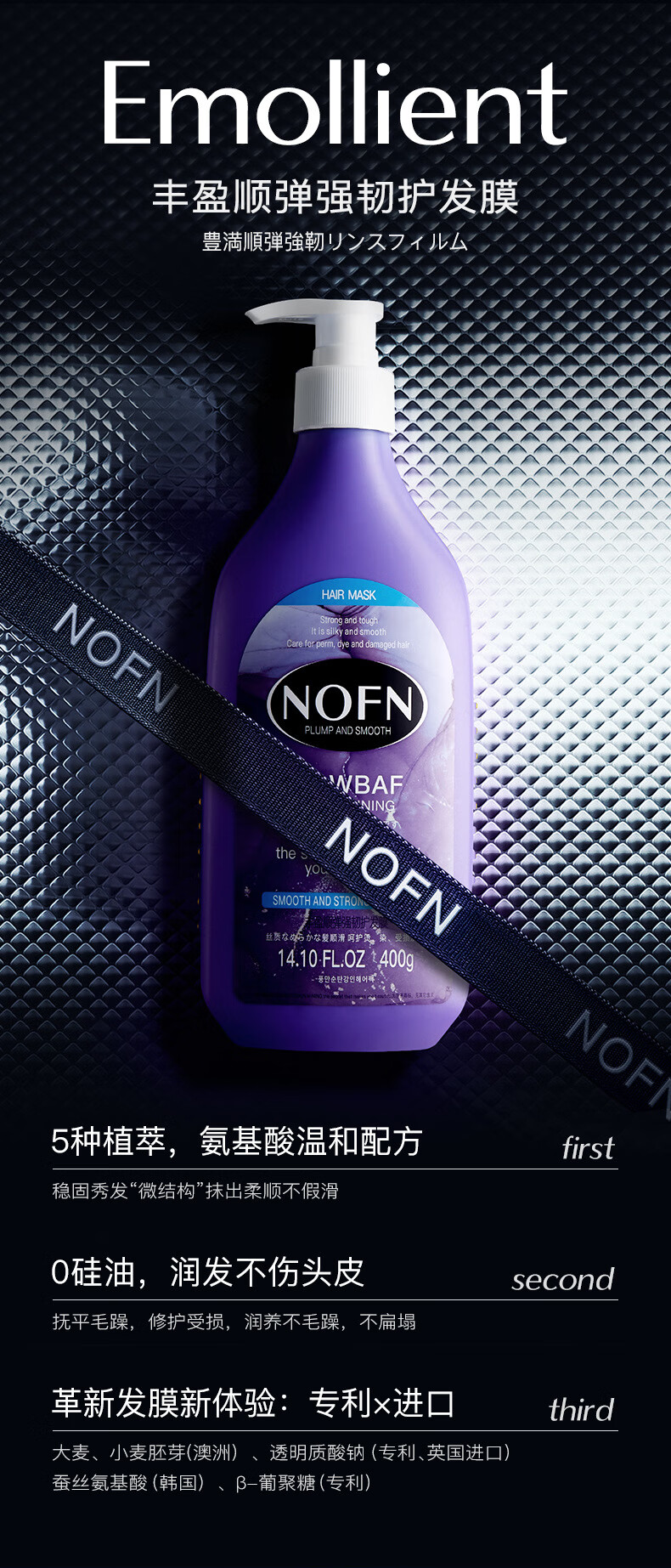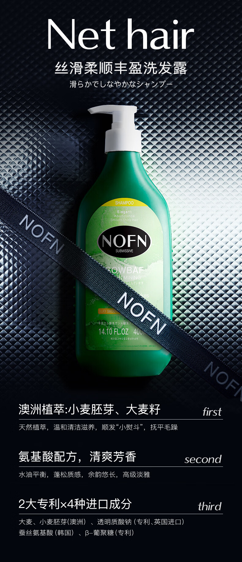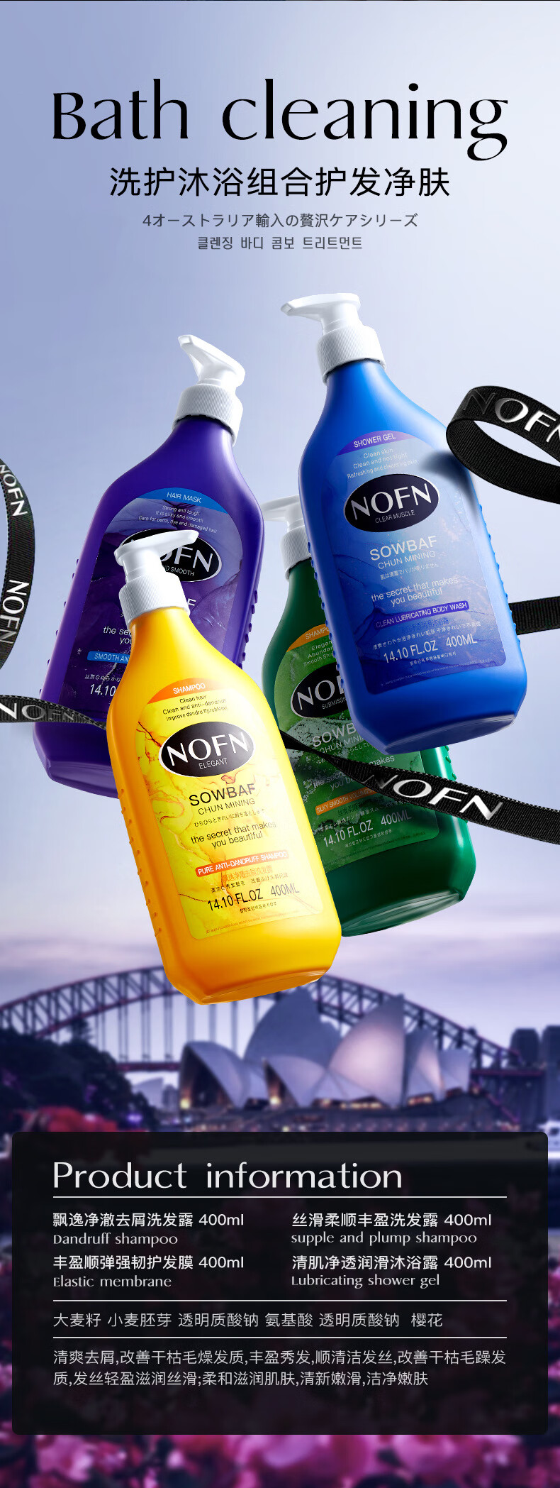 【超值3瓶装】澳洲NOFN 洗护套装 洗发水/护发素/沐浴露 400ml/瓶