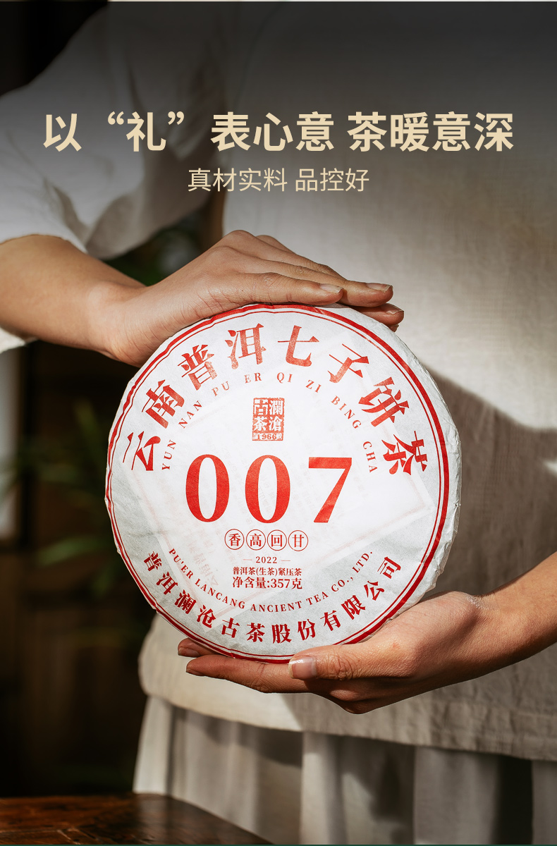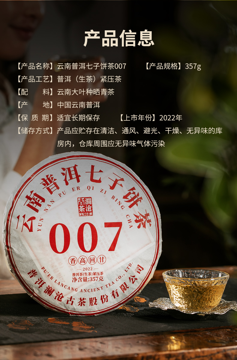 澜沧古茶2022年007大饼普洱茶生茶饼357g/片