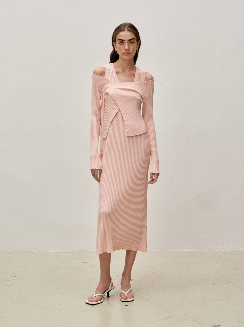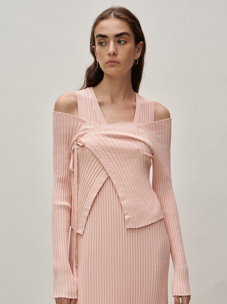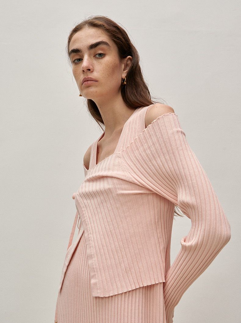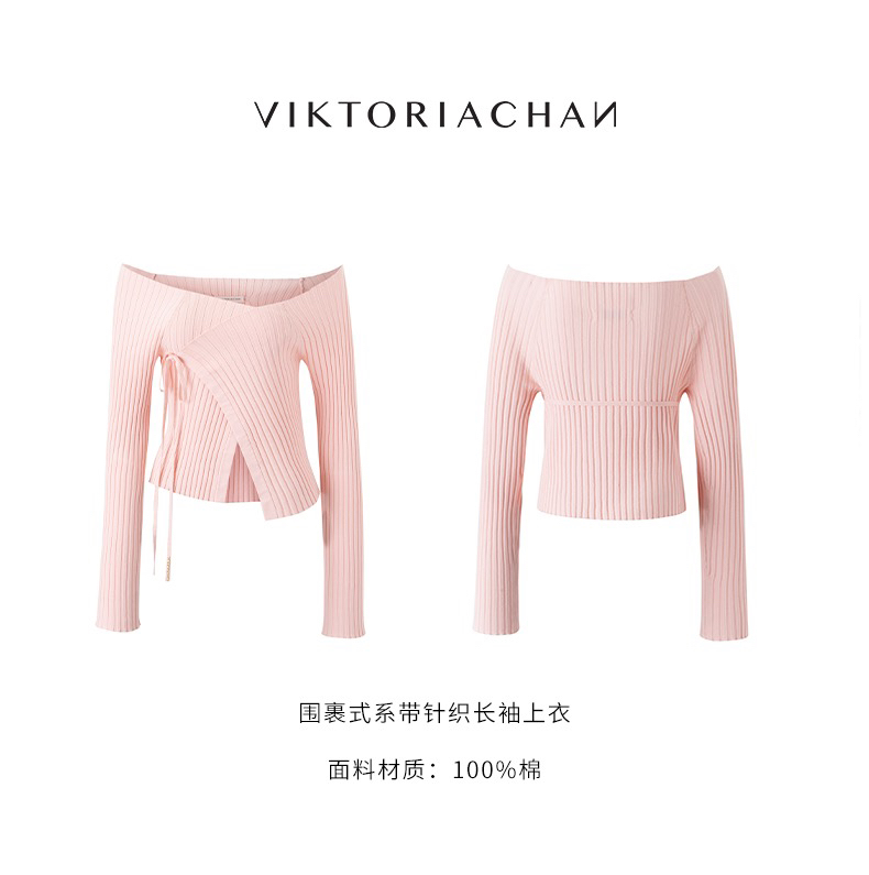 Viktoria Chan | SS23001 Shelby knitted wrap top [ 针织裹身上衣 浅粉 / 黑 / 白 ]