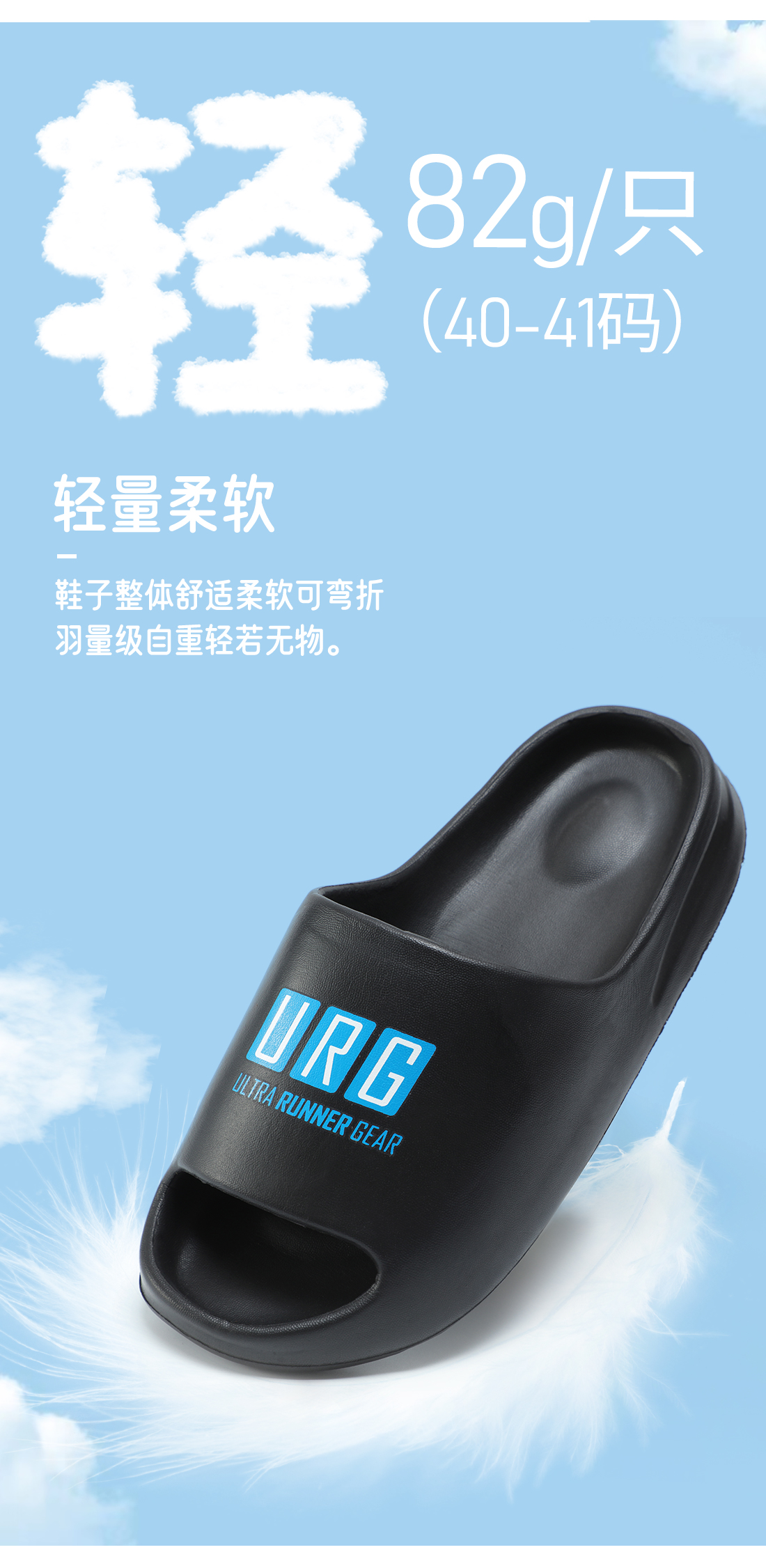 URG R2R运动恢复厚底拖鞋男女户外运动柔软舒适缓解疲劳抓地防滑耐磨减震拖鞋