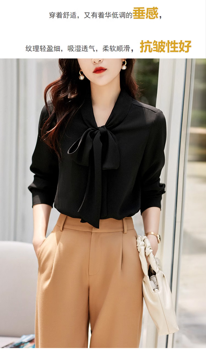 【法式优雅通勤飘带衬衫】缎面飘带衬衫 时尚百搭 优雅知性 舒适亲肤 清凉透气 抗皱耐磨