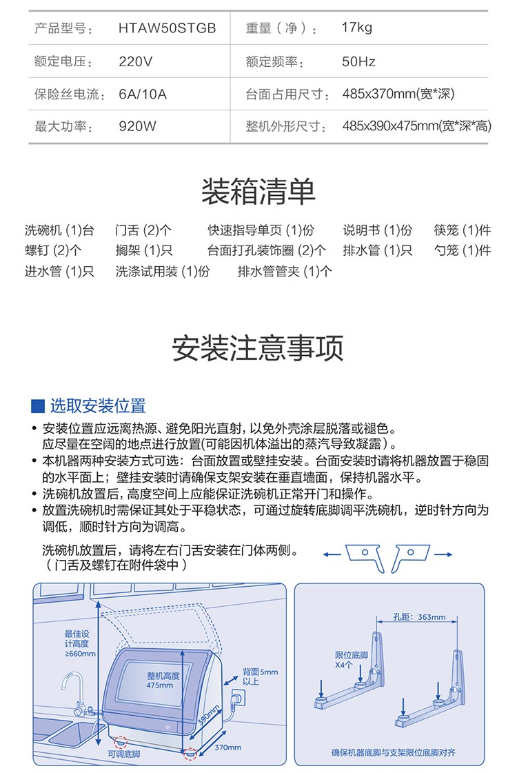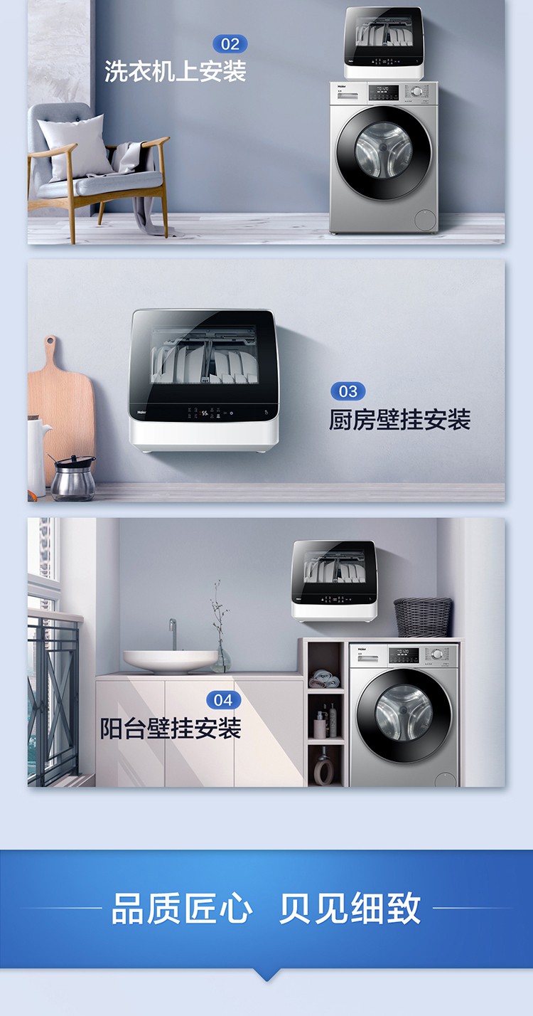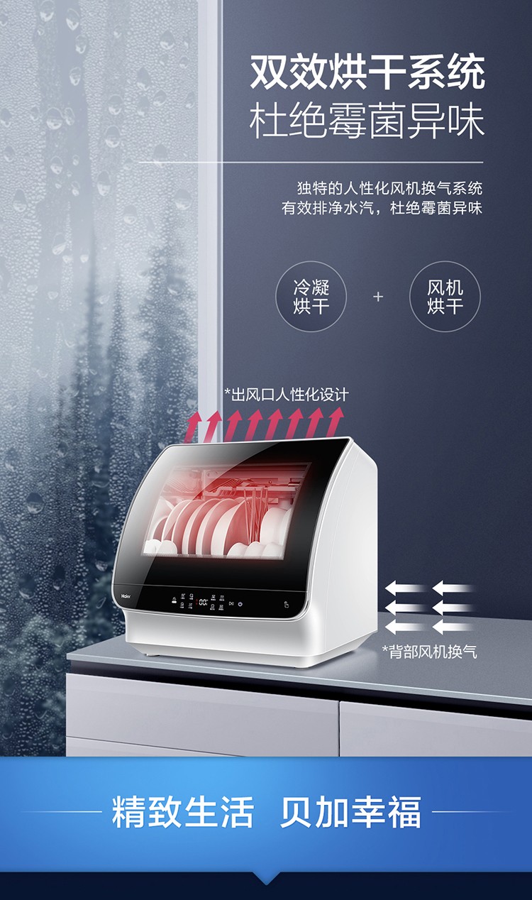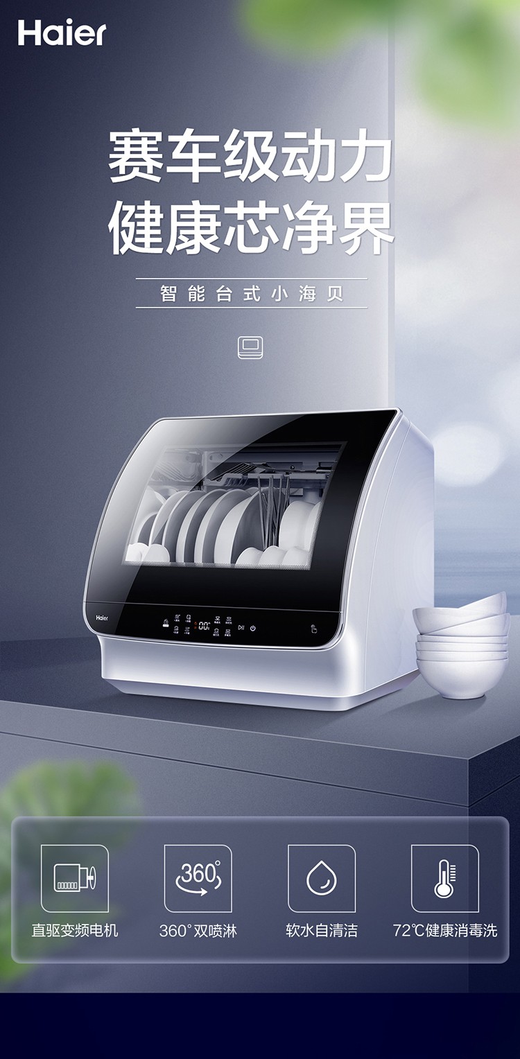 【氧气直购节】海尔(Haier) 洗碗机6套家用台式高温消毒除菌风机烘干快速洗小海贝HTAW50STGB