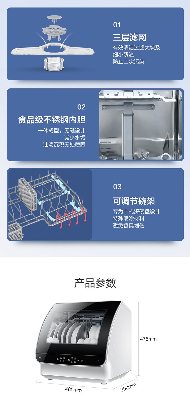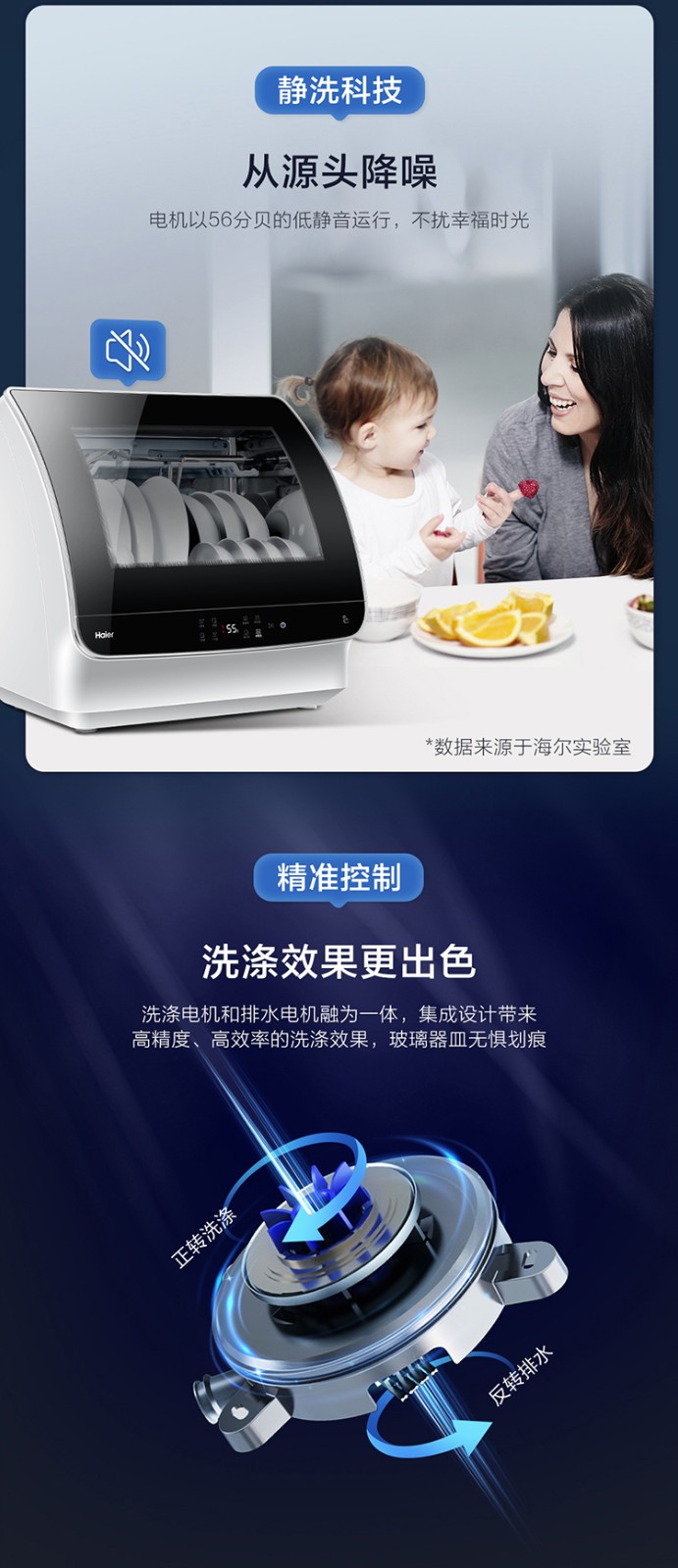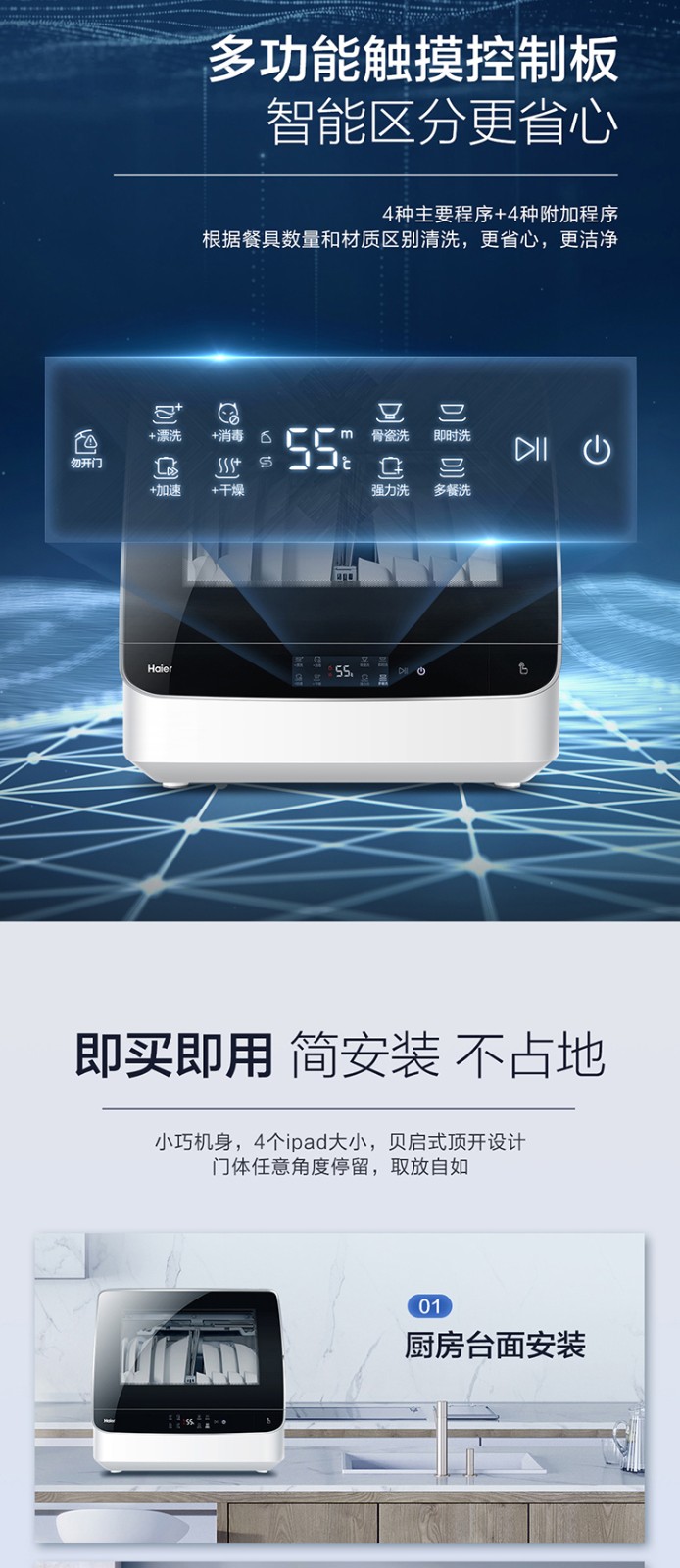【氧气直购节】海尔(Haier) 洗碗机6套家用台式高温消毒除菌风机烘干快速洗小海贝HTAW50STGB