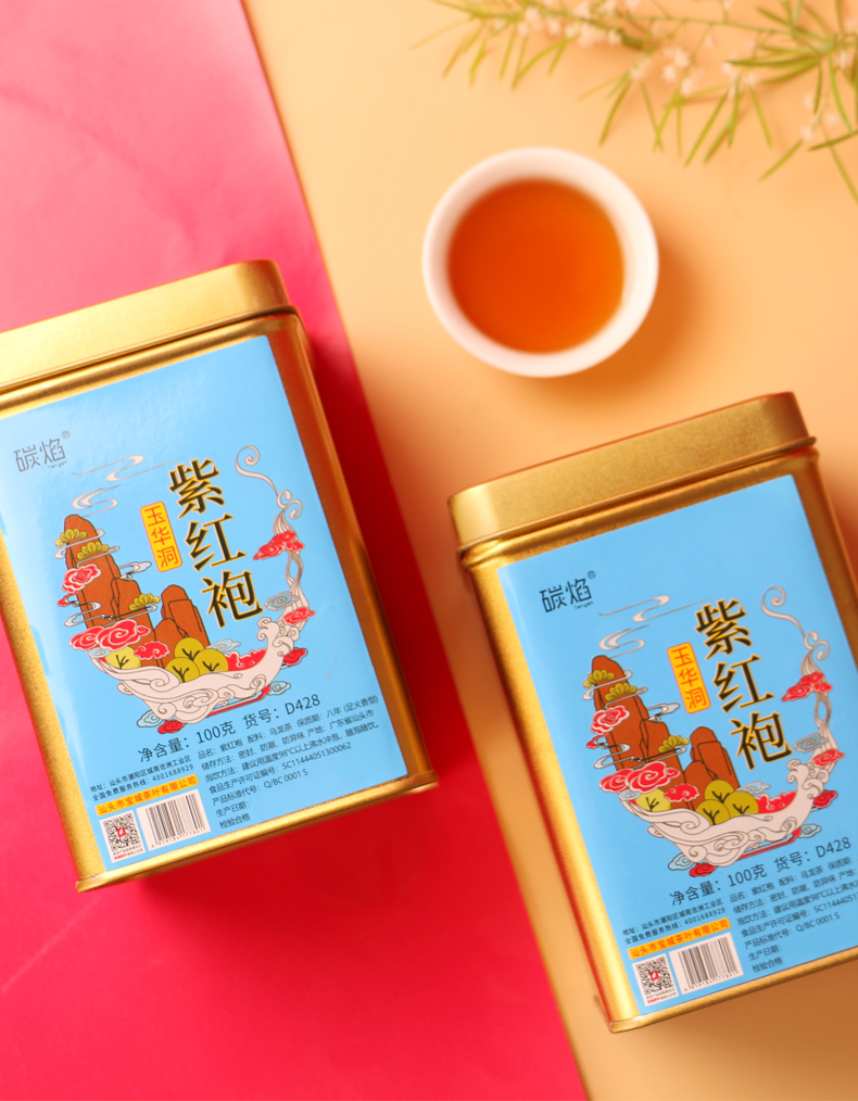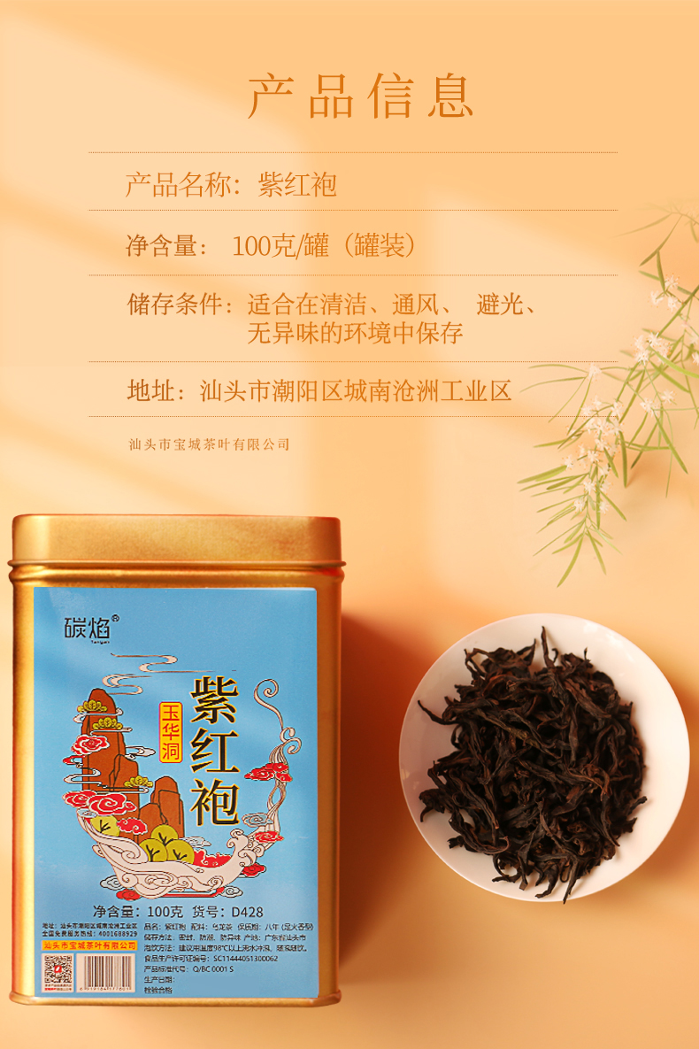 【幽香高扬】宝城碳焰系列紫红袍岩茶散装罐装乌龙茶4罐共400克D428