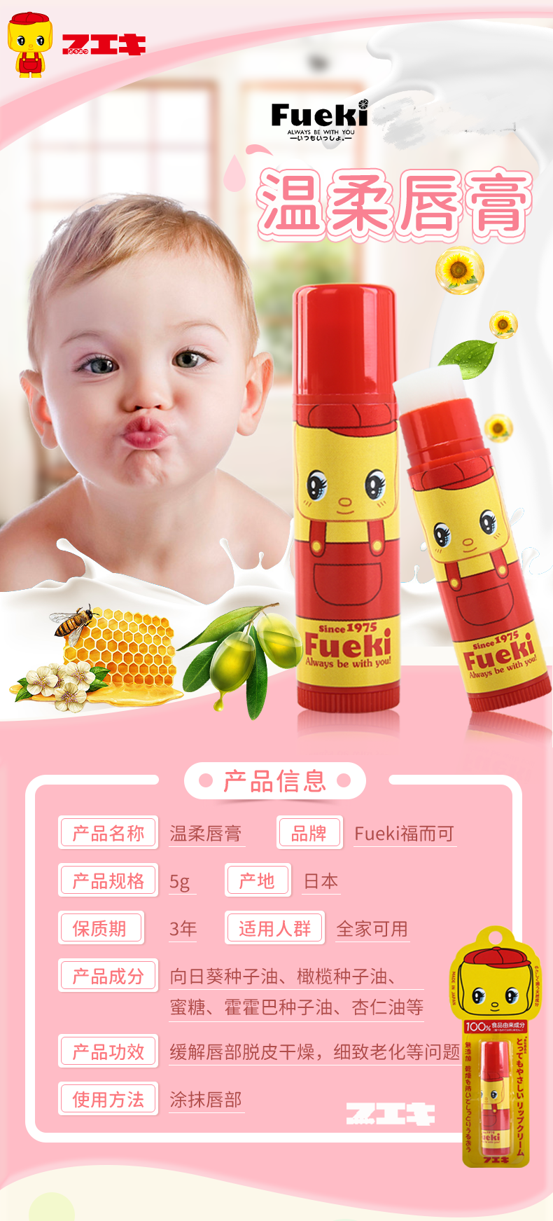 【婴幼儿唇膏】 日本福而可Fueki小黄鸭婴儿童宝宝润唇膏 保湿滋润马油护唇膏5g