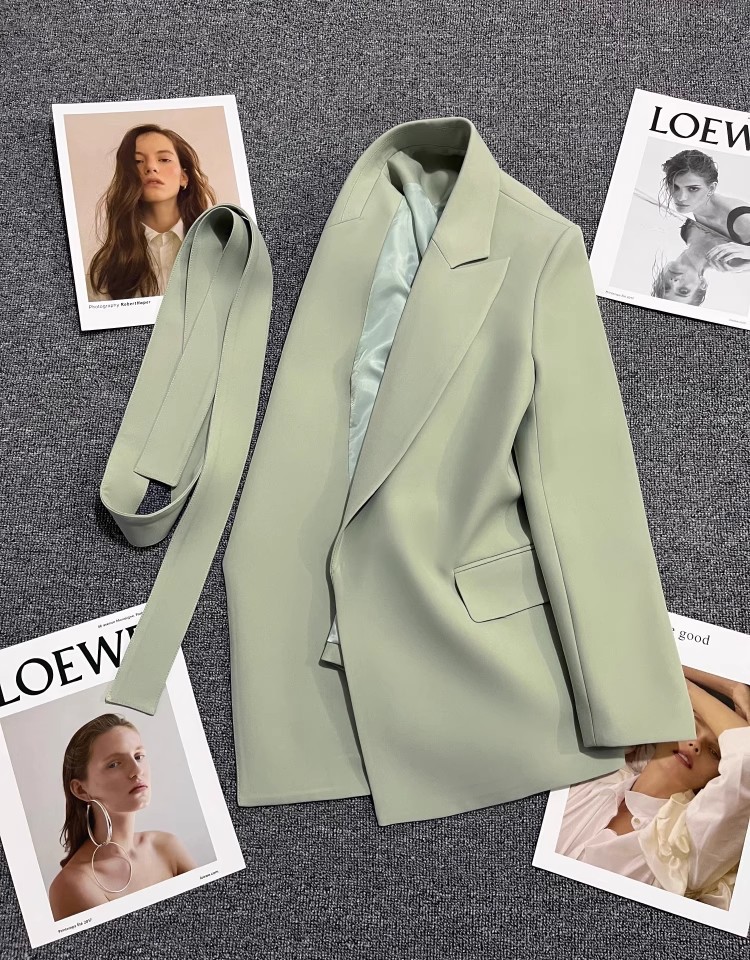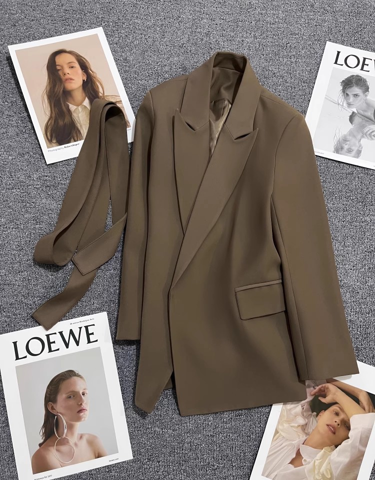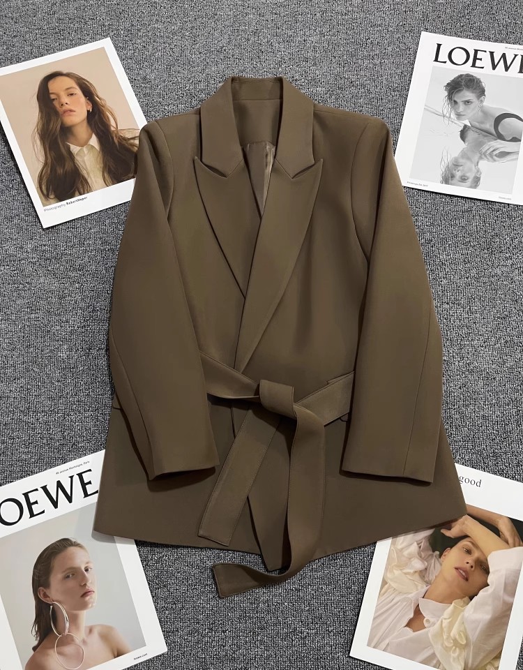 【清风外衣】2026春秋新款黑色系带西装外套!女韩版高端气质时尚百搭西服上衣!