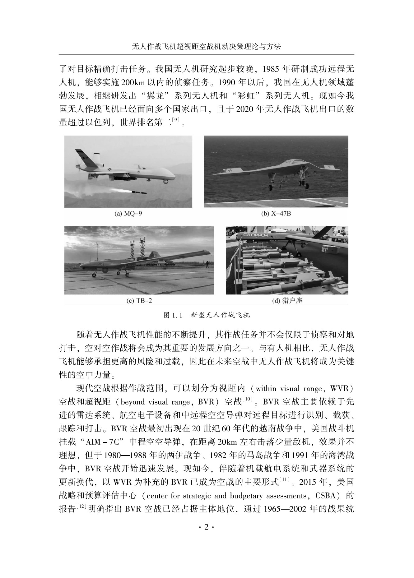 本书聚焦未来空战智能化发展需求,针对未来制空型无人作战机超视距空战问题,以;目标识别_占位发射_中制导规划_末制导拦截四个阶段为研究主线,系统阐述了无人机超视距空战的应用背景、基于自注意卷积表格网络模型的目标机动意图识别方法、意图指导下的占位机动决策方法、基于差分进化的中制导机动决策方法和基于目标逃逸机动决策的末制导拦截研究等内容。