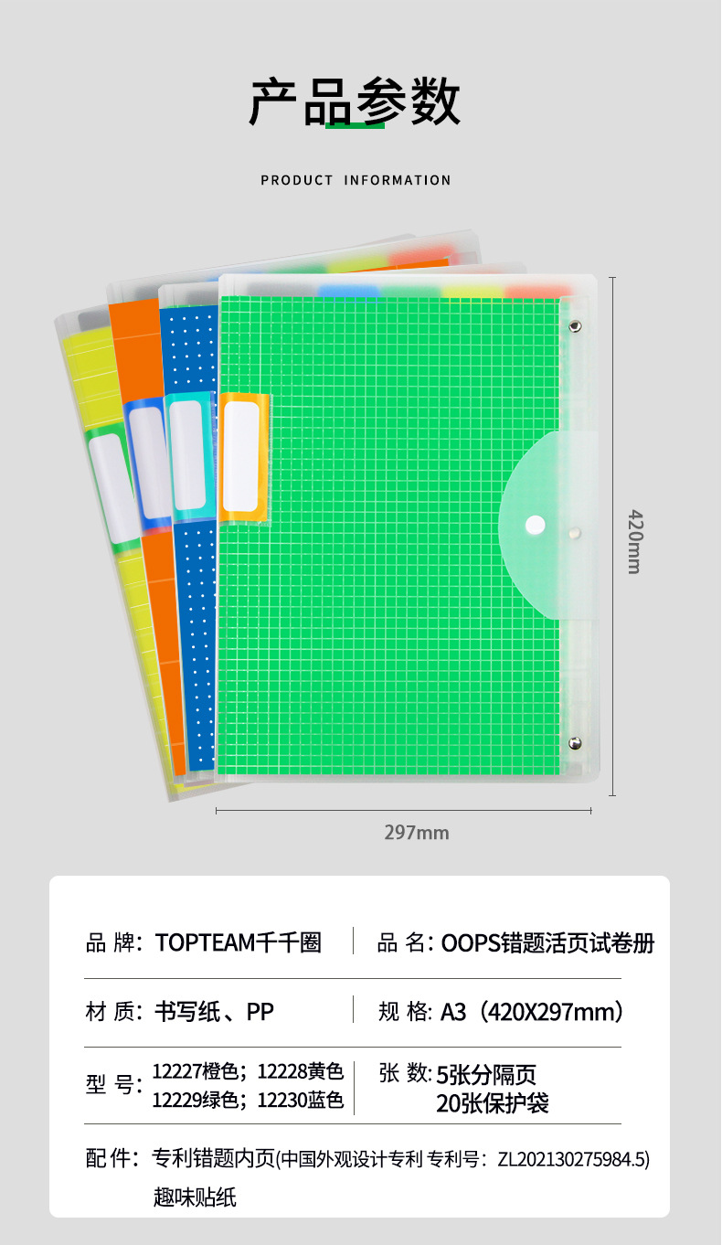 千千圈 创意OOPS活页可拆A3错题本PP试卷册学生错题收纳册试卷册
