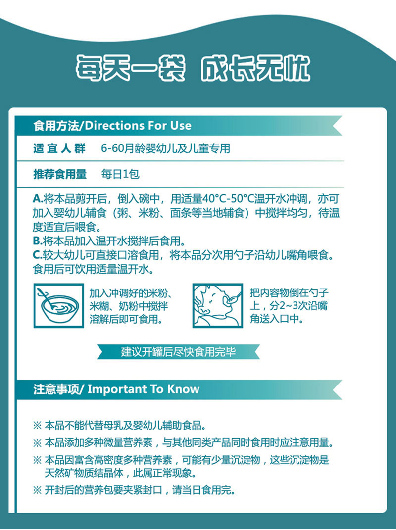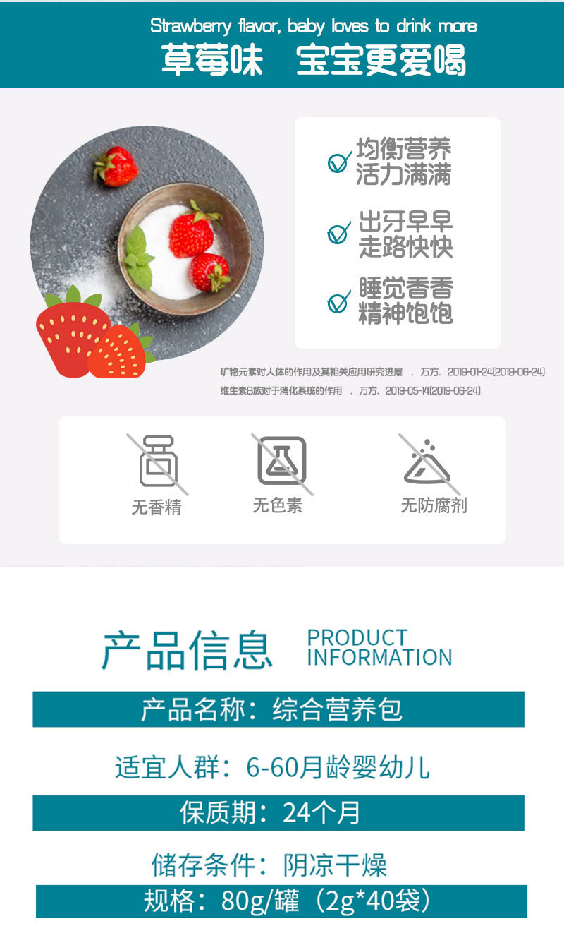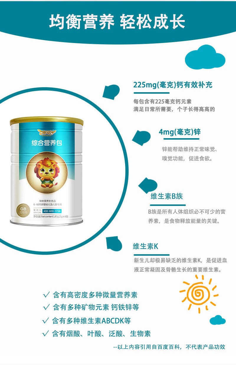 施贝安钙铁锌婴幼儿宝宝综合辅食营养包维生素2g*40袋/罐