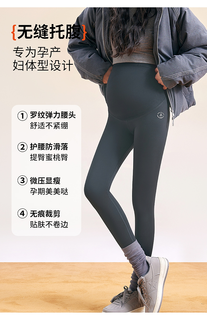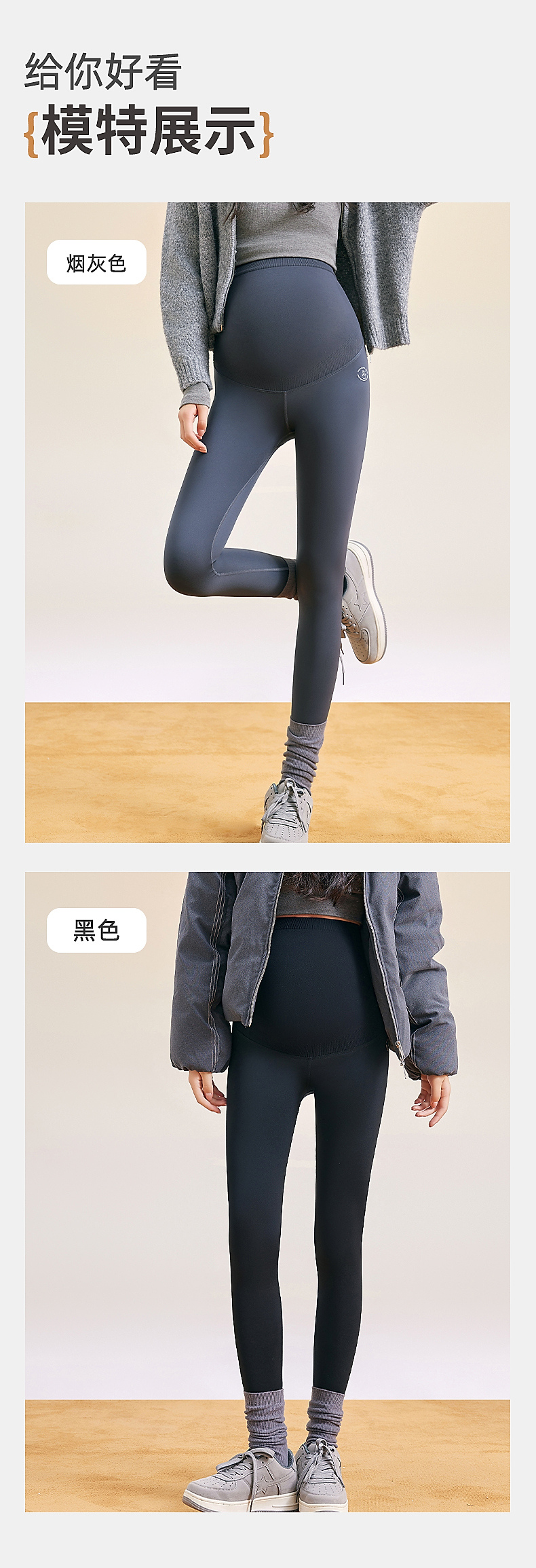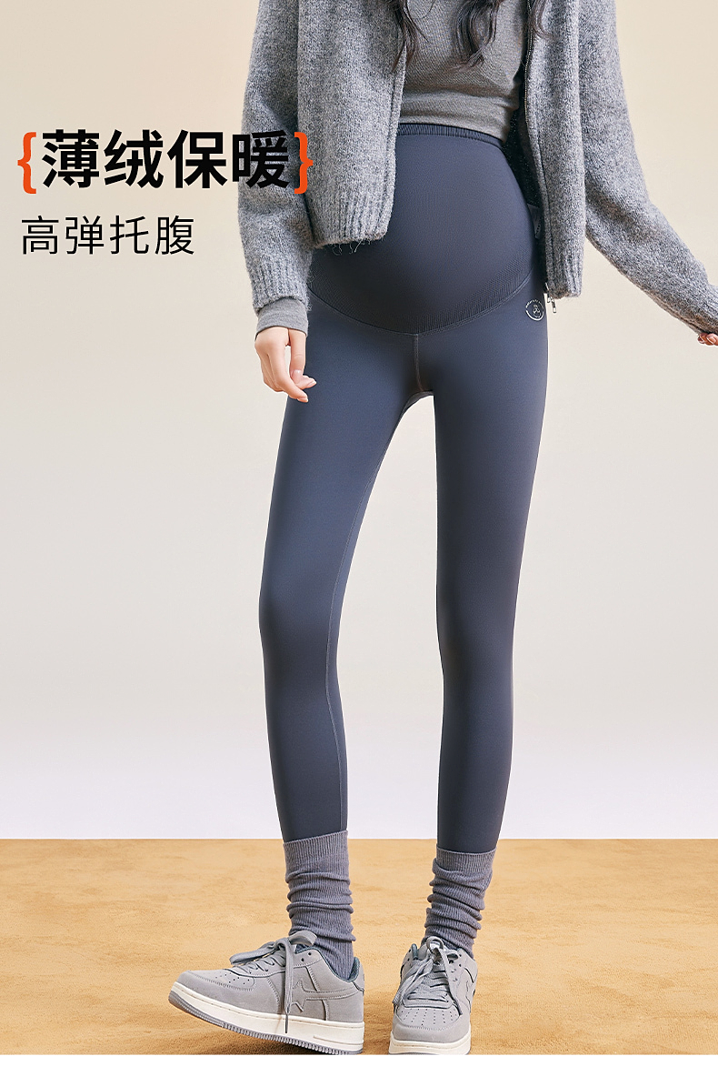 雅黛俪孕妇打底裤高弹舒适不勒可调节松紧带薄绒保暖裤秋冬