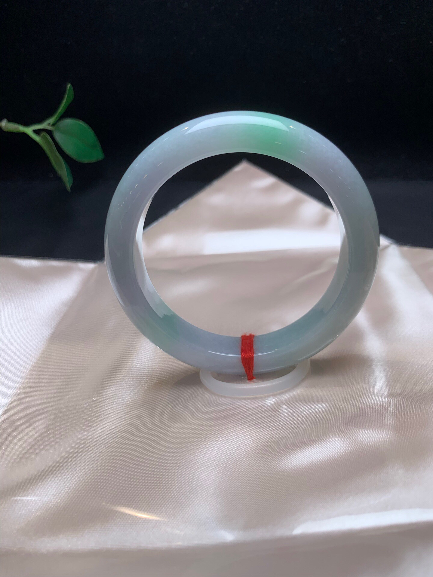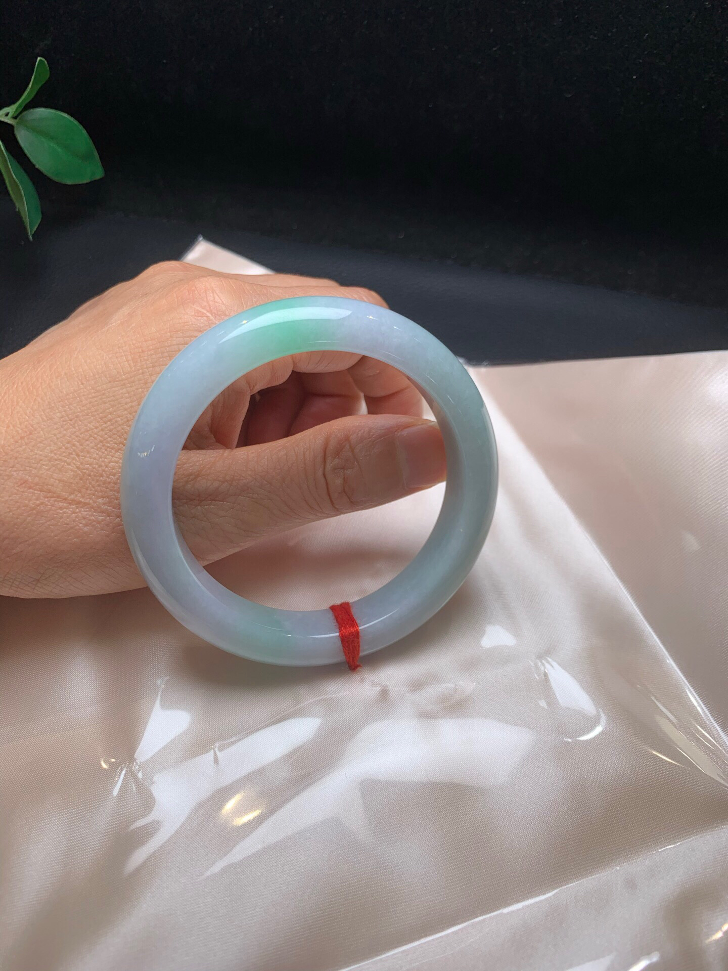 620388,57飘绿手镯,12.7-8.8mm 版型好,底妆干净细腻 飘清新绿色,完美秀气,超值价💰15500 #优石客珠宝#香玉荟萃
