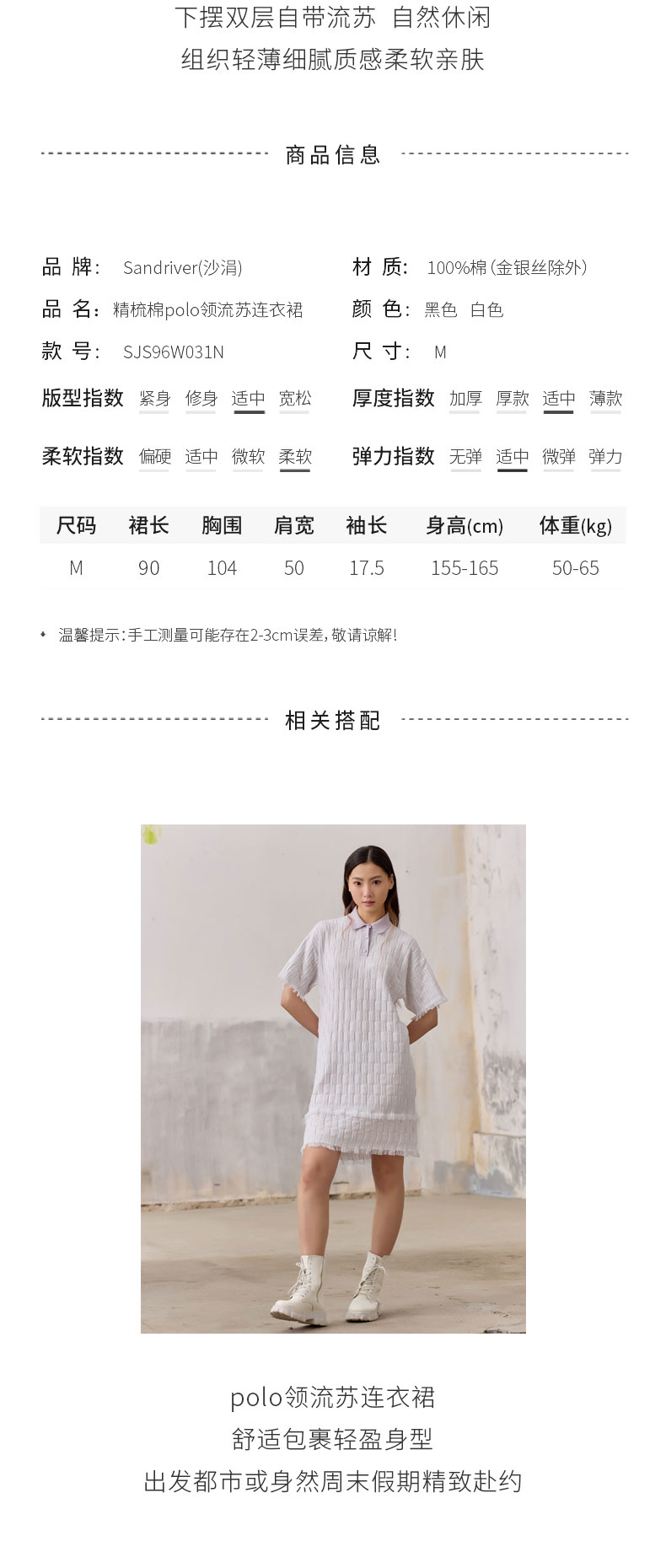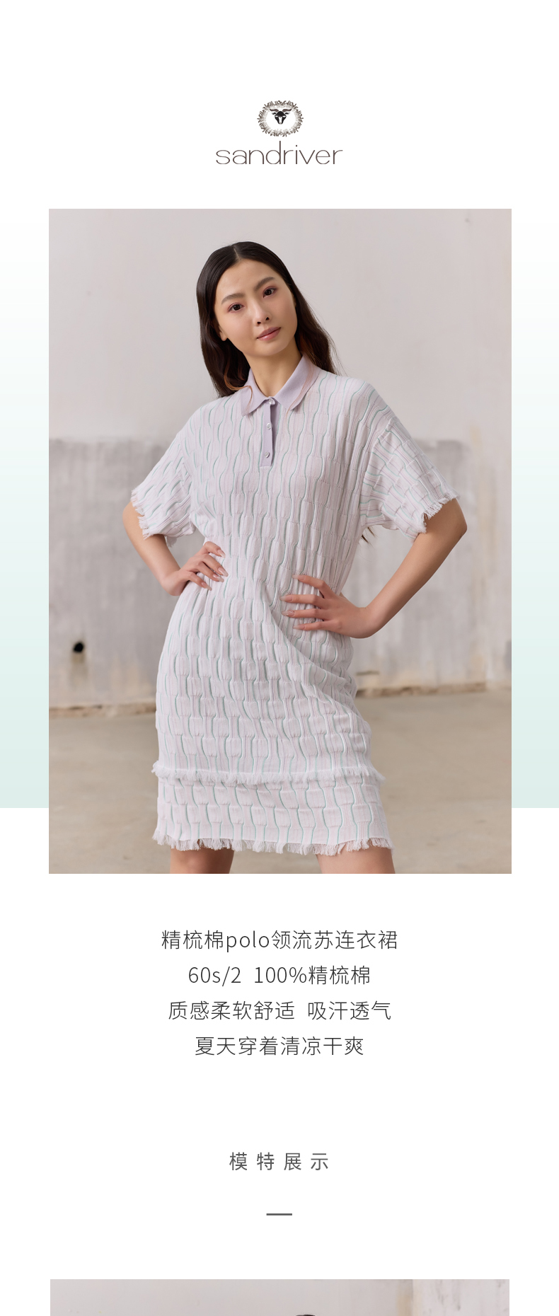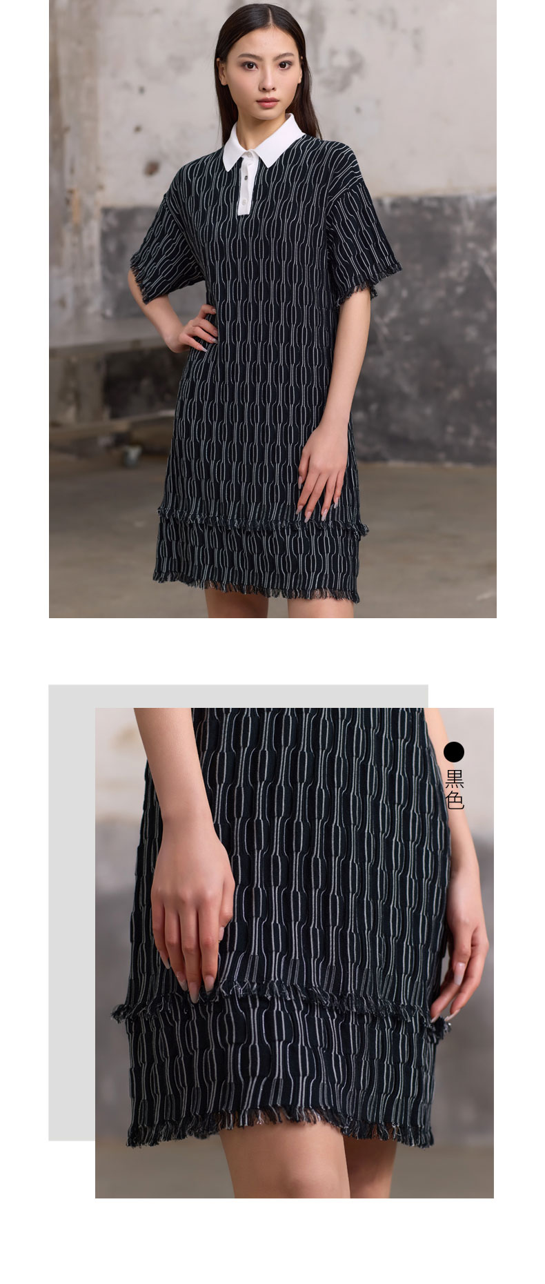 精梳棉polo领流苏连衣裙SJS96W031N