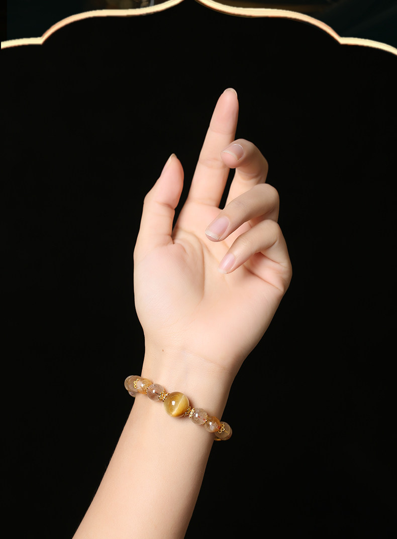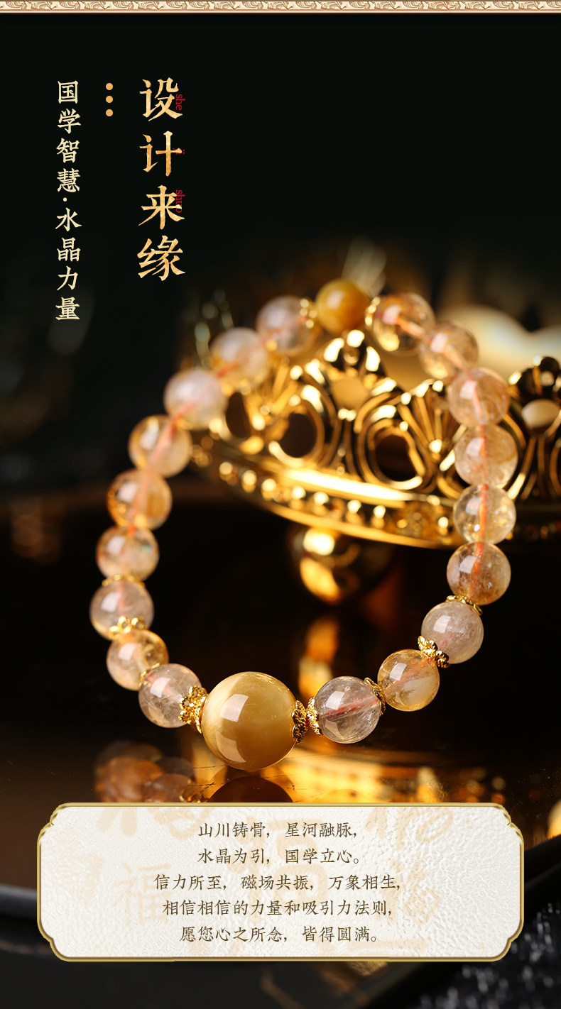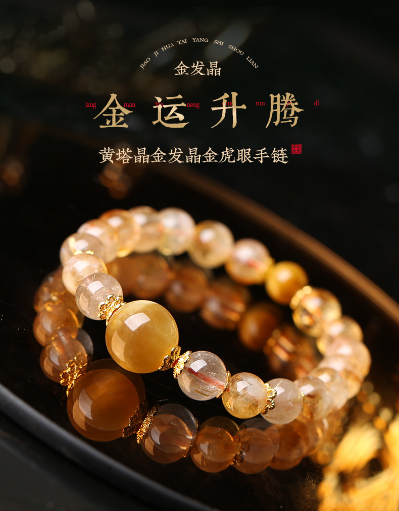 【祈愿吉品】「金运升腾」黄塔晶金发晶金虎眼手链