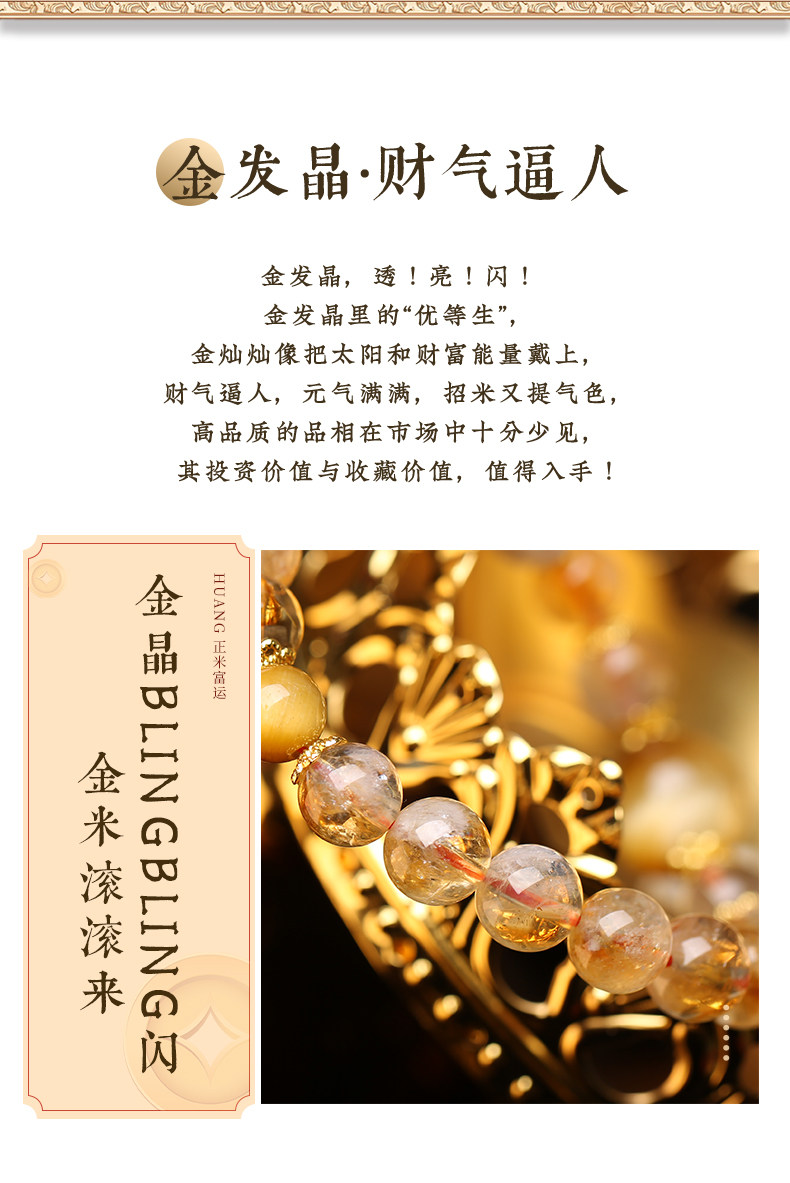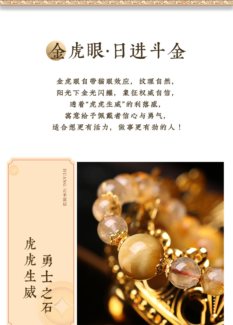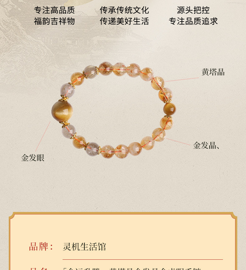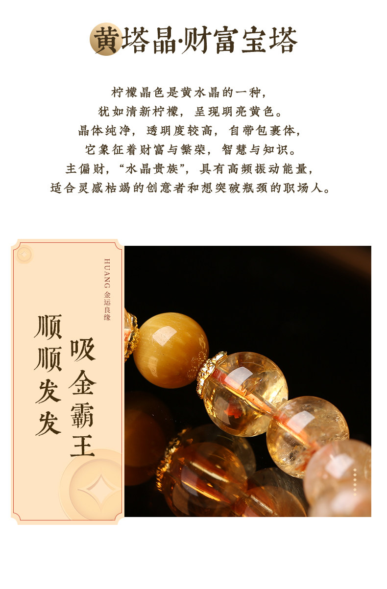 【祈愿吉品】「金运升腾」黄塔晶金发晶金虎眼手链