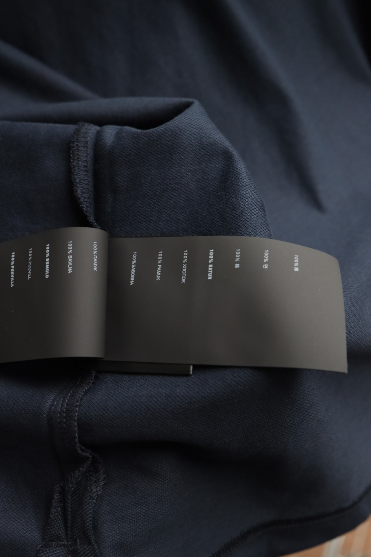 同色系刺绣小标识在胸口,领口袖口做了色织织带细条纹拼接装饰