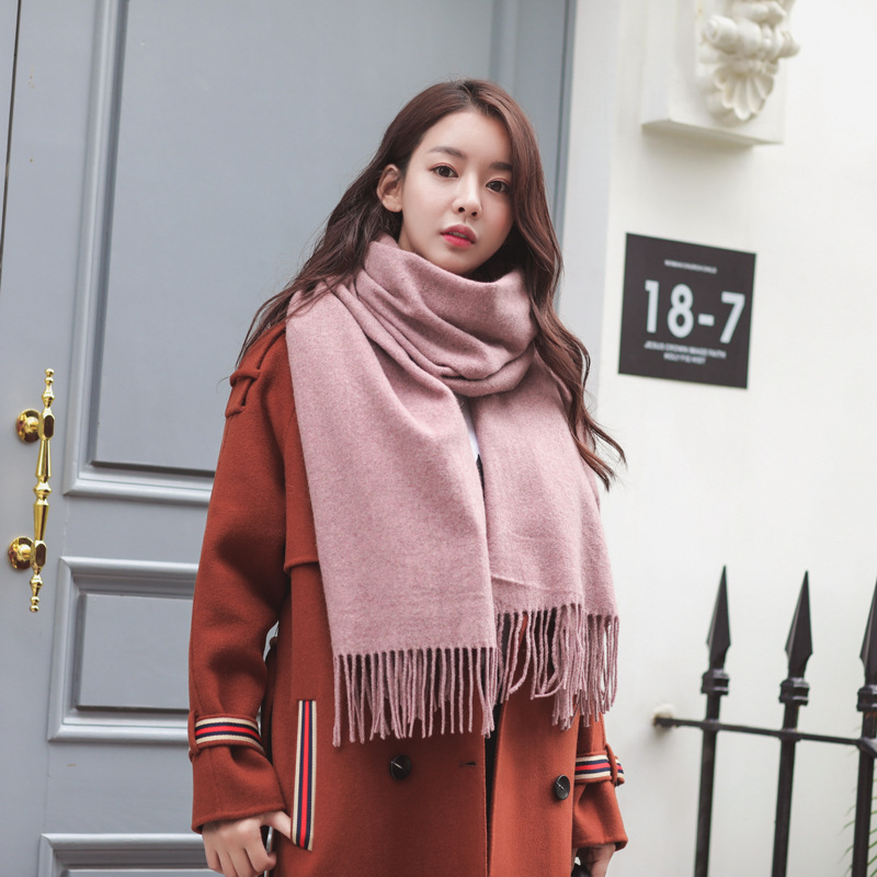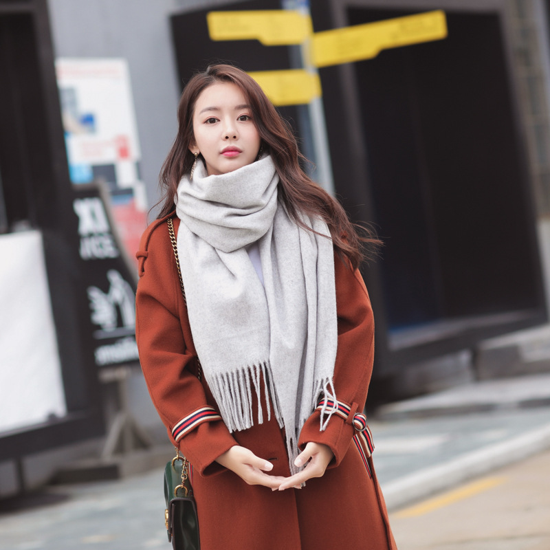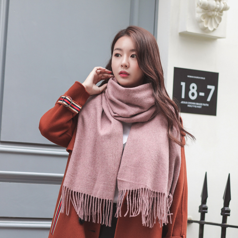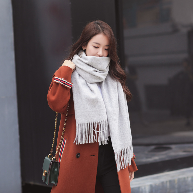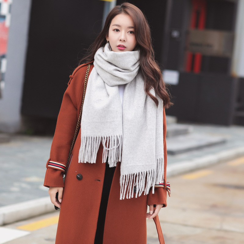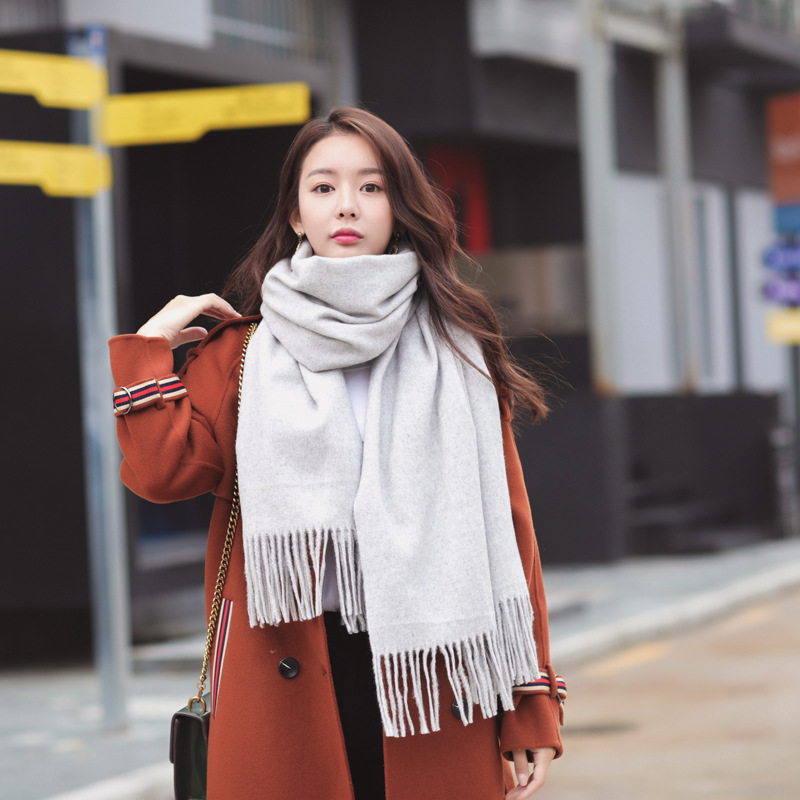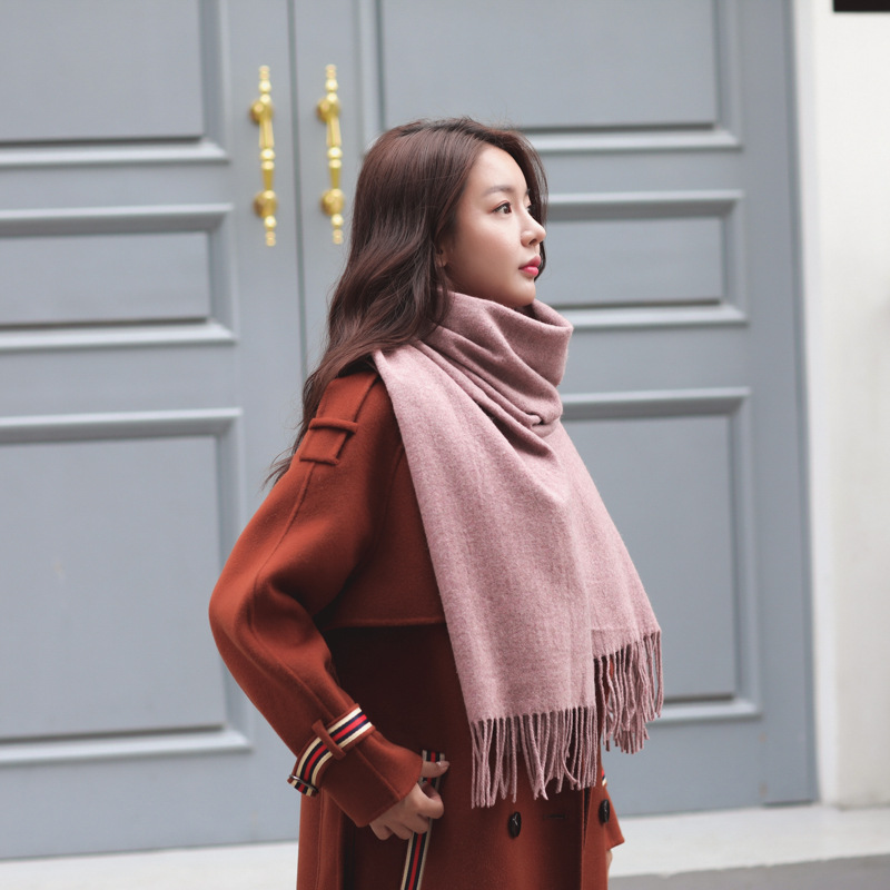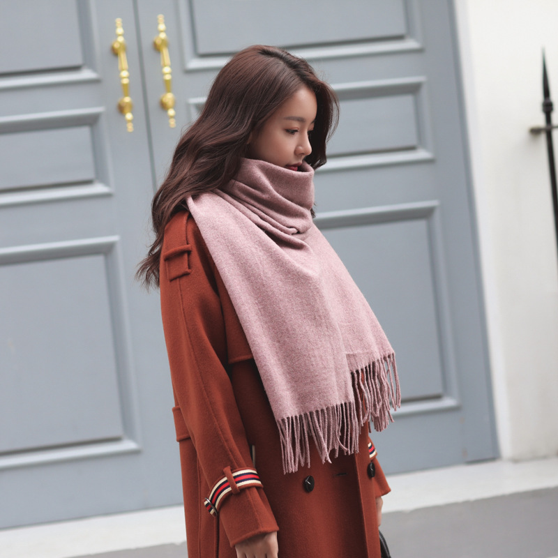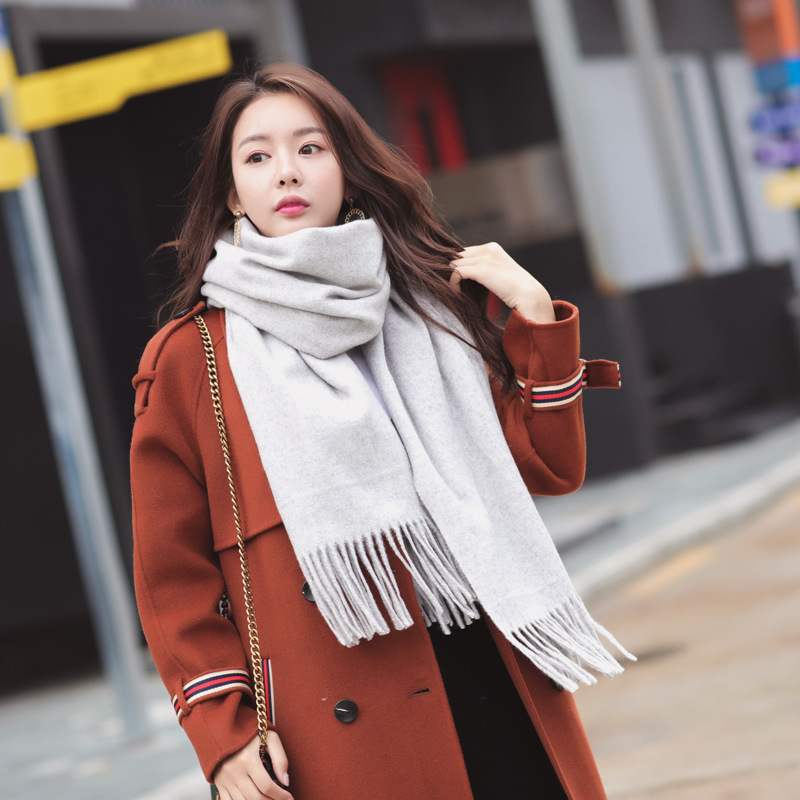 【围巾女】经典百搭纯色羊绒围巾女 超长加厚流苏围巾空调披肩两用男女围脖