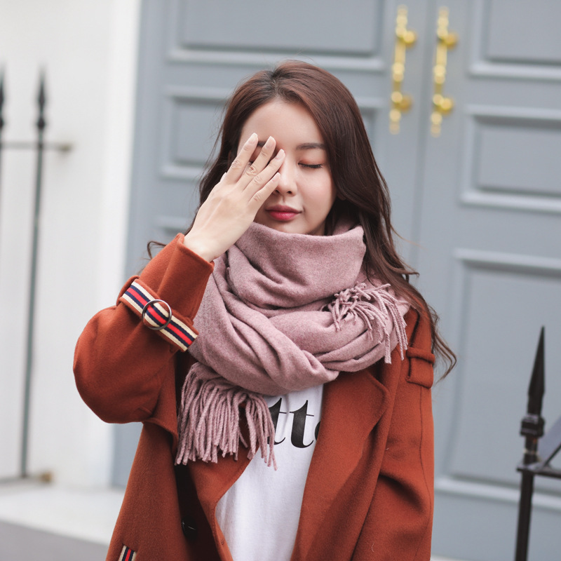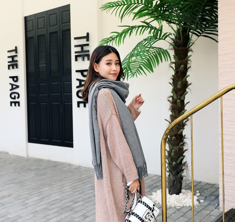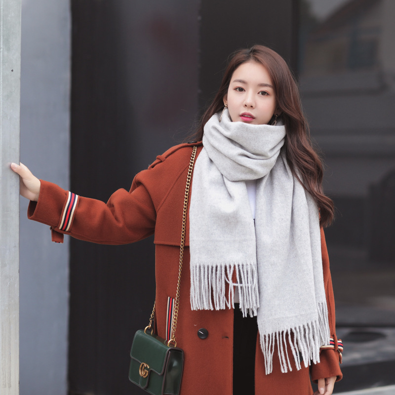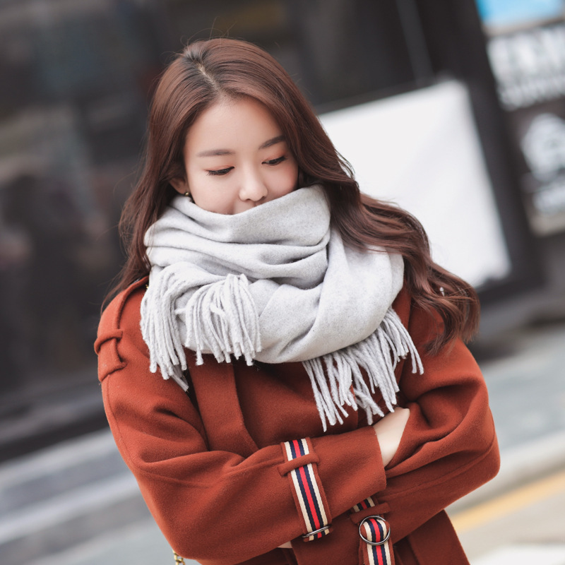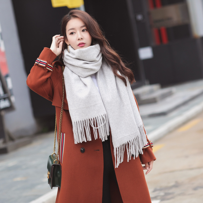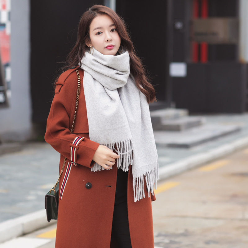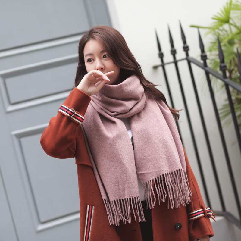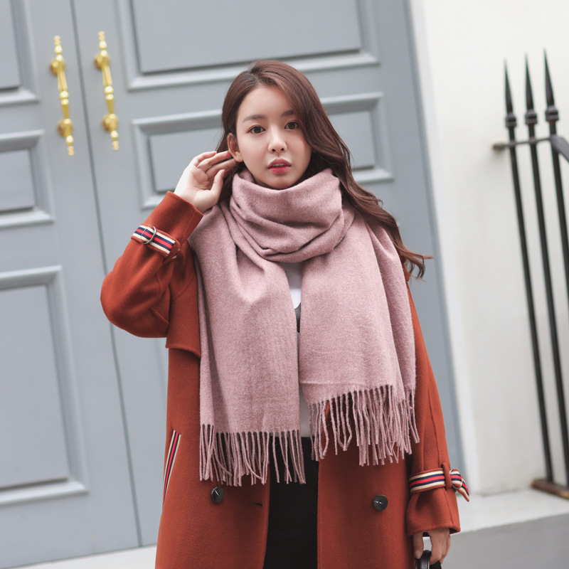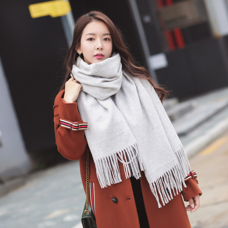 【围巾女】经典百搭纯色羊绒围巾女 超长加厚流苏围巾空调披肩两用男女围脖