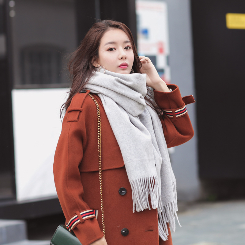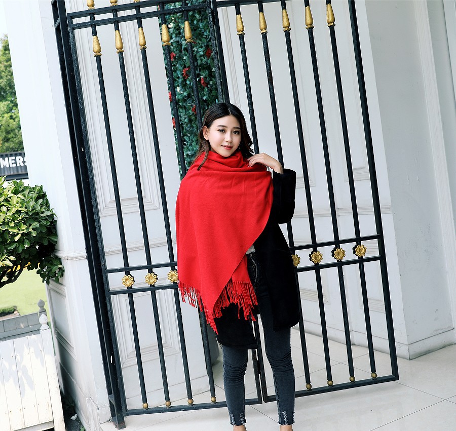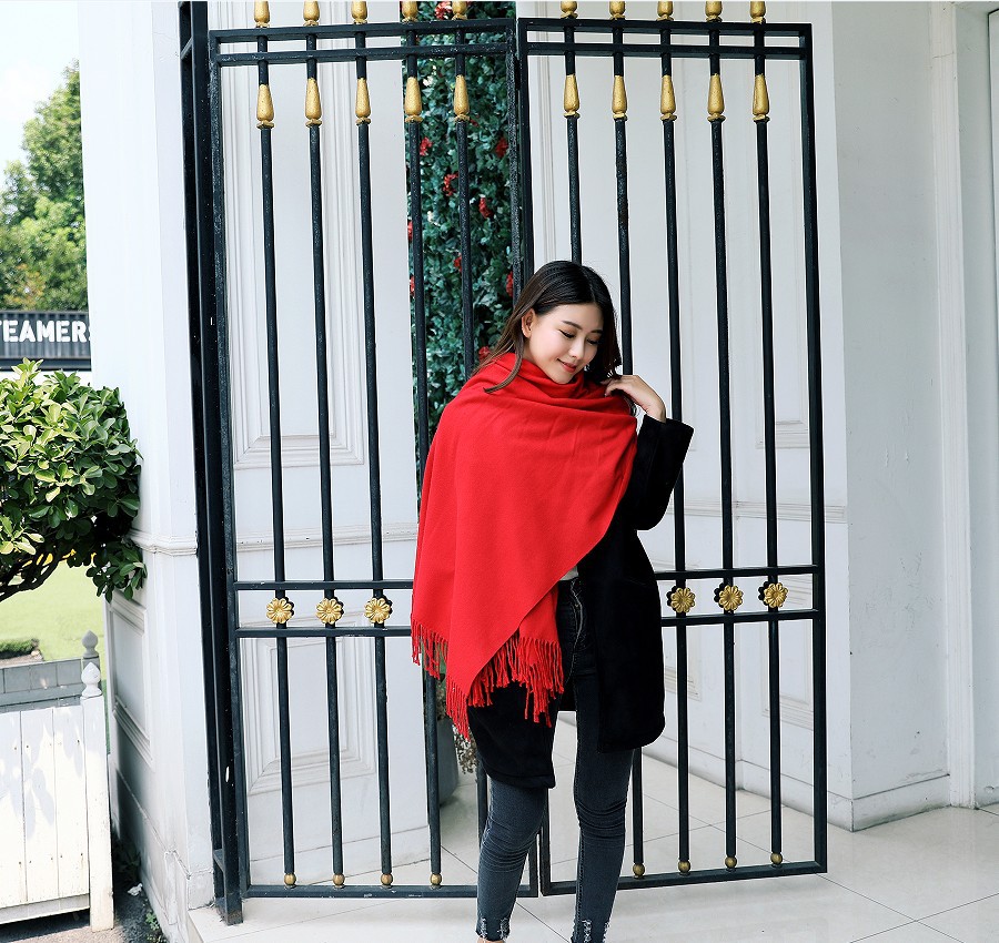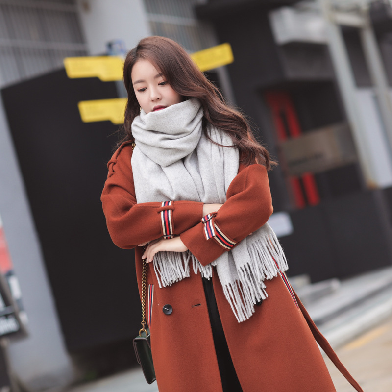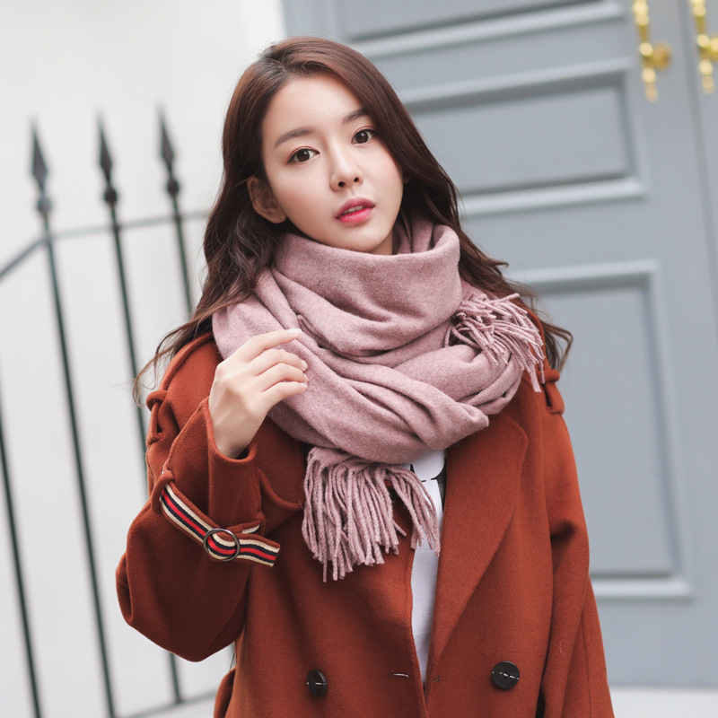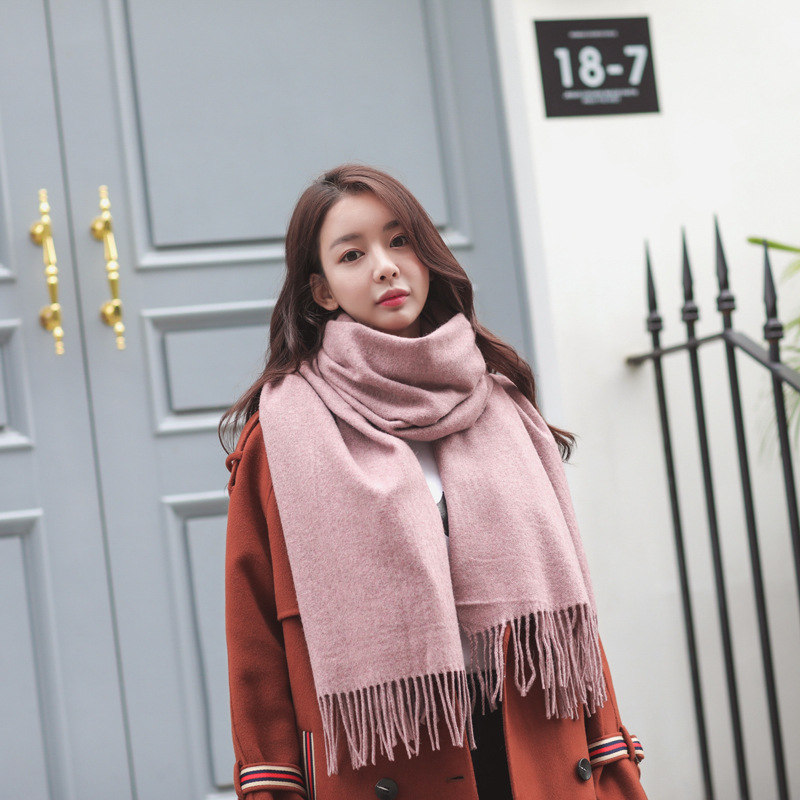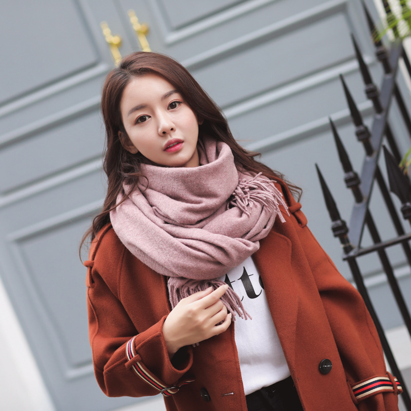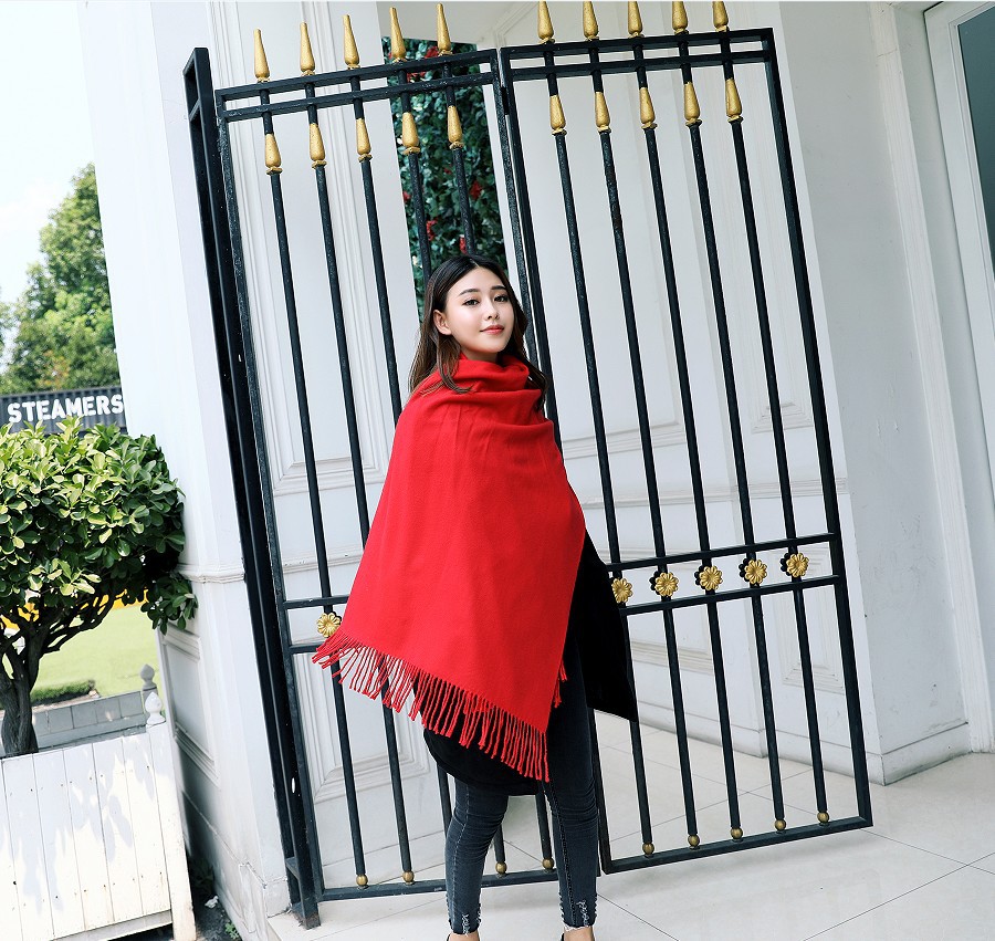 【围巾女】经典百搭纯色羊绒围巾女 超长加厚流苏围巾空调披肩两用男女围脖