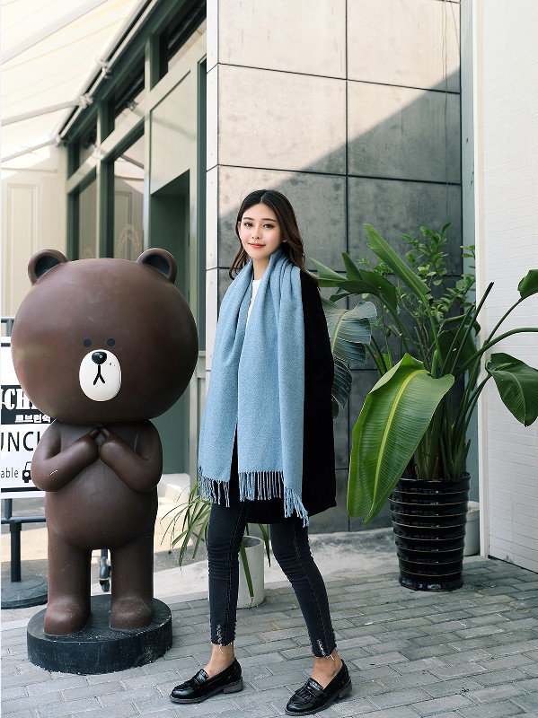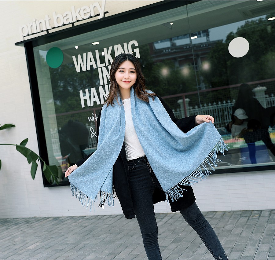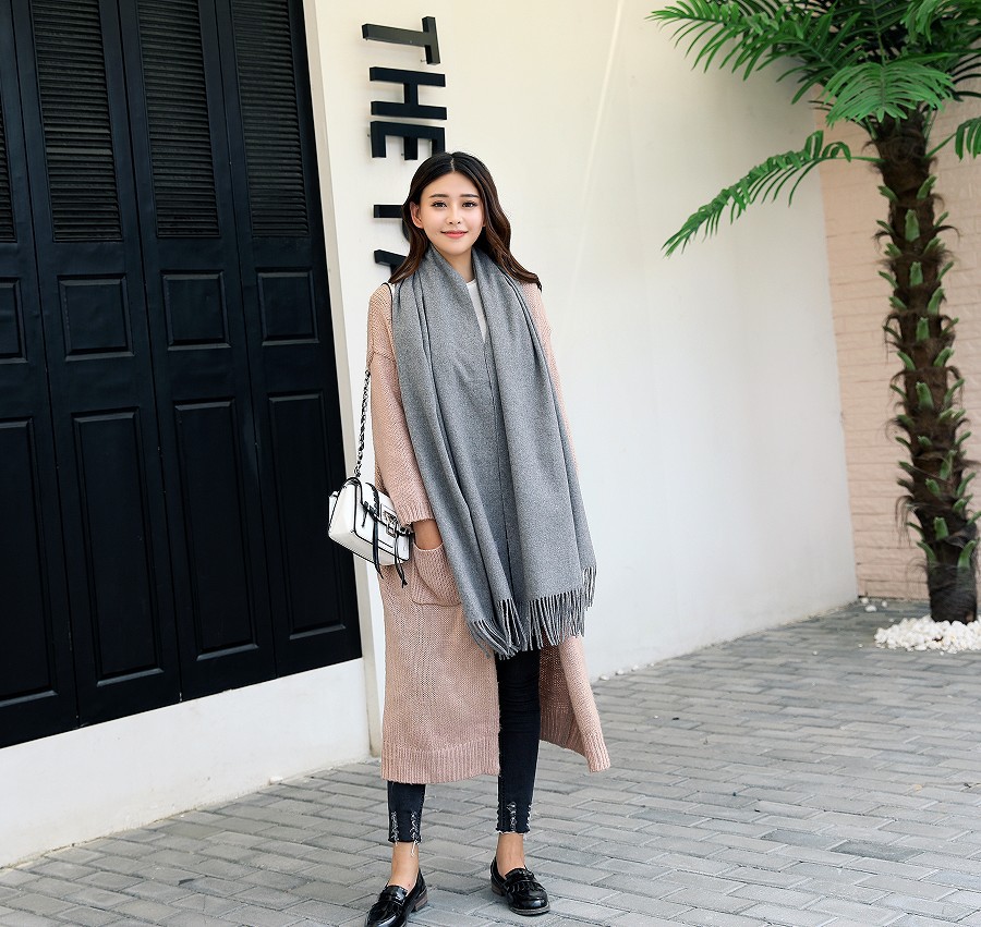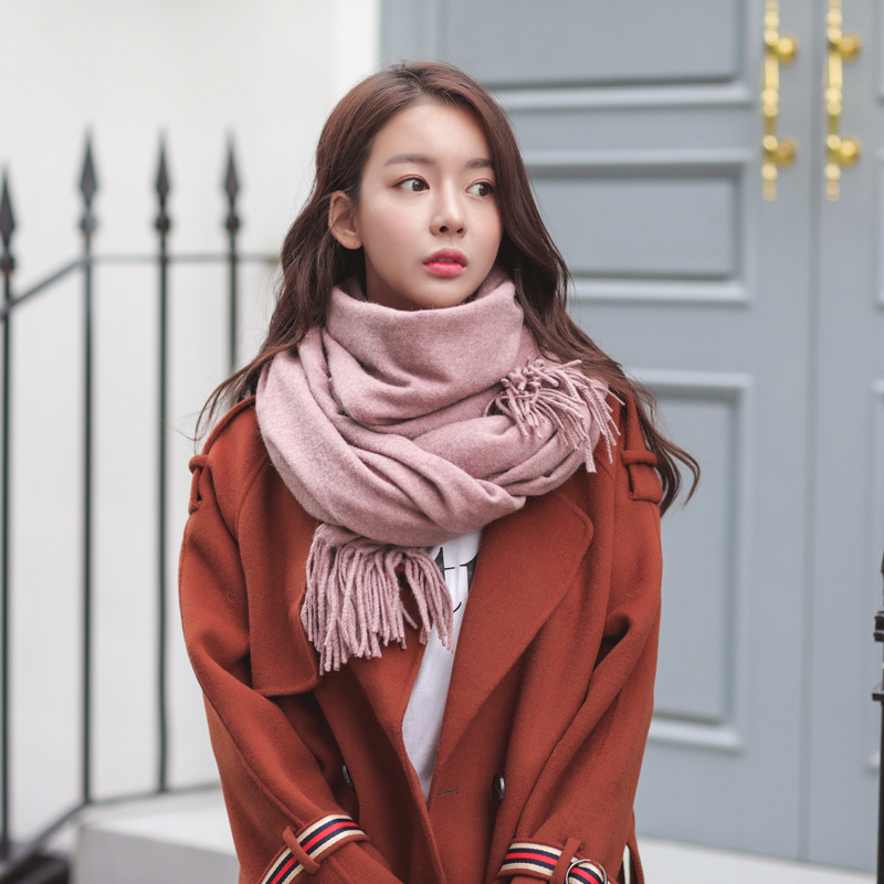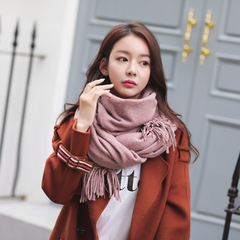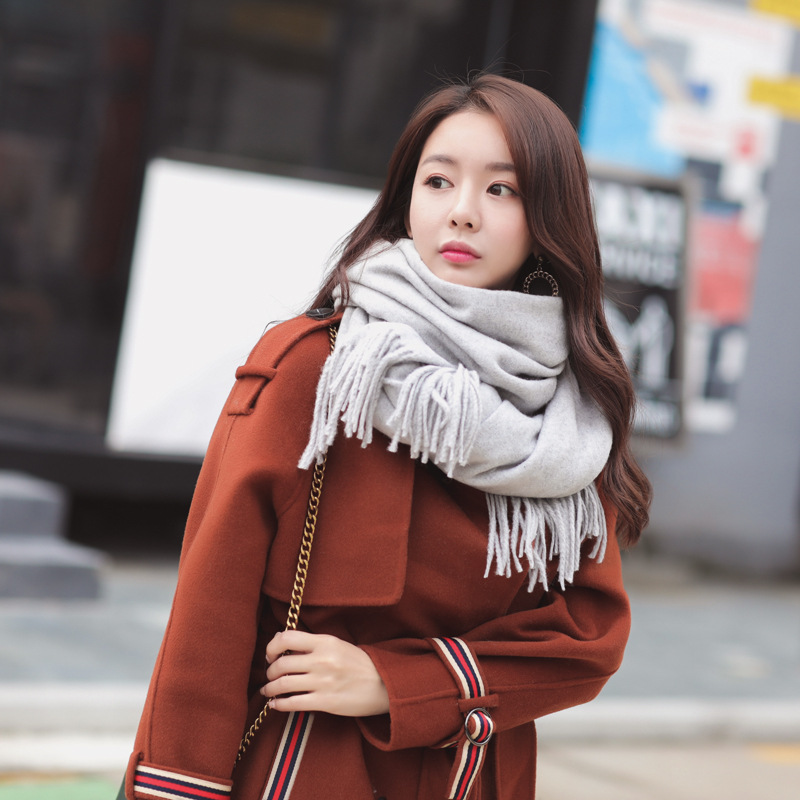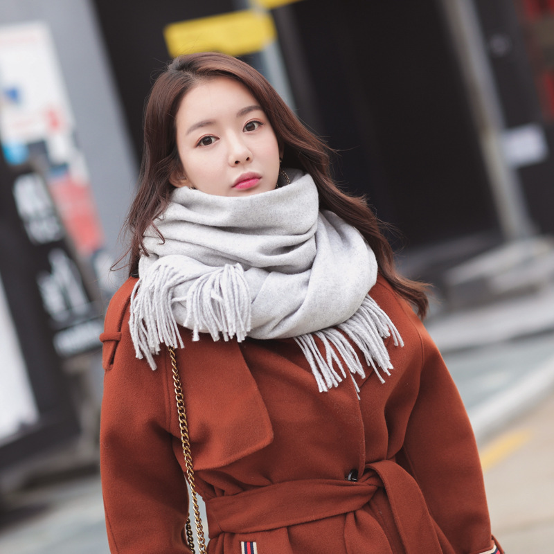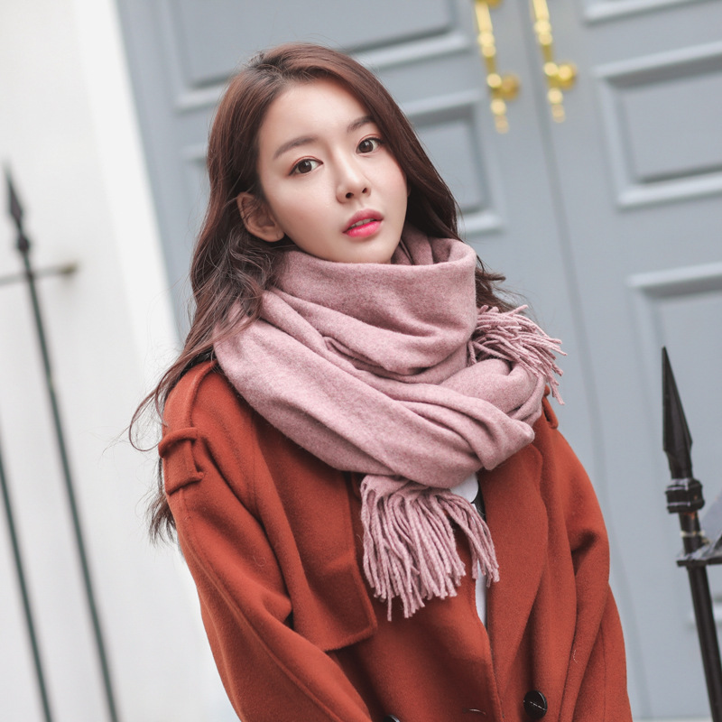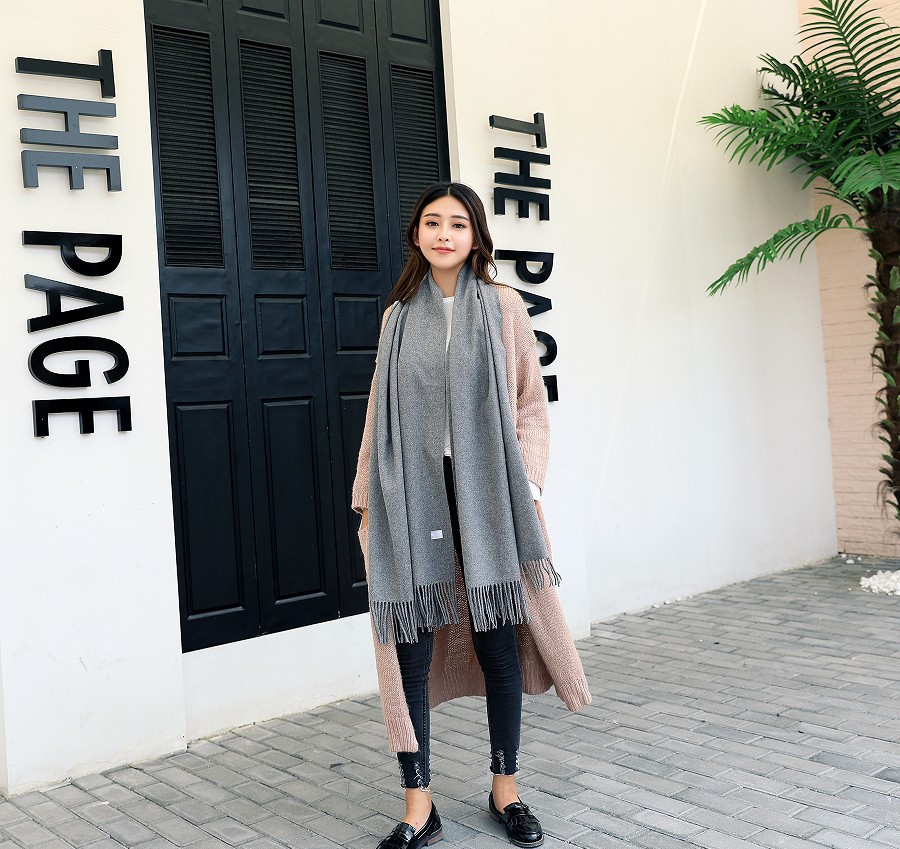 【围巾女】经典百搭纯色羊绒围巾女 超长加厚流苏围巾空调披肩两用男女围脖