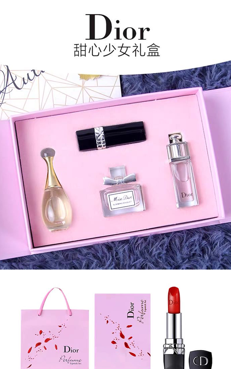 【送礼袋】Dior迪奥甜心爱恋礼盒四件套(真我5ml+甜心5ml+魅惑5ml+999口红1.5g )一般贸易