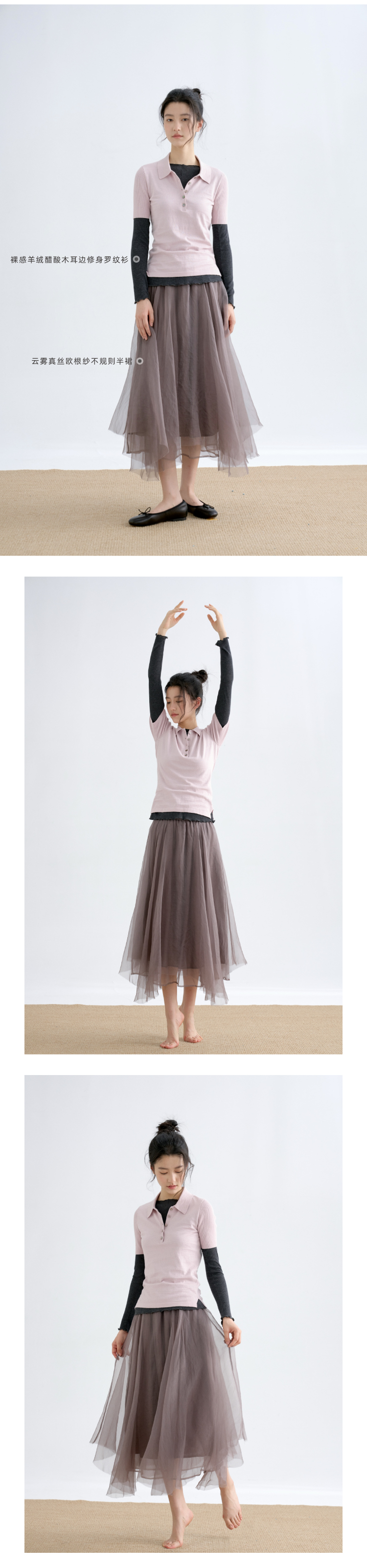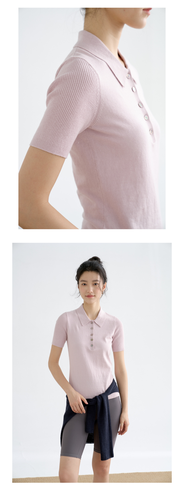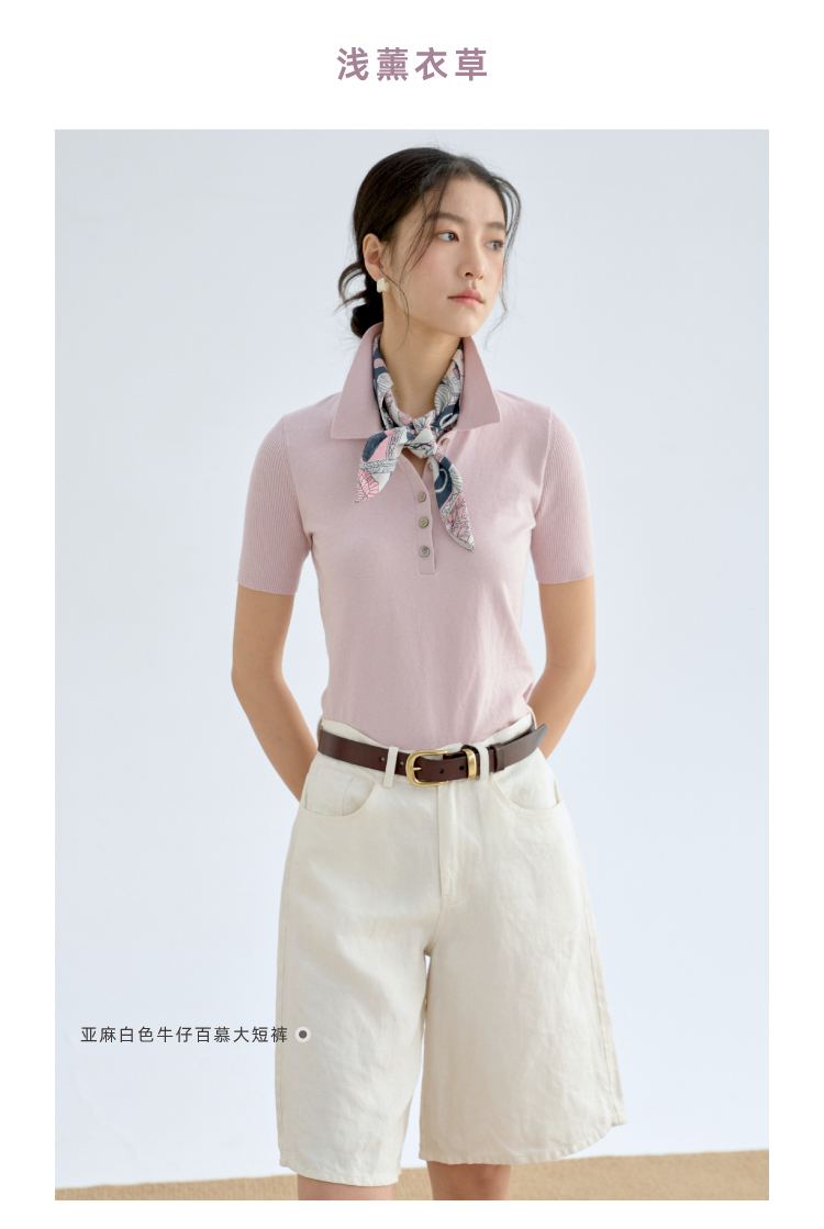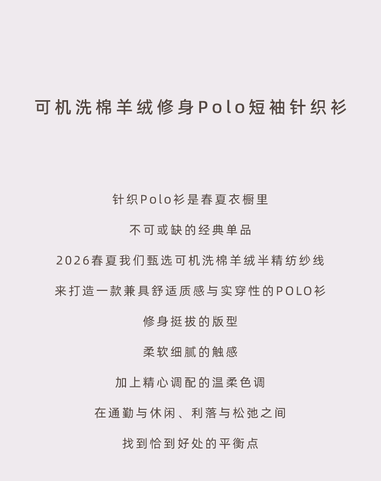 可机洗棉羊绒修身Polo短袖针织衫