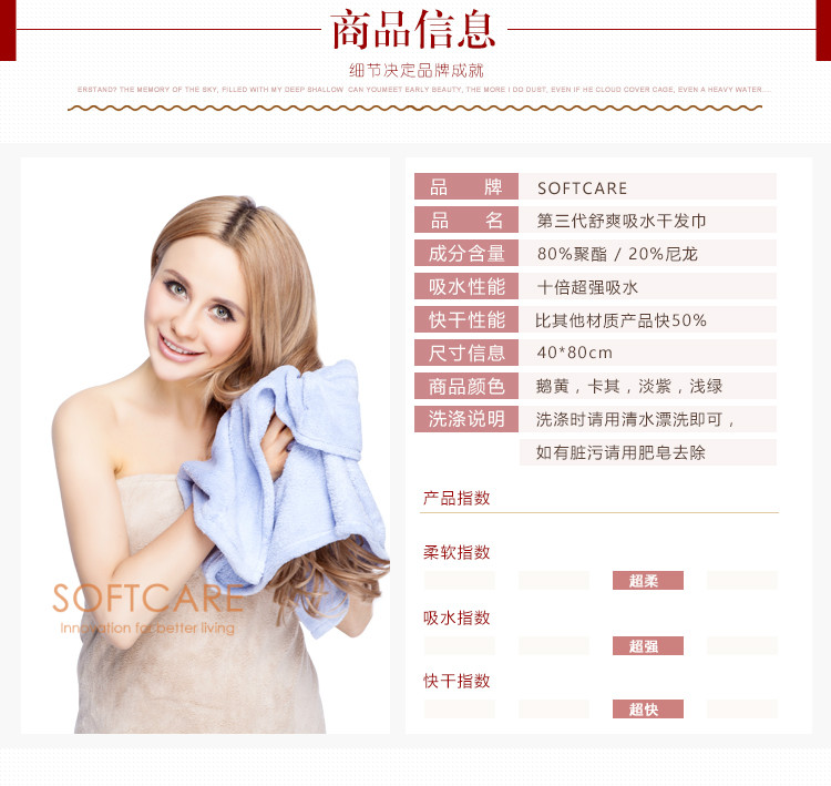 【必败榜——干发巾】迎4月开放日 买二赠一活动中 男士 女士都可以用的十倍吸水干发巾 SOFTCARE速干加长干发巾 毛巾