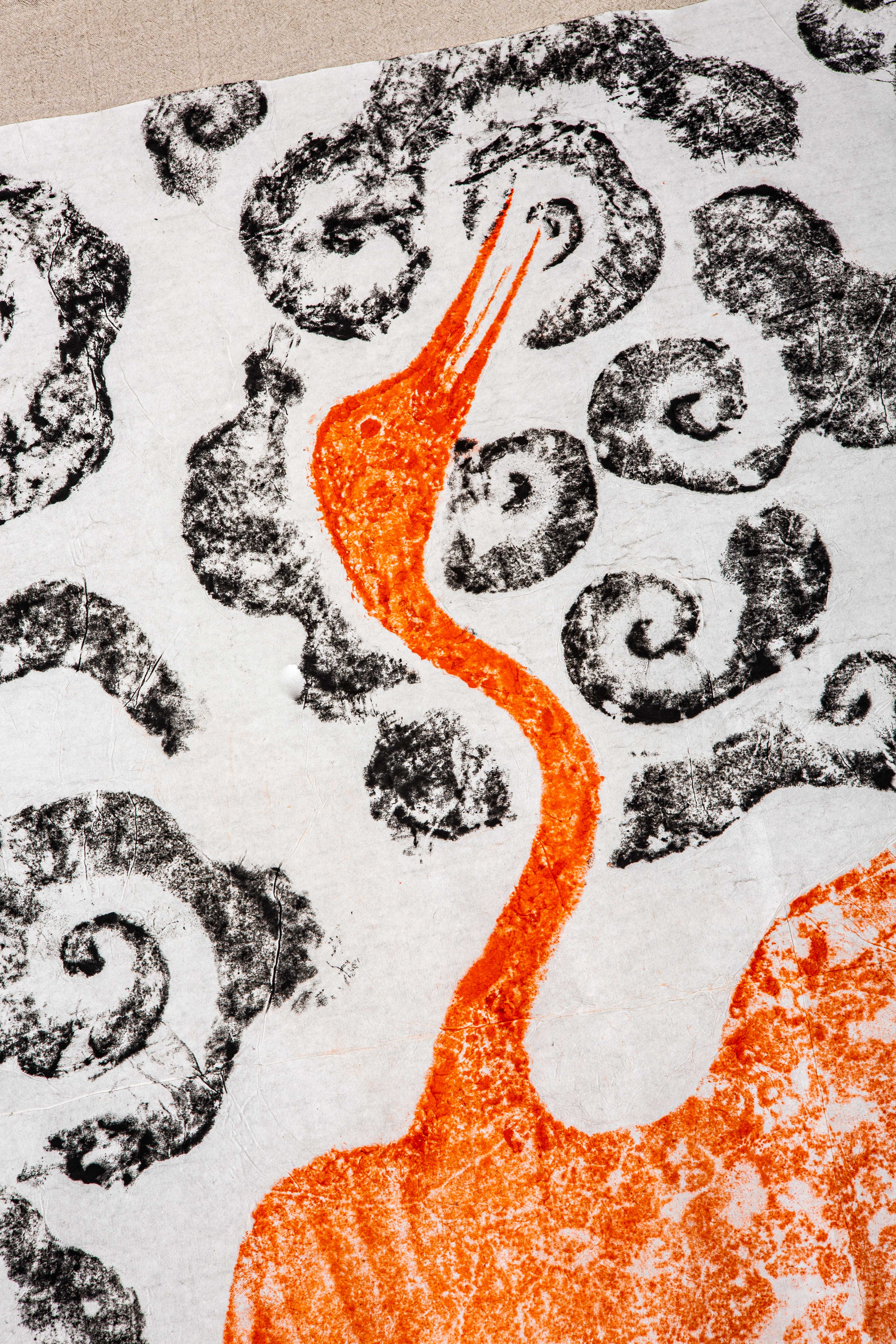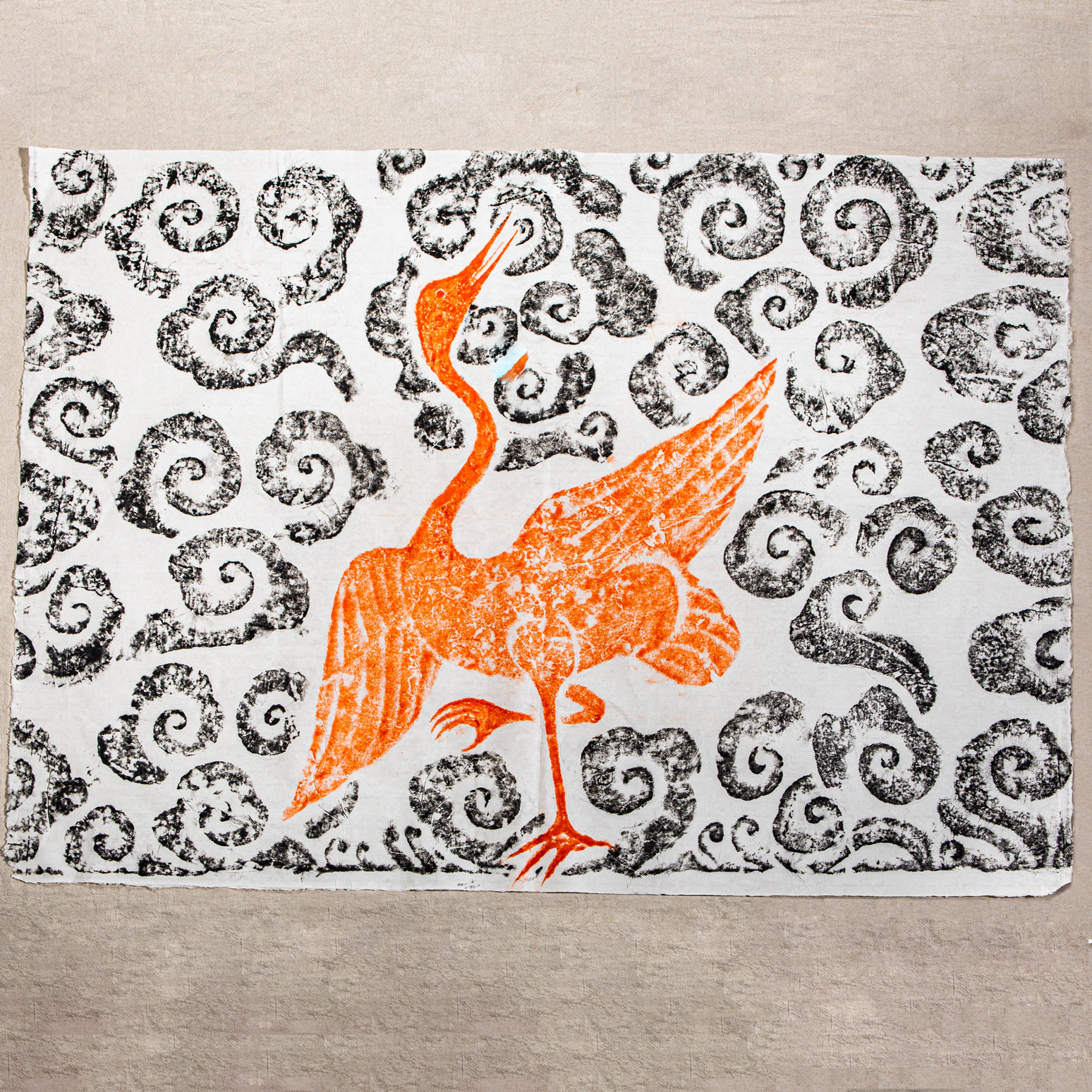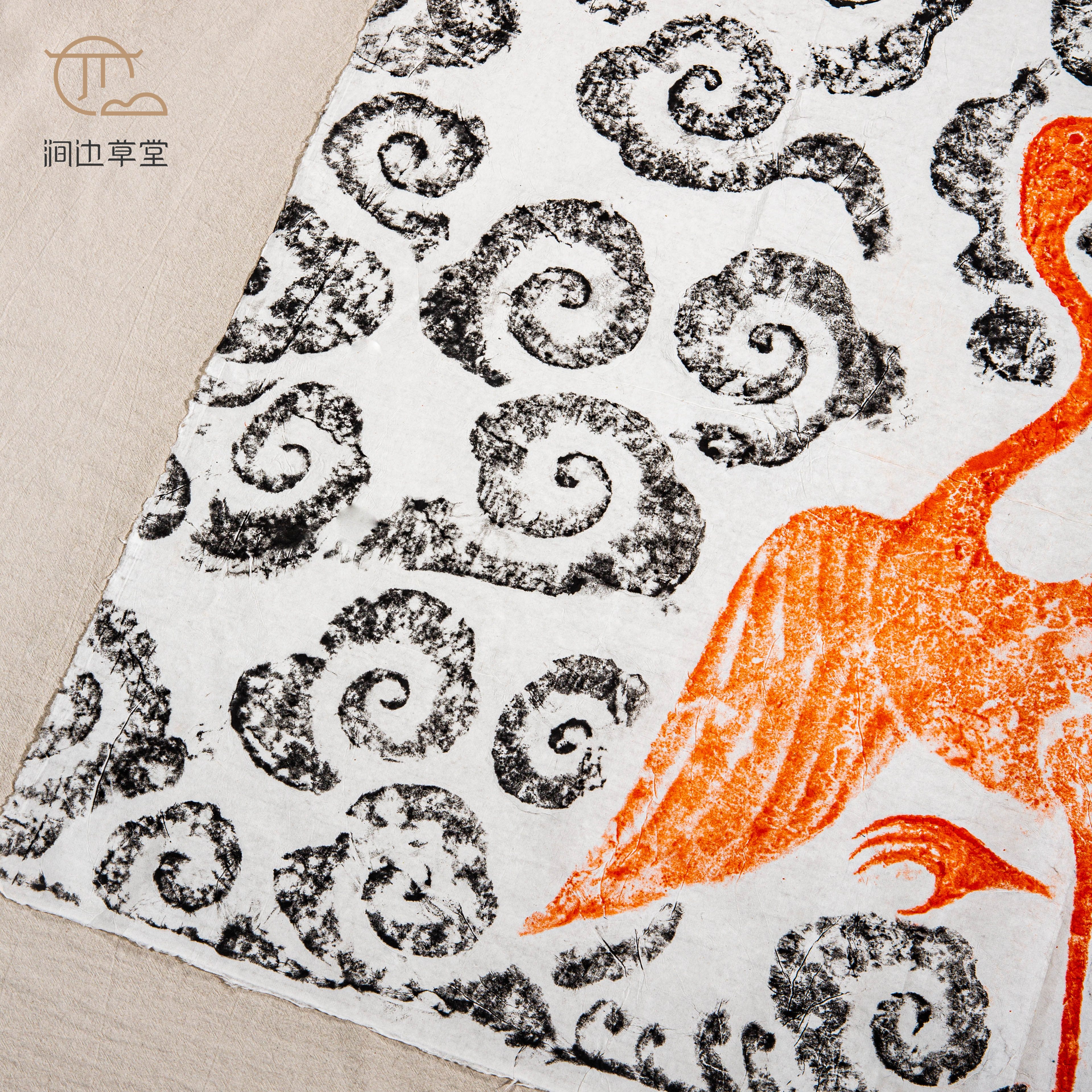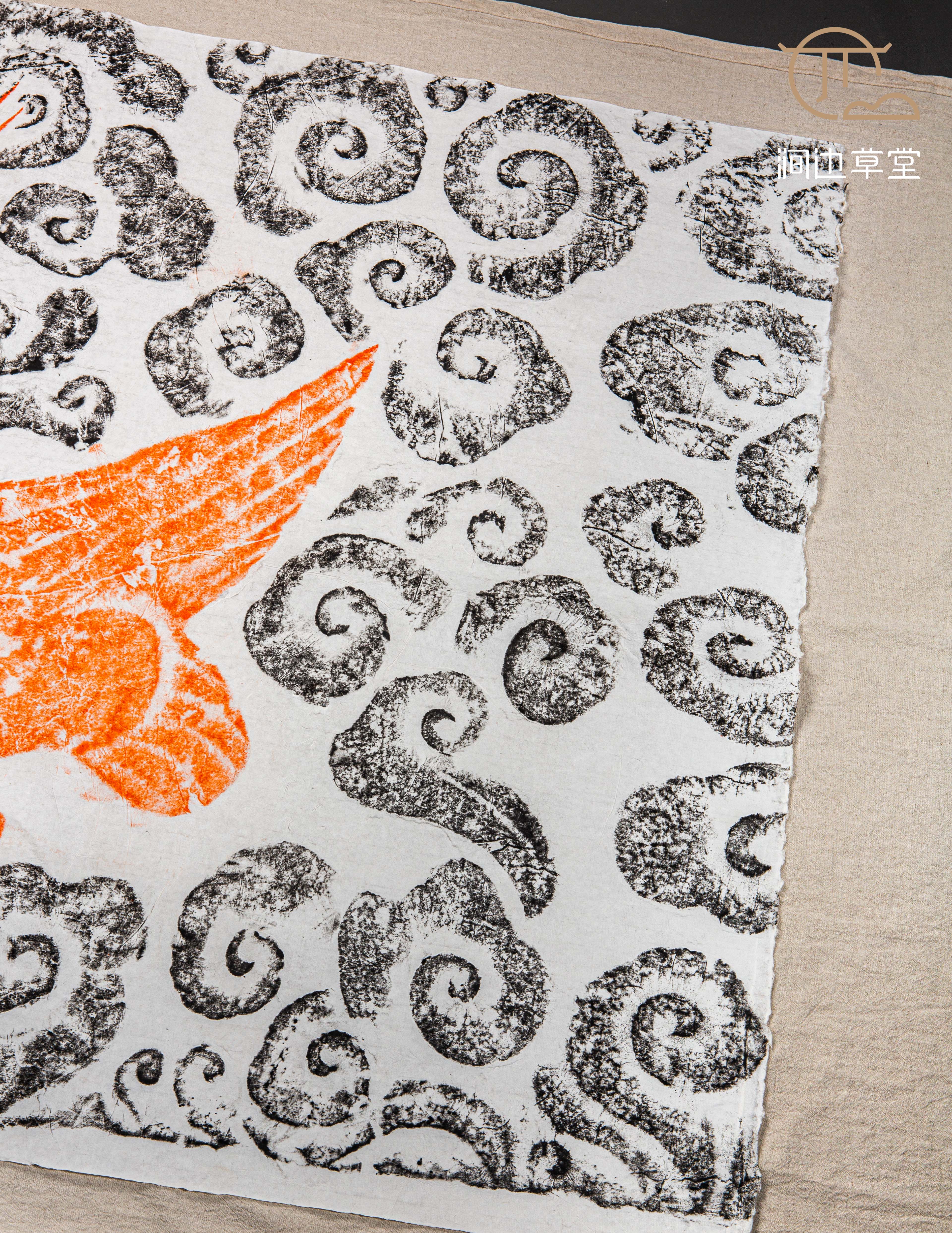 宋代“仙鹤祥云”石刻双色拓片,原石原拓,拓工精细,尺幅大,具有文人气息,十分难得。