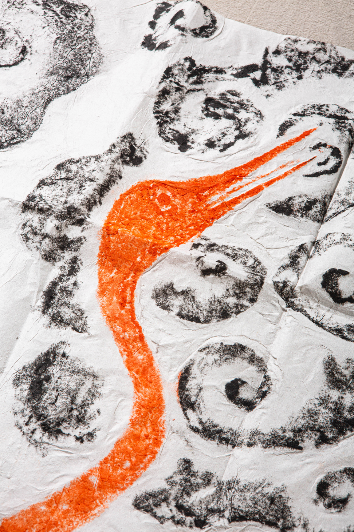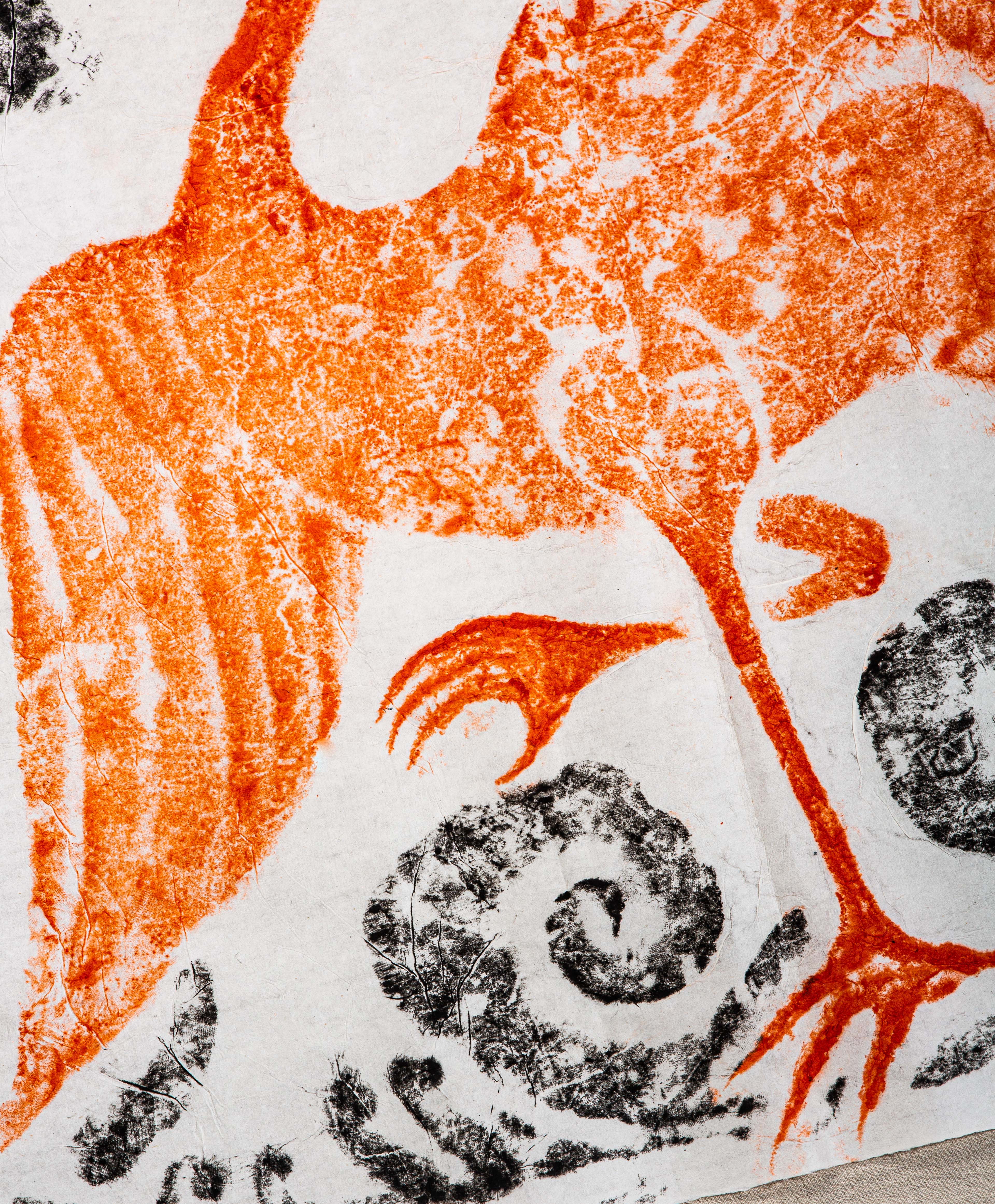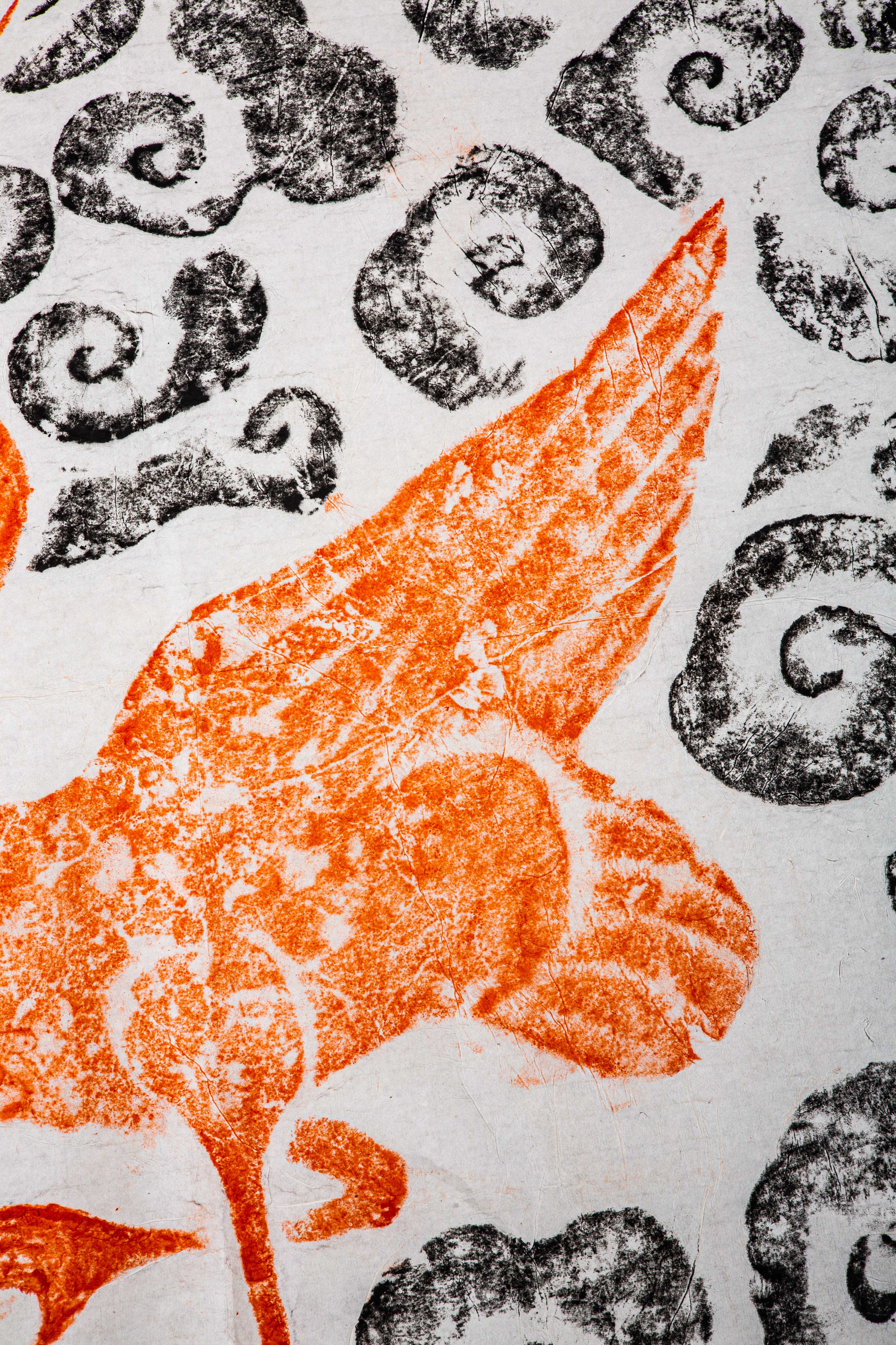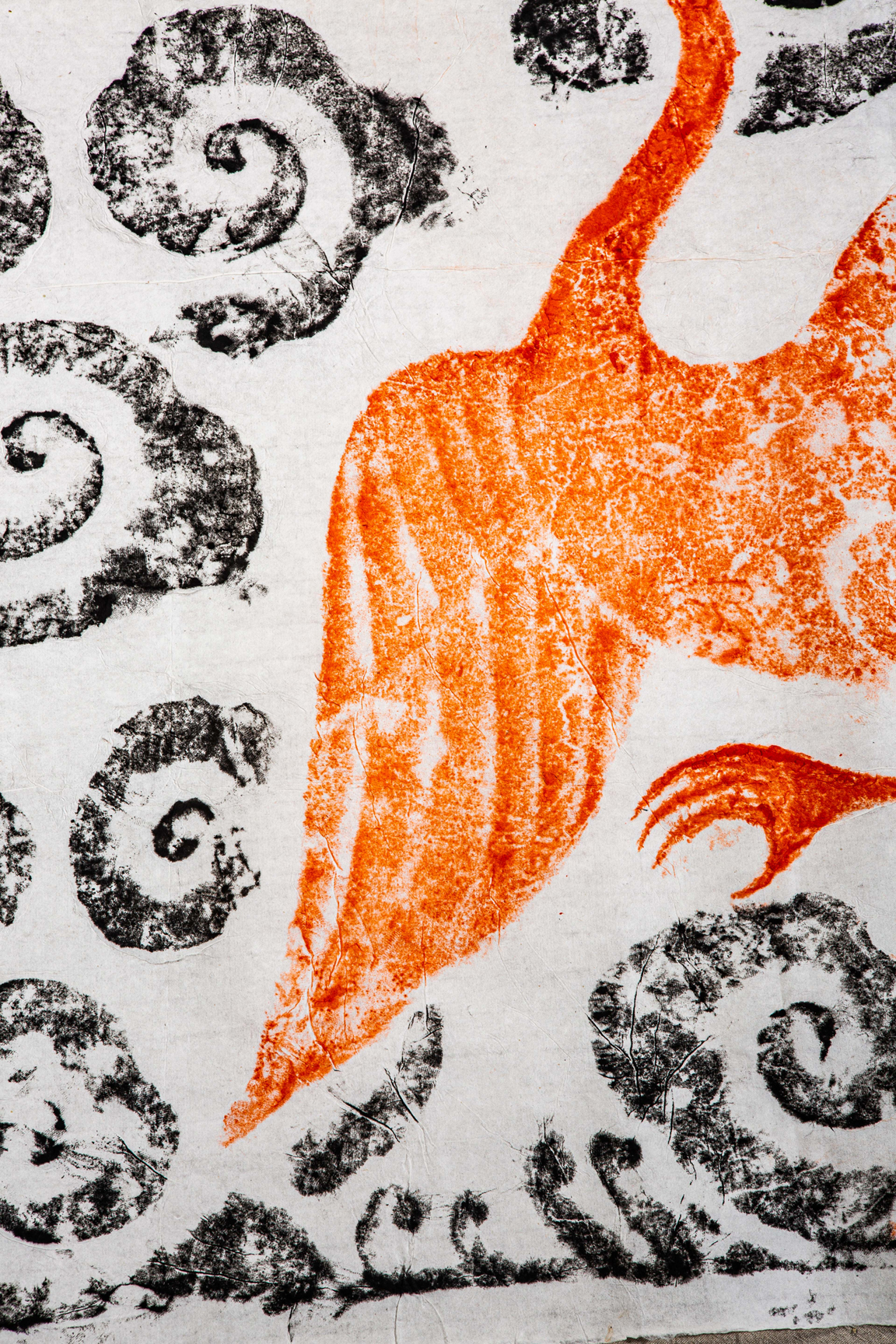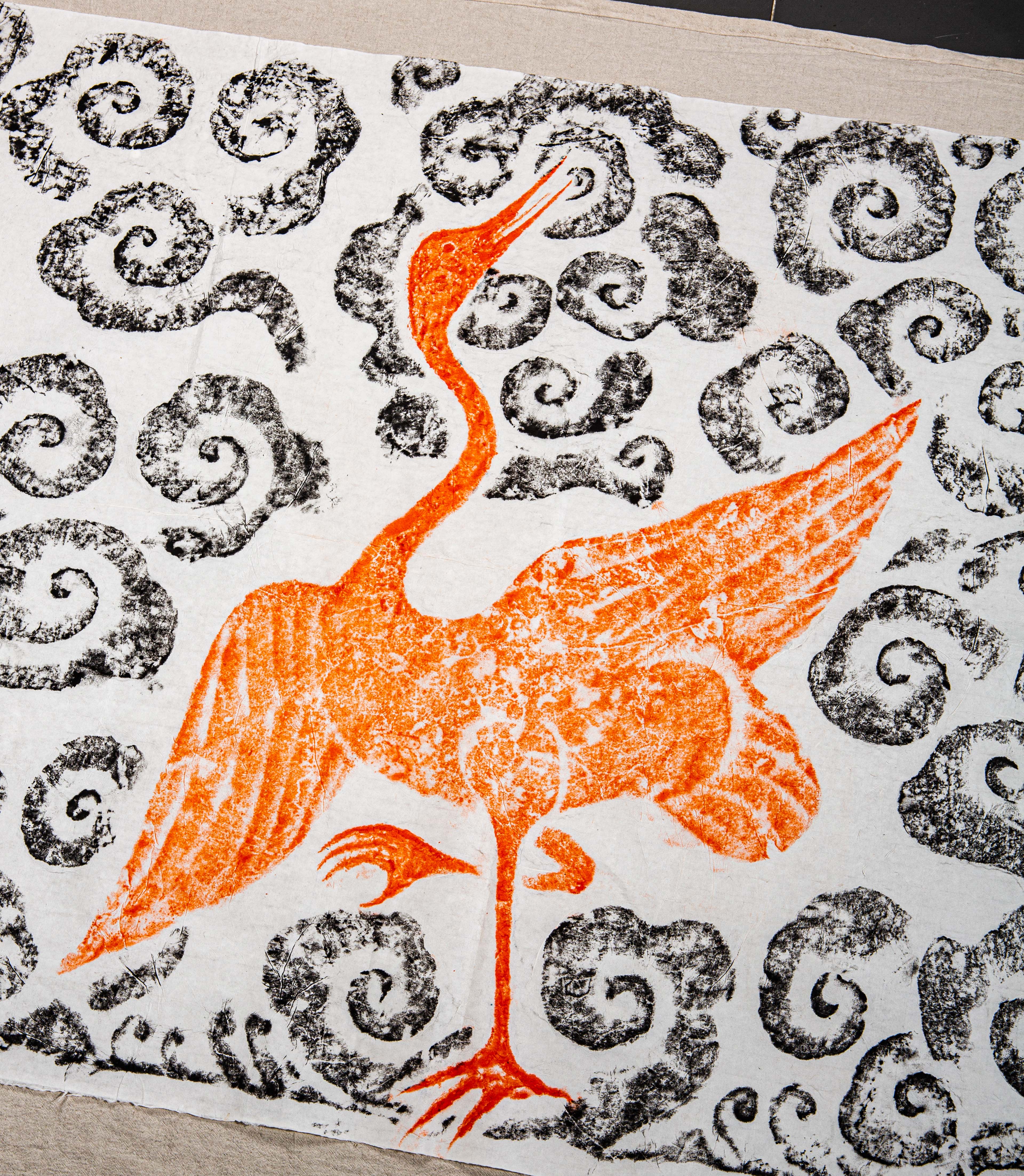 宋代“仙鹤祥云”石刻双色拓片,原石原拓,拓工精细,尺幅大,具有文人气息,十分难得。