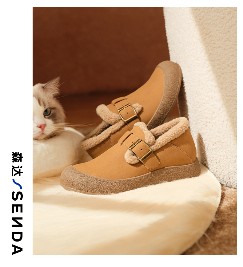 【云粉节】BF楼森达毛毛鞋2025冬季新款雪地靴牛皮保暖毛绒勃肯鞋XSK01吊牌价859活动价399